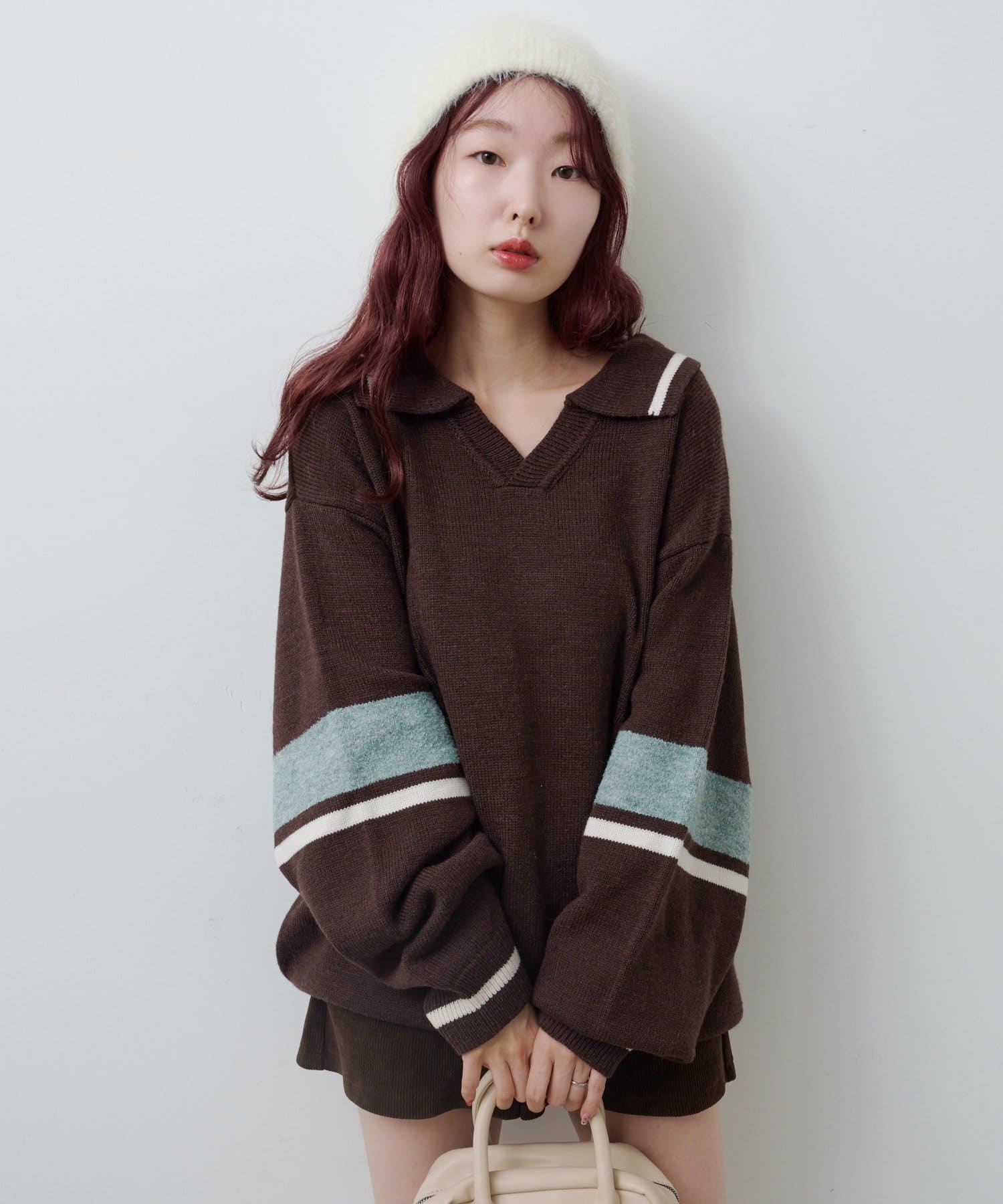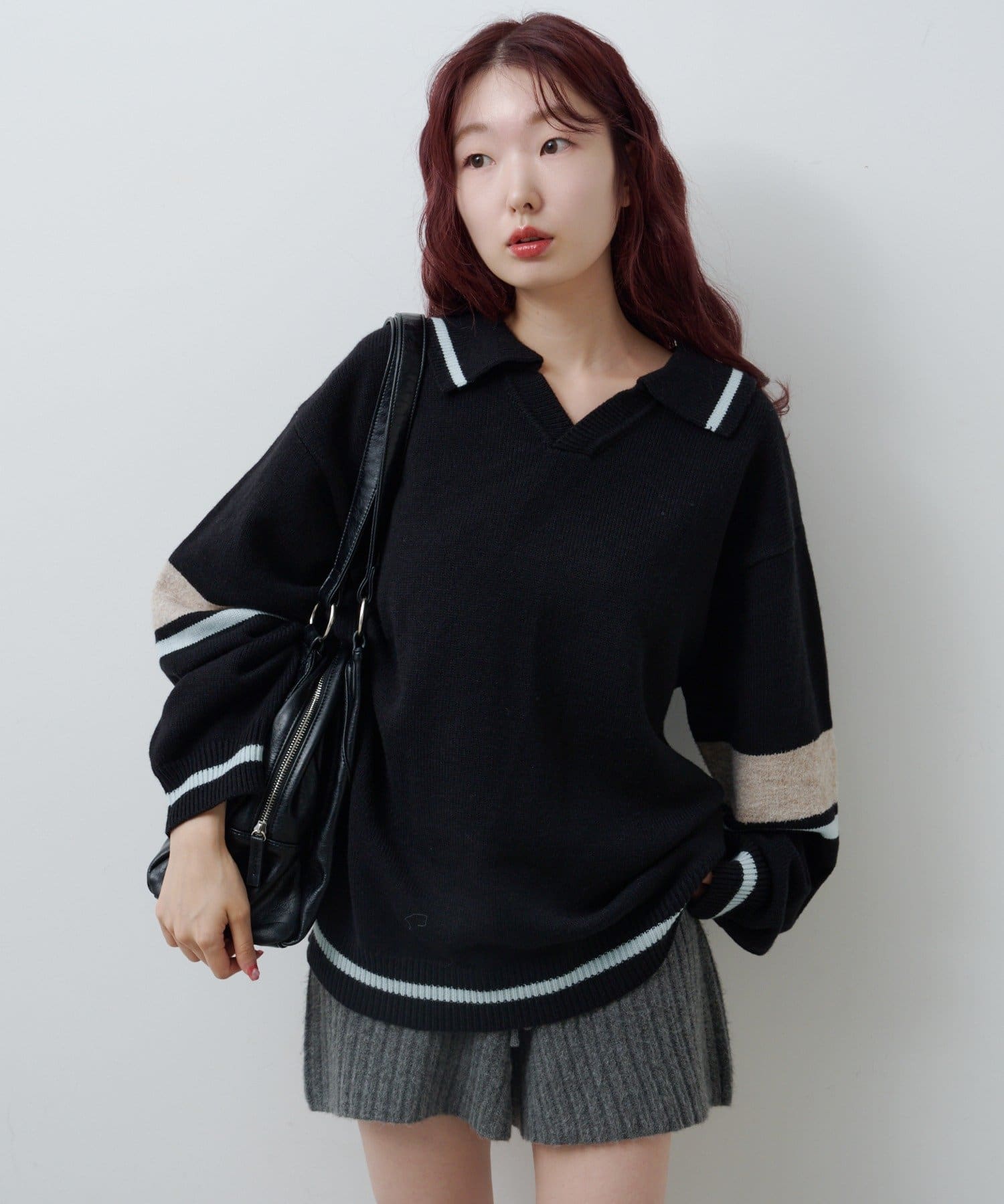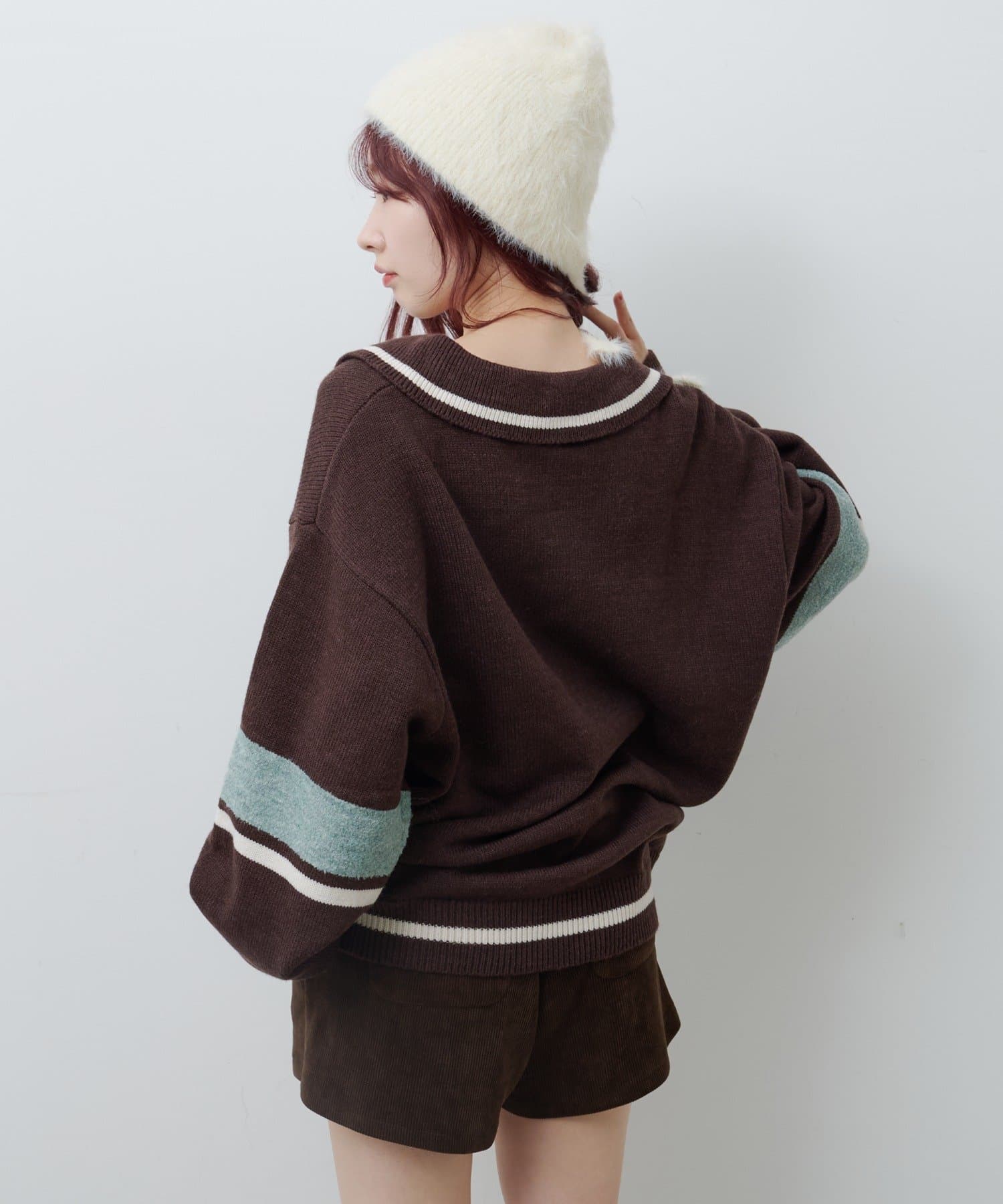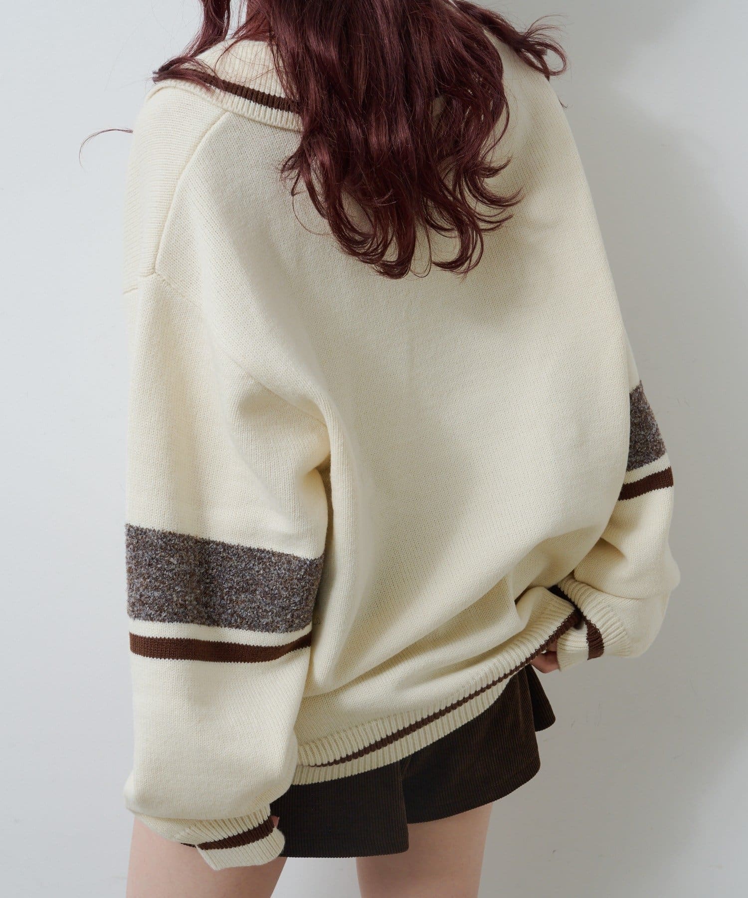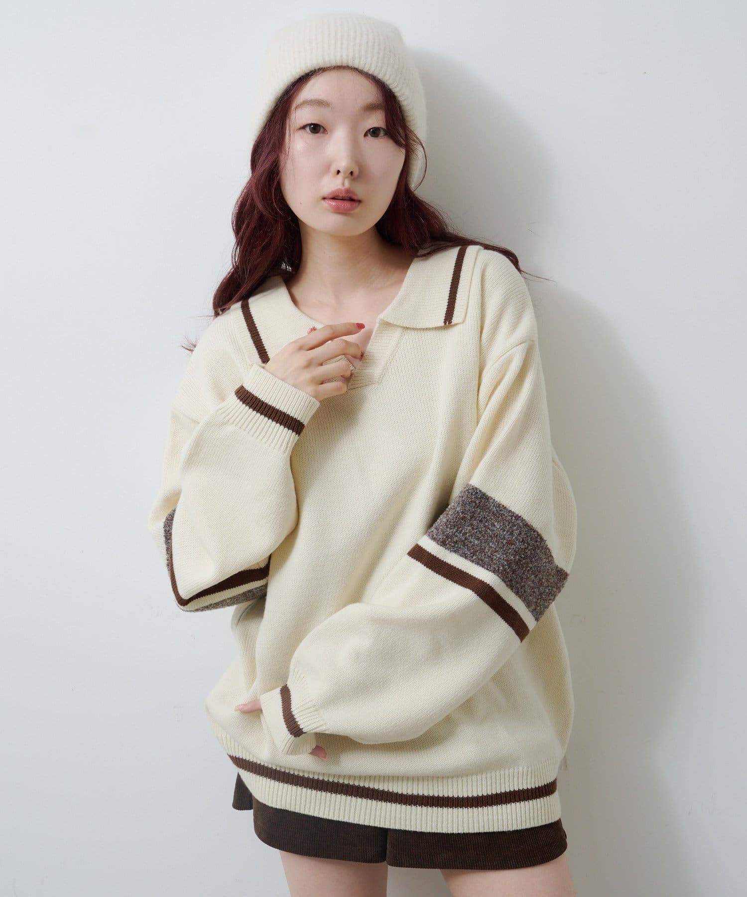 【S.Mサイズ展開】スキッパーラインニットプルオーバー