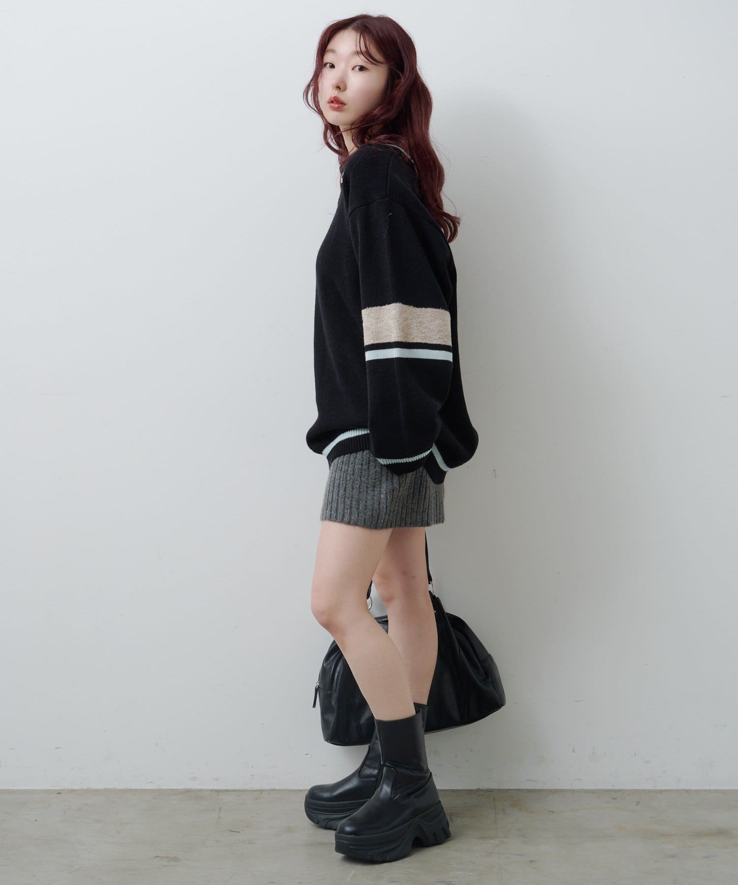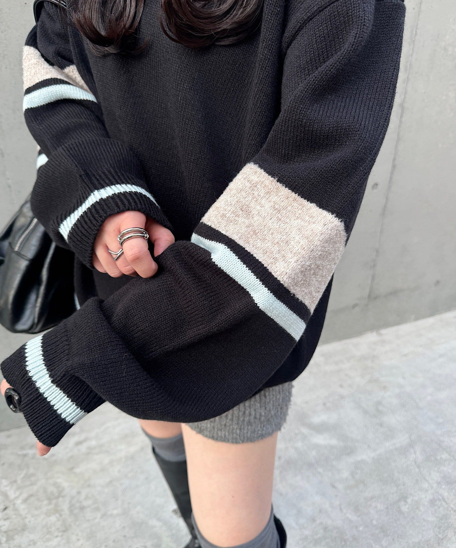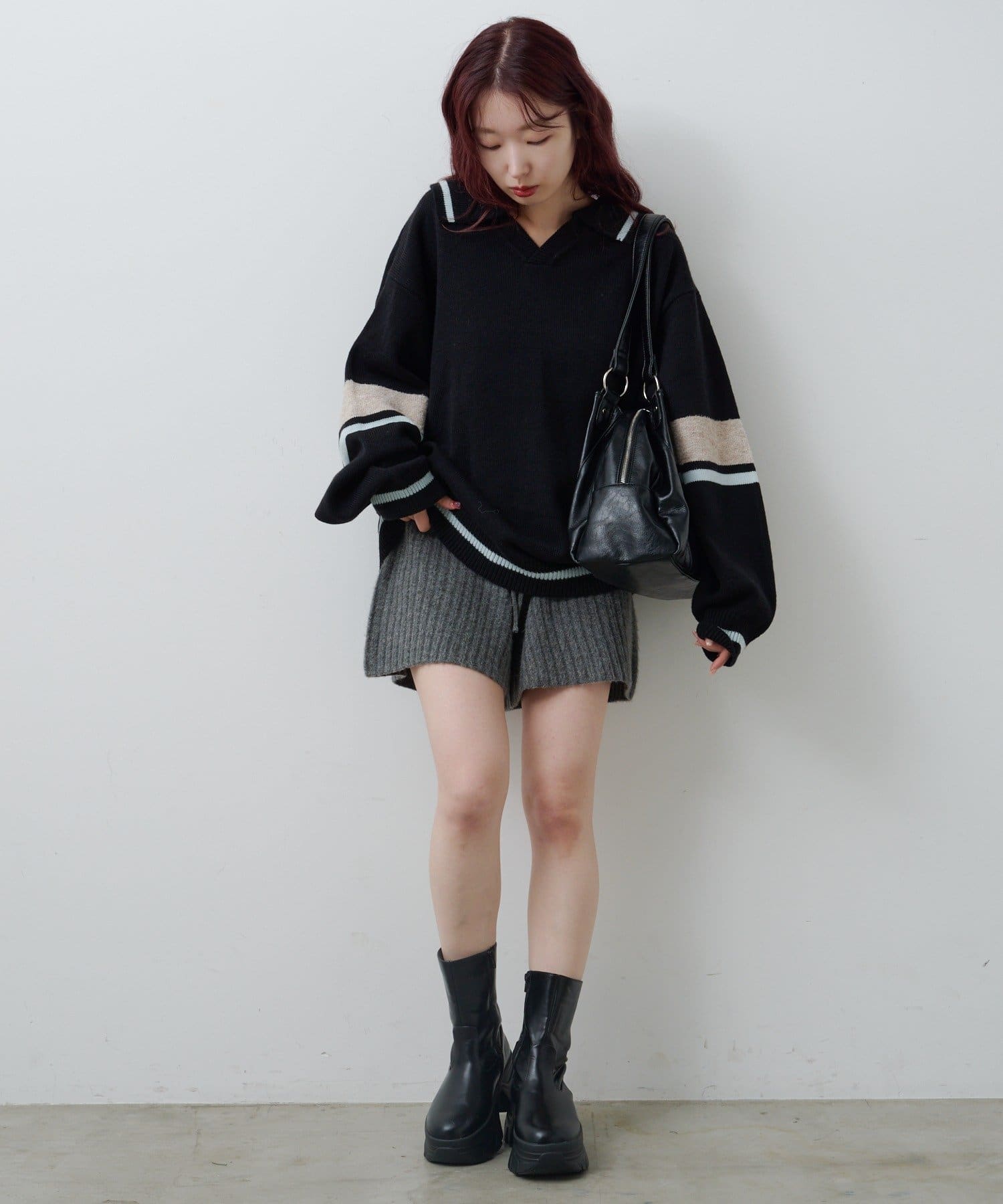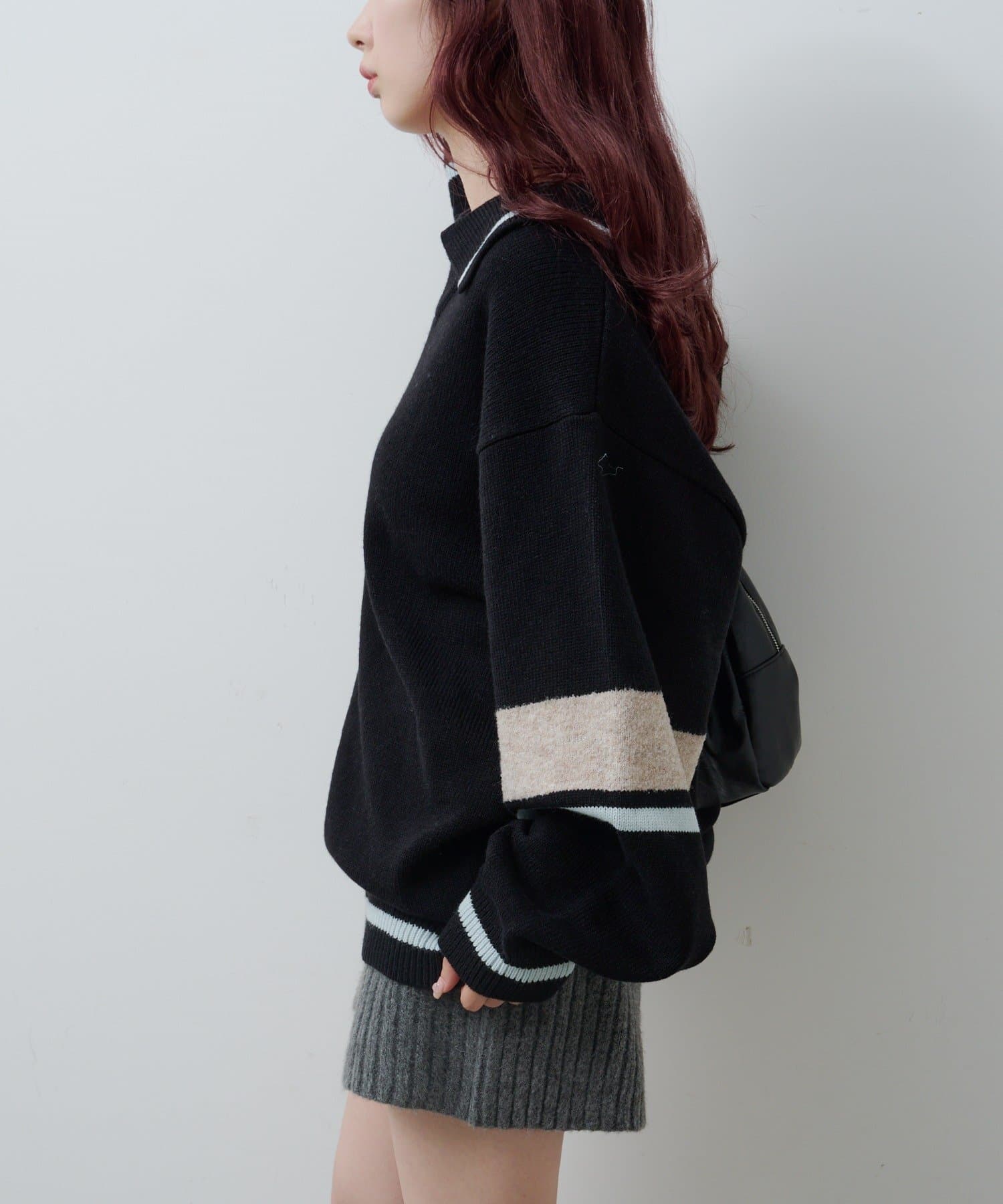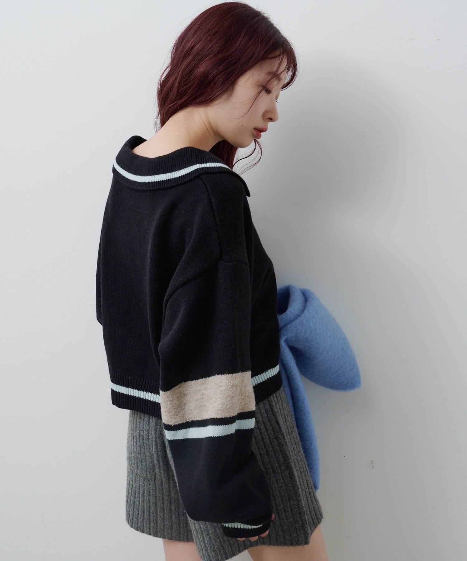 【S.Mサイズ展開】スキッパーラインニットプルオーバー