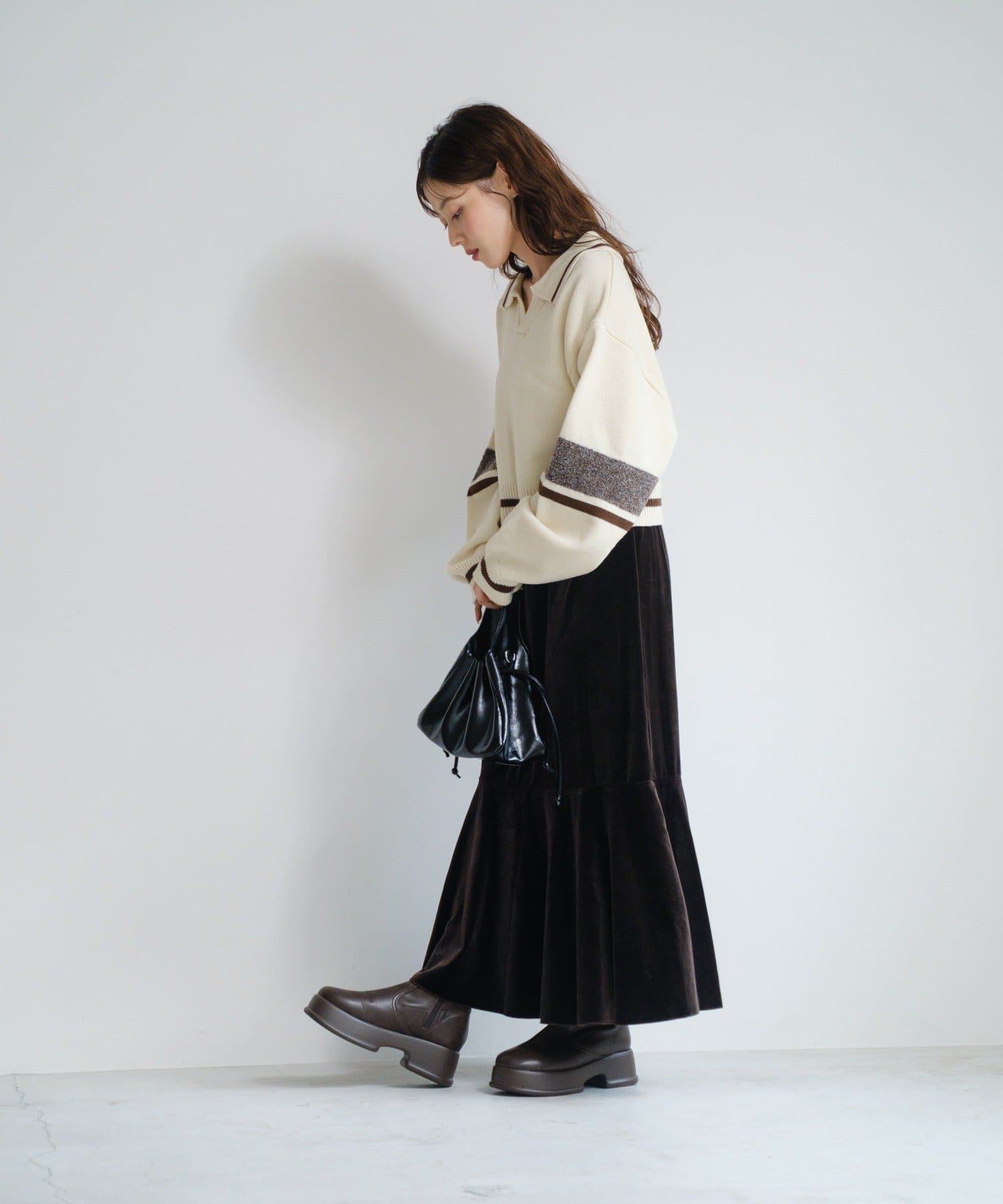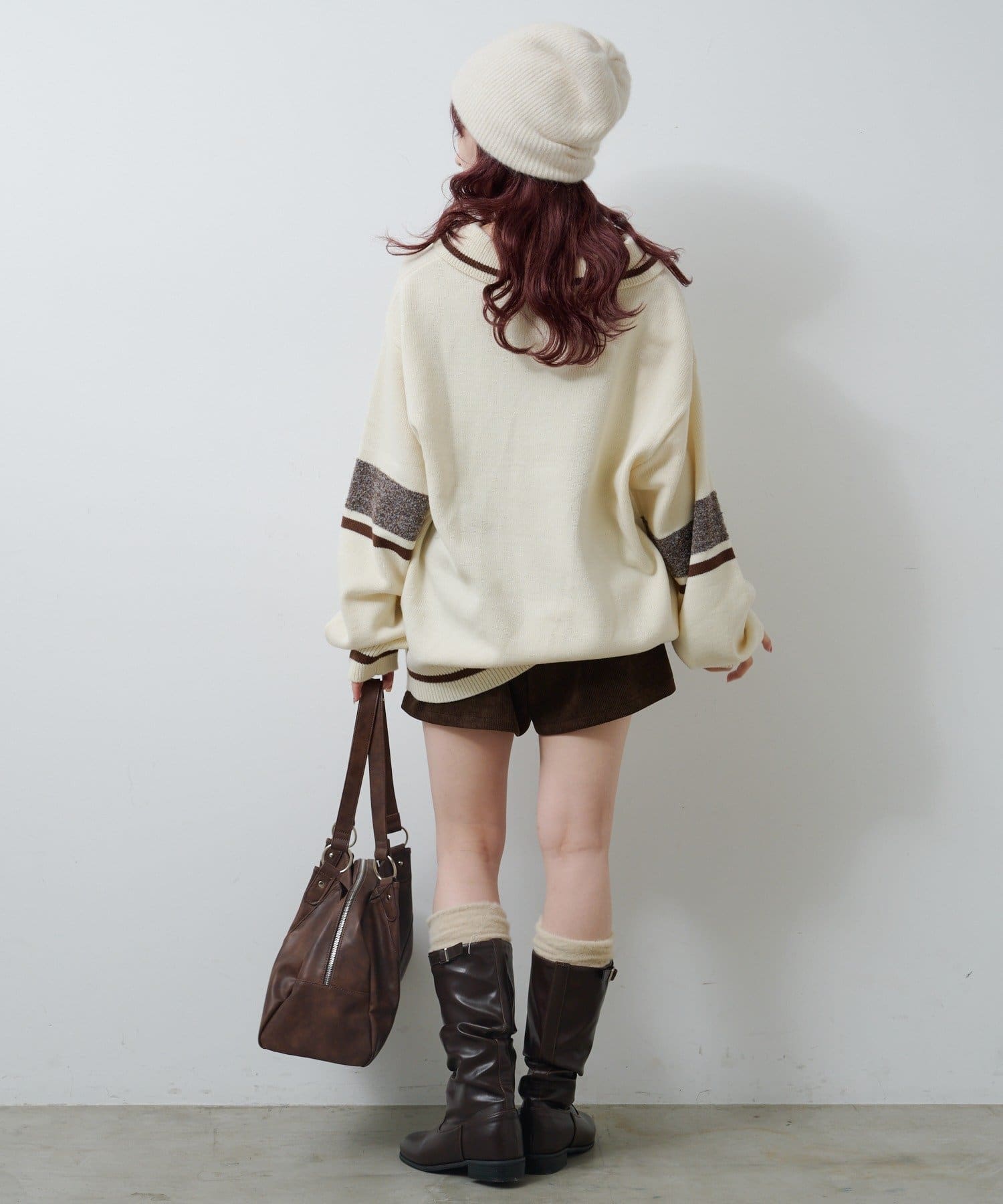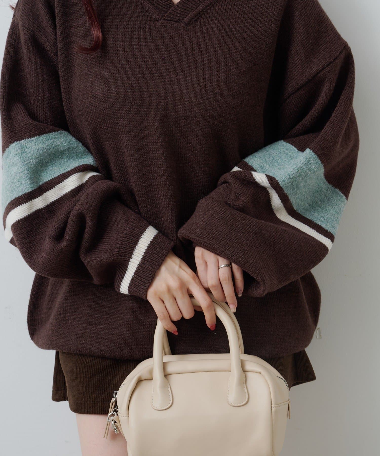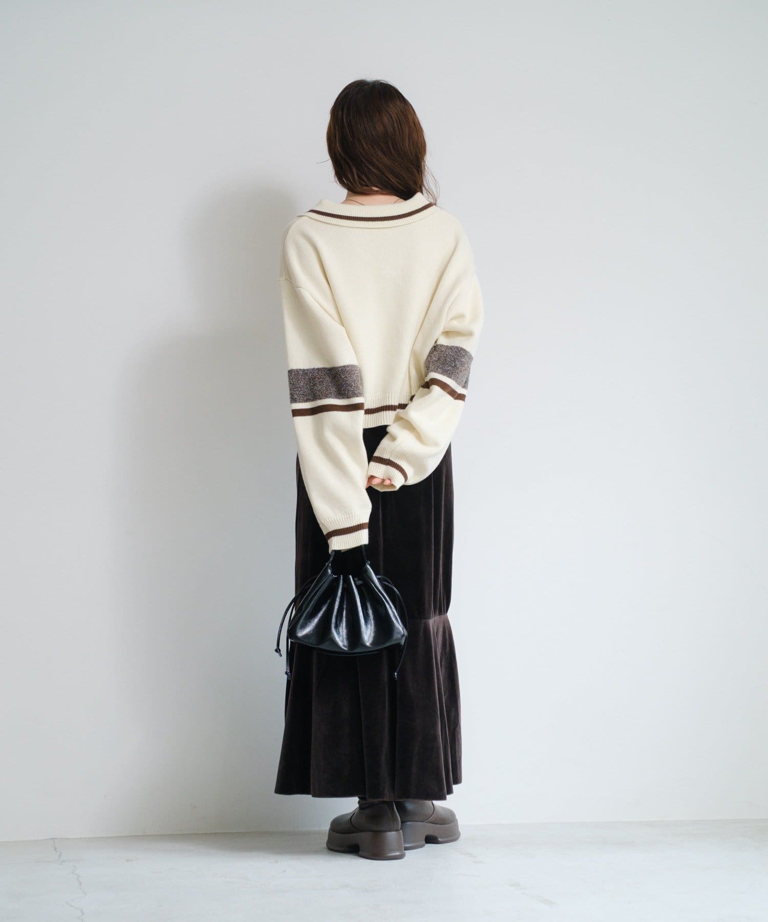 【S.Mサイズ展開】スキッパーラインニットプルオーバー