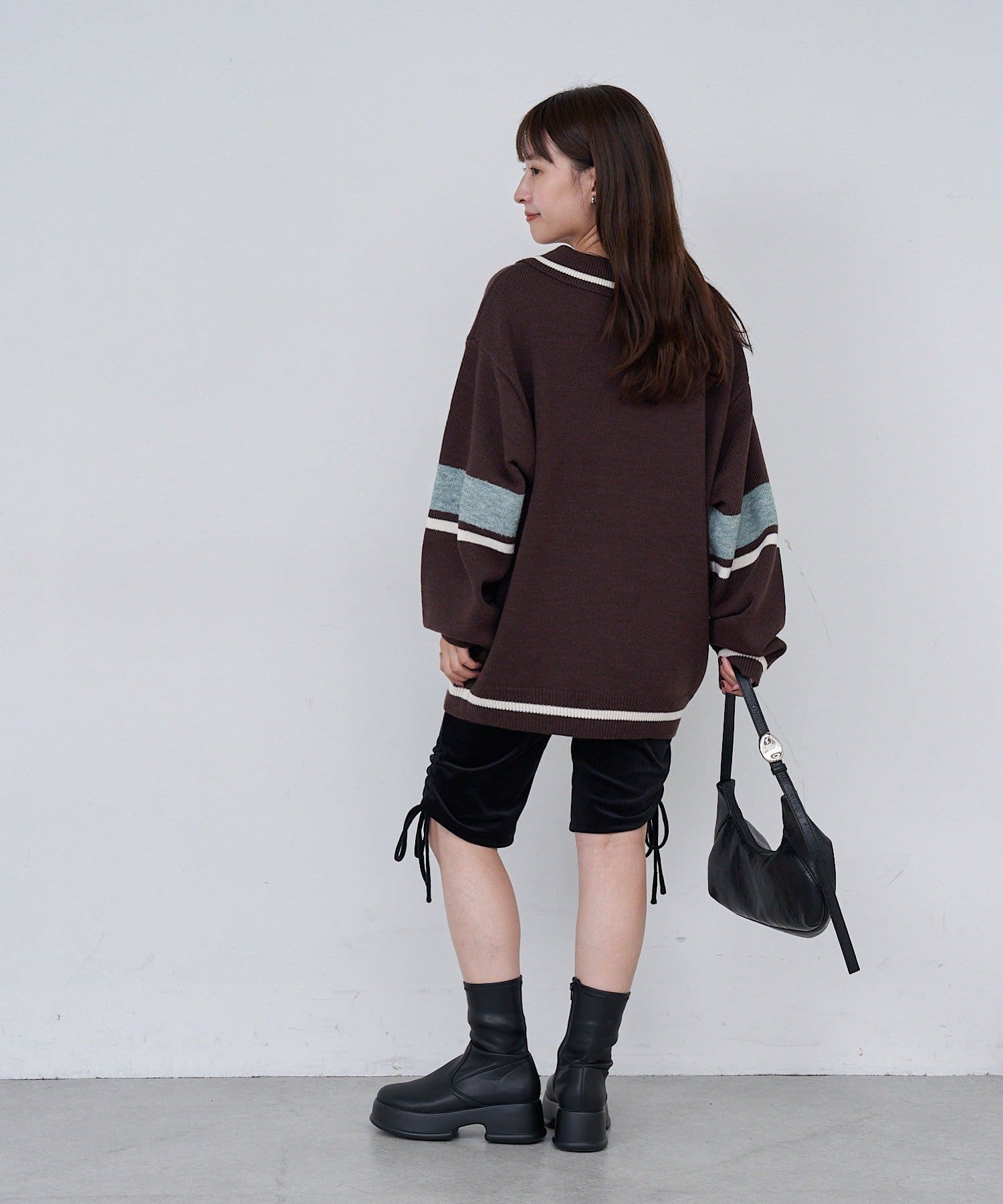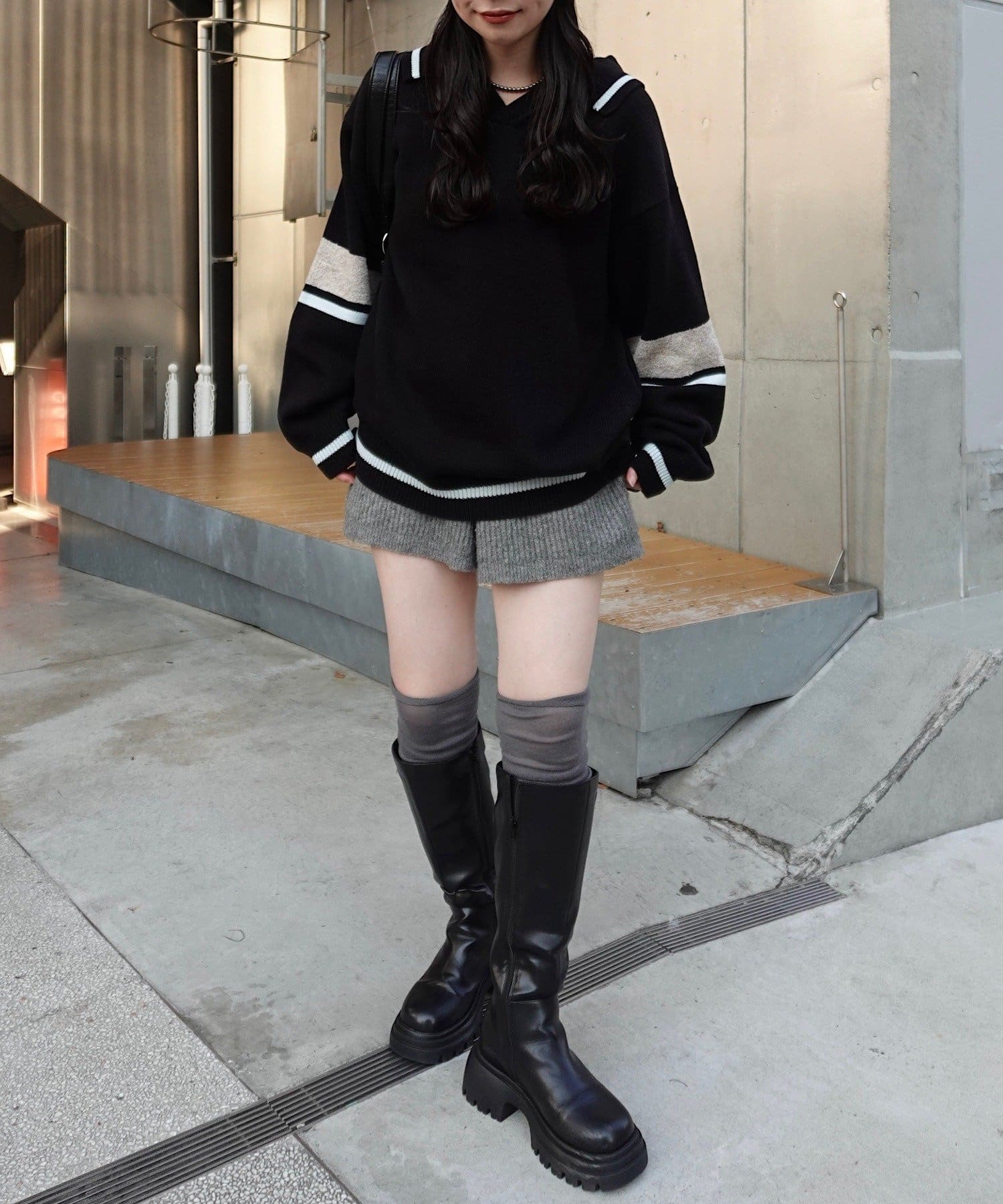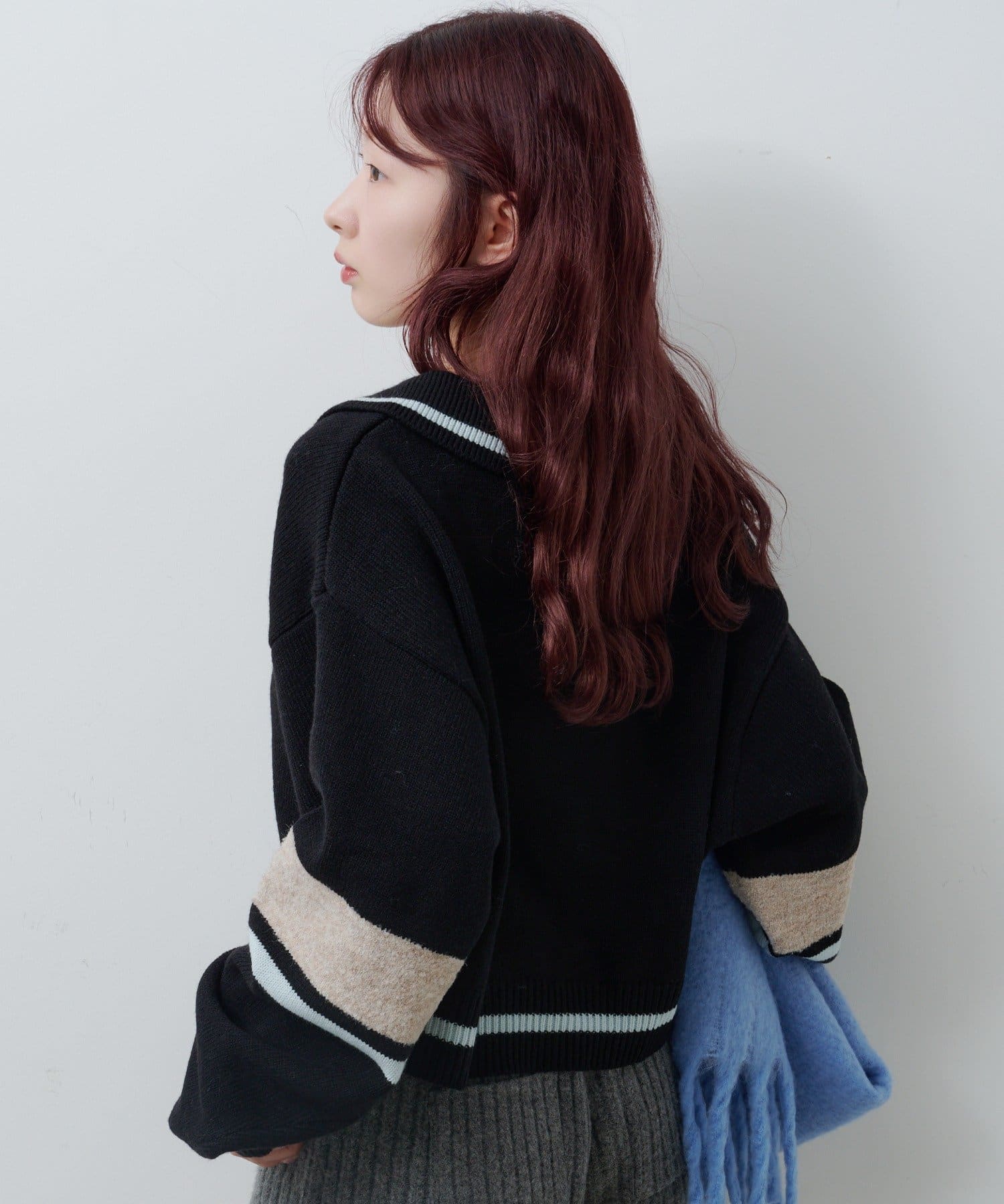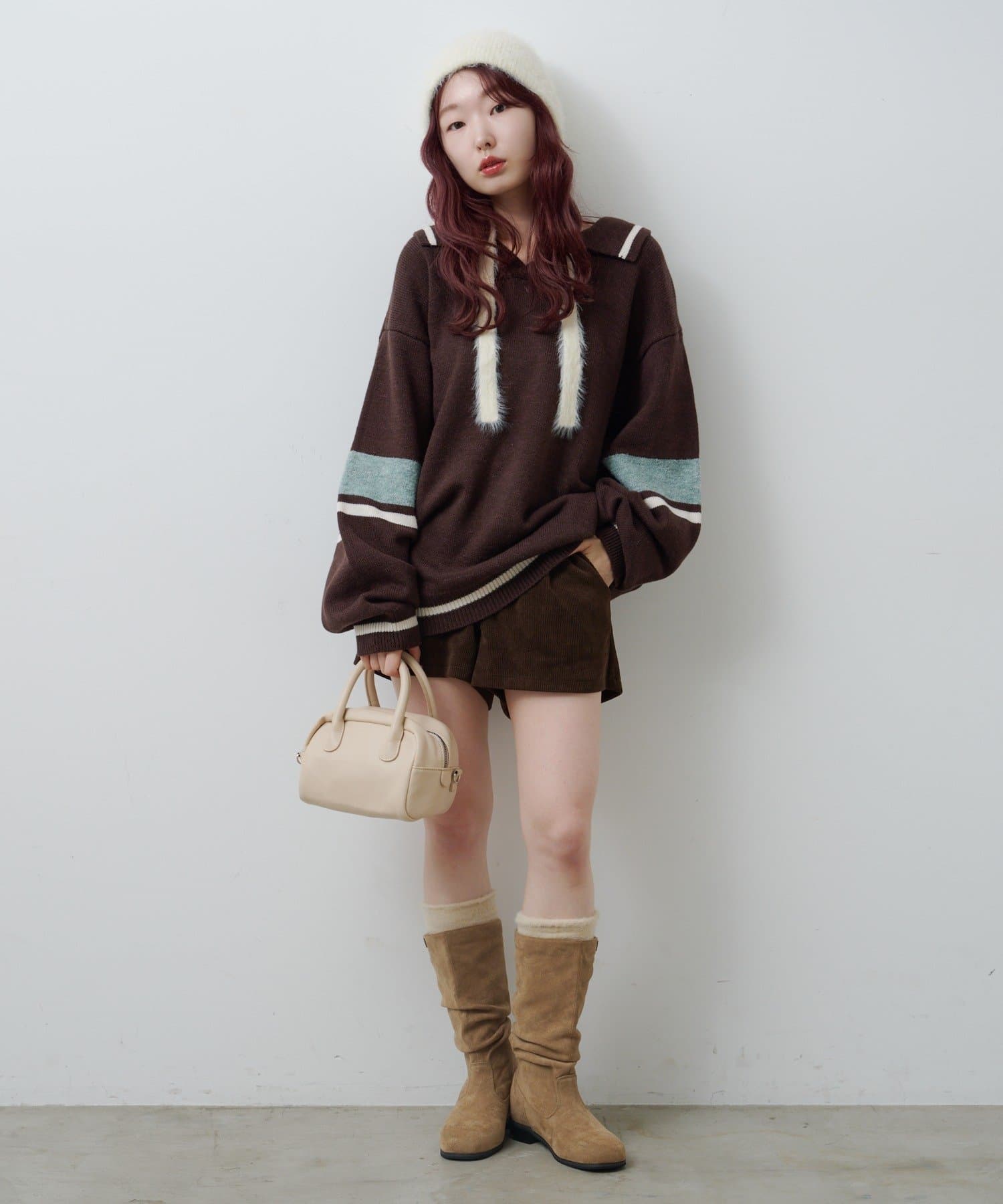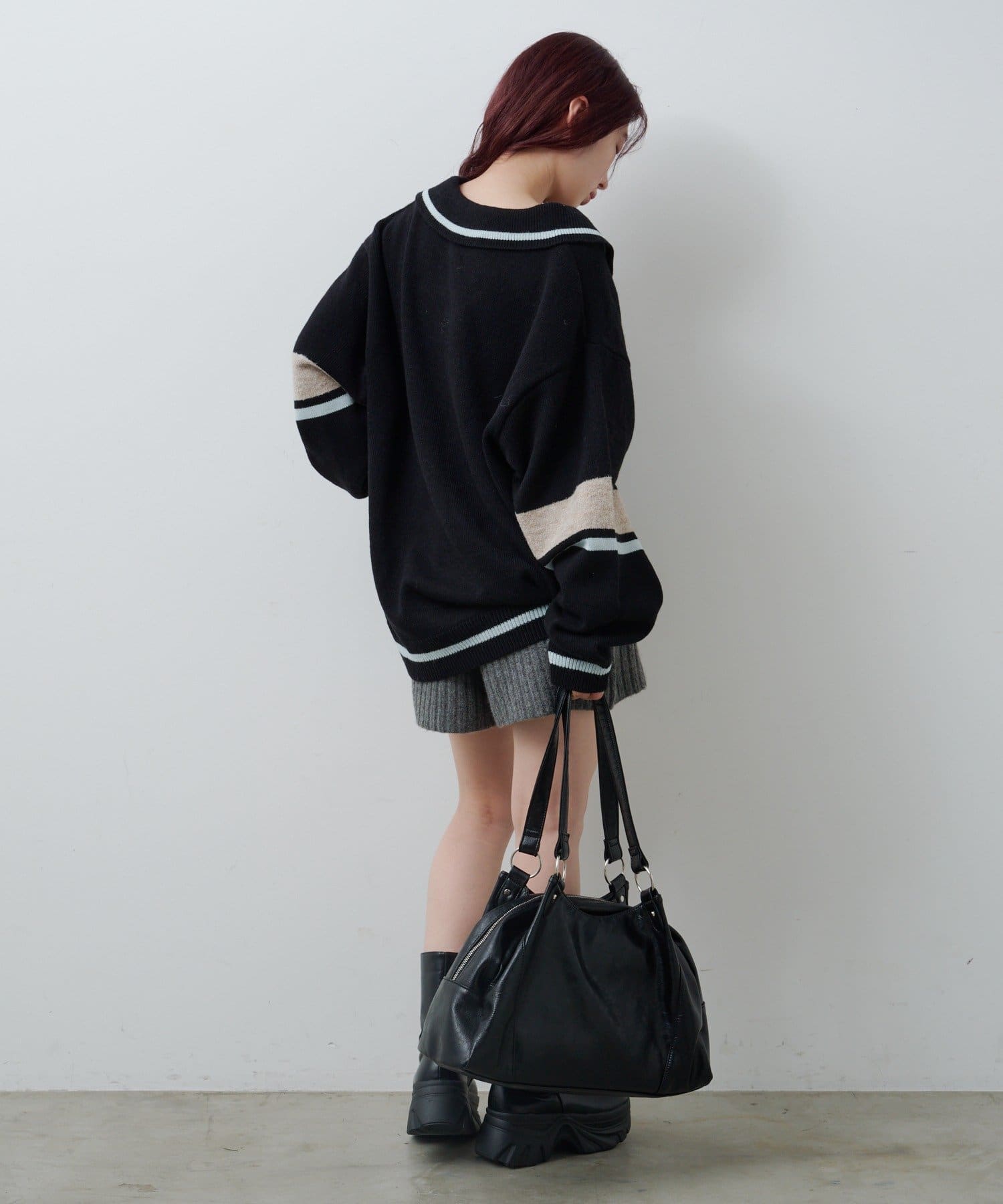 【S.Mサイズ展開】スキッパーラインニットプルオーバー