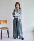 デニムパンツと合わせた、カジュアルダウンなスタイリングがおススメ。