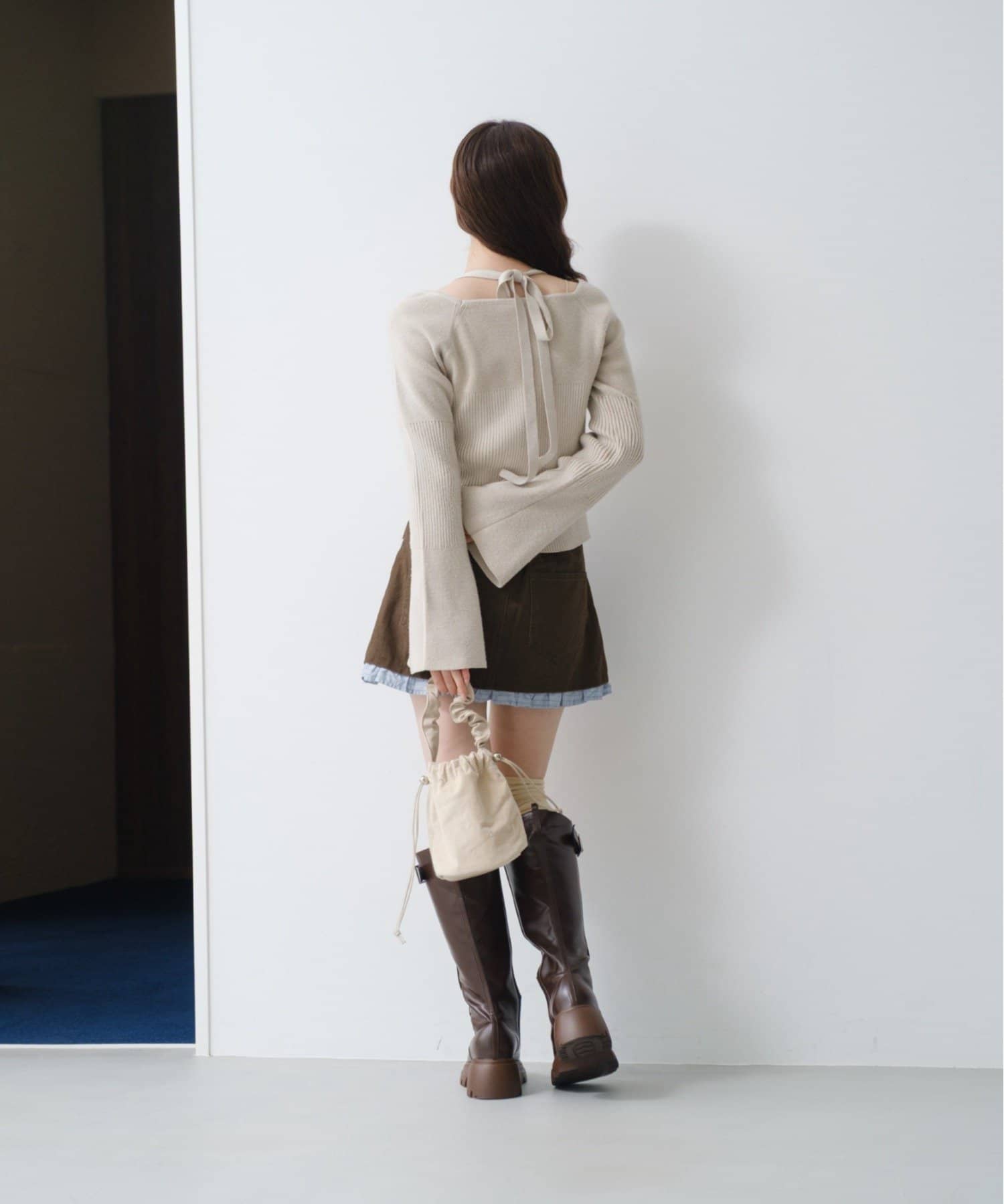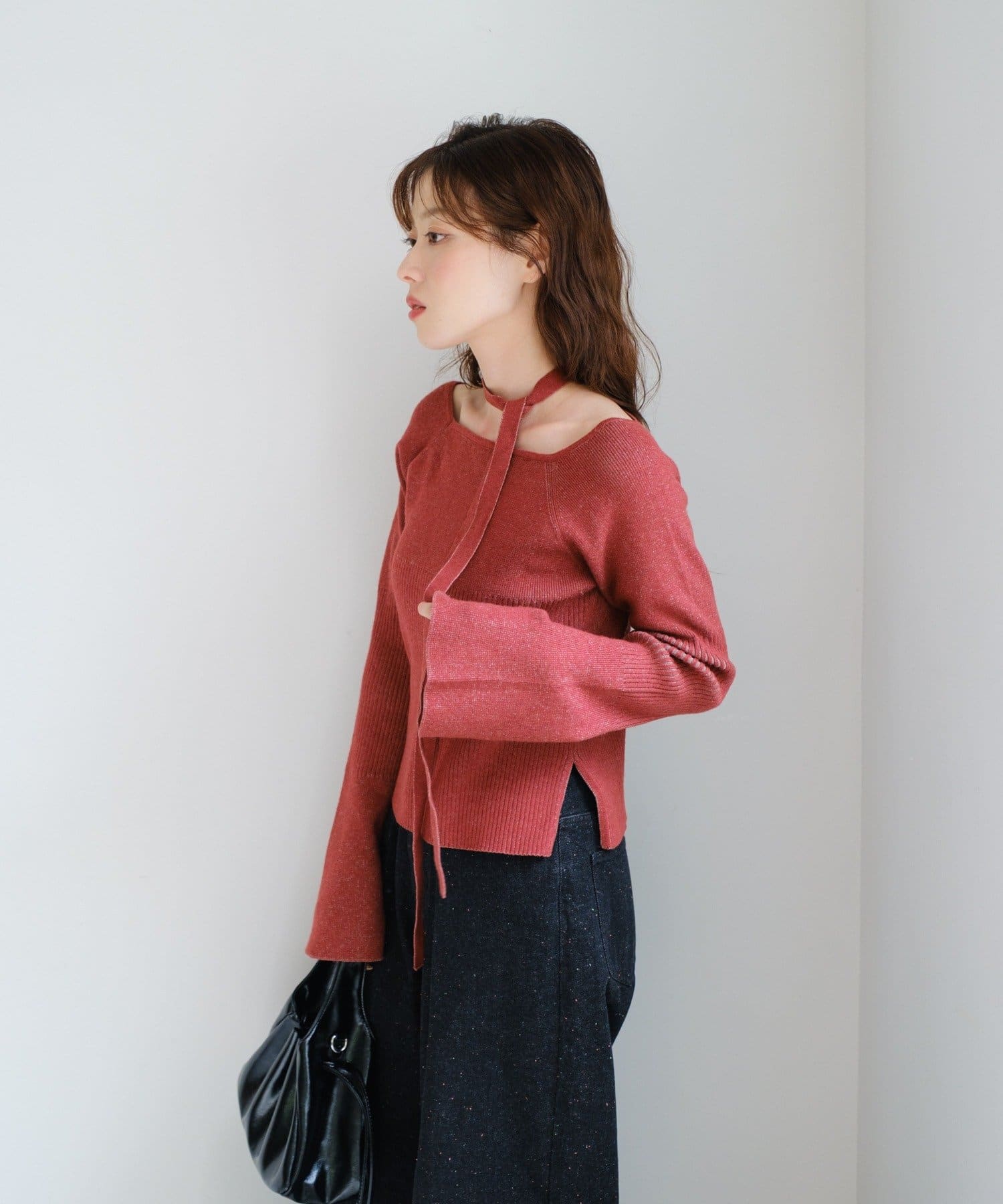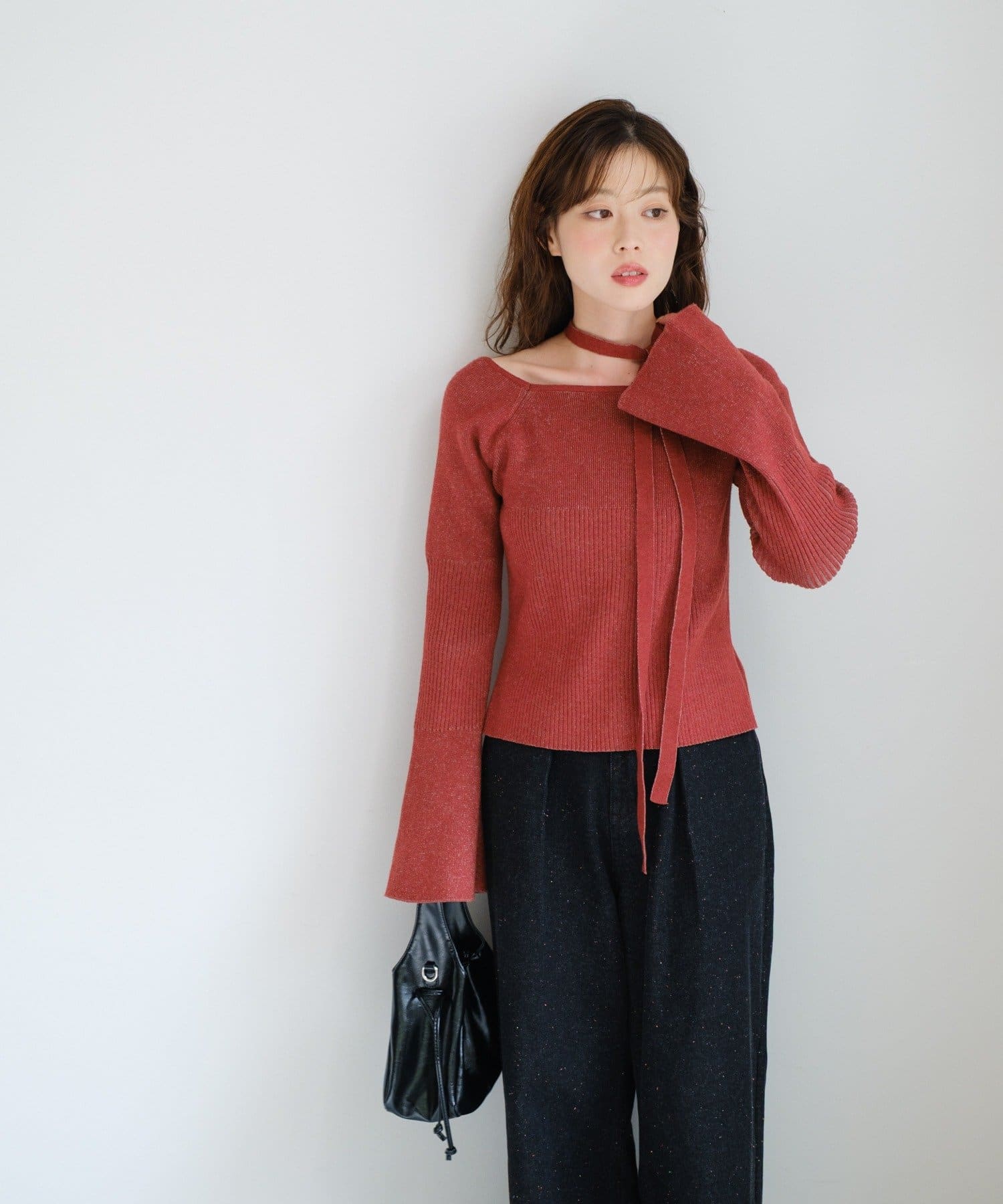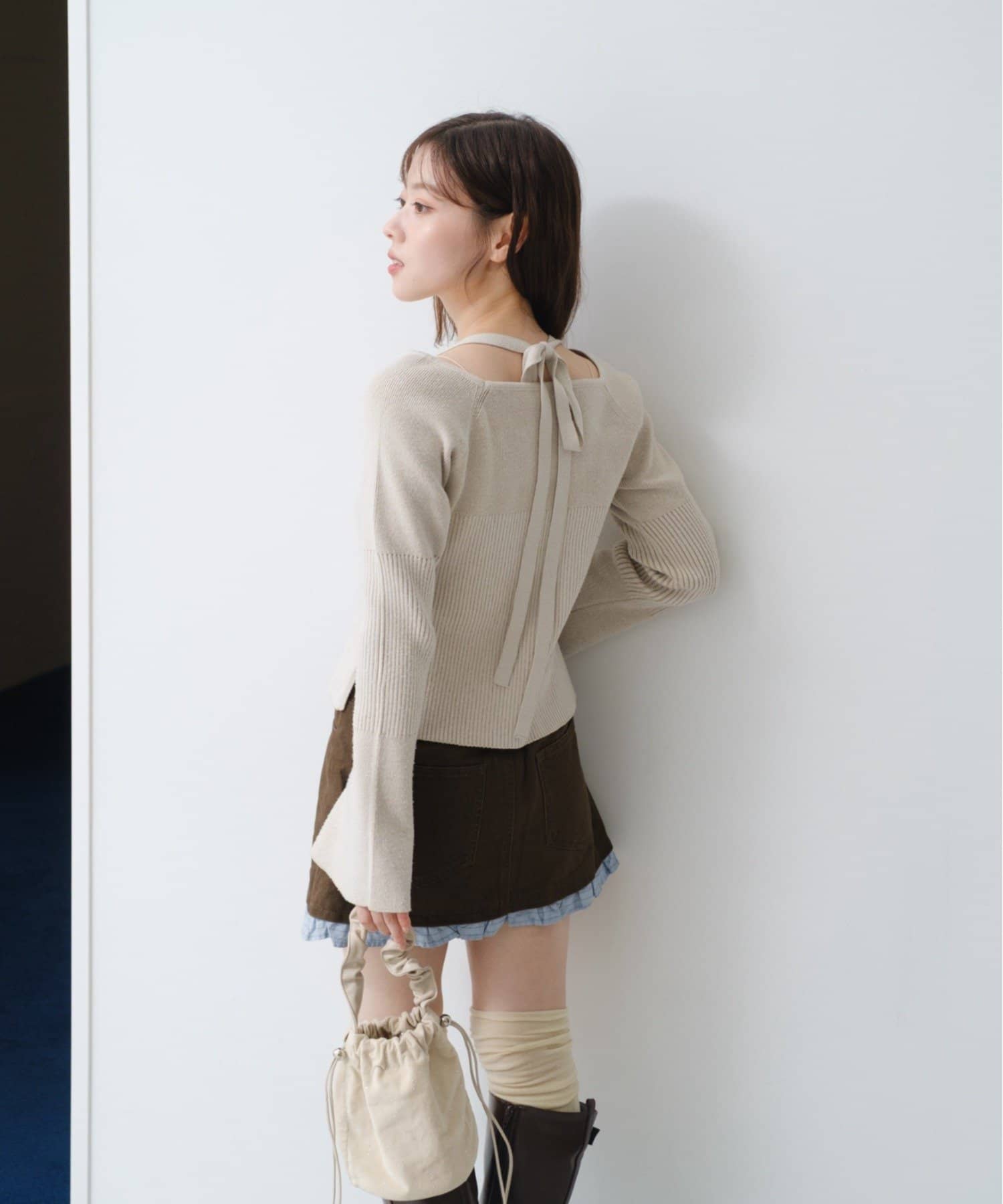 Kastane(カスタネ) 【WEB・一部店舗限定】ボウタイ配色リブニット