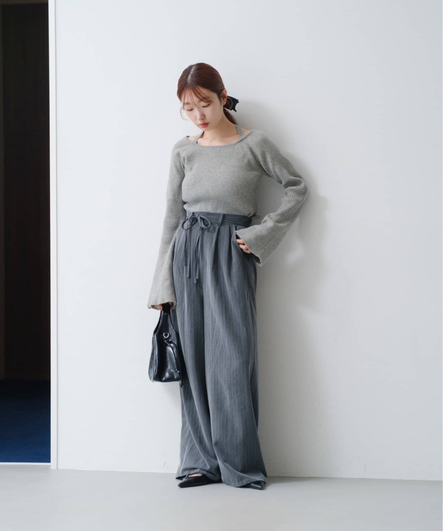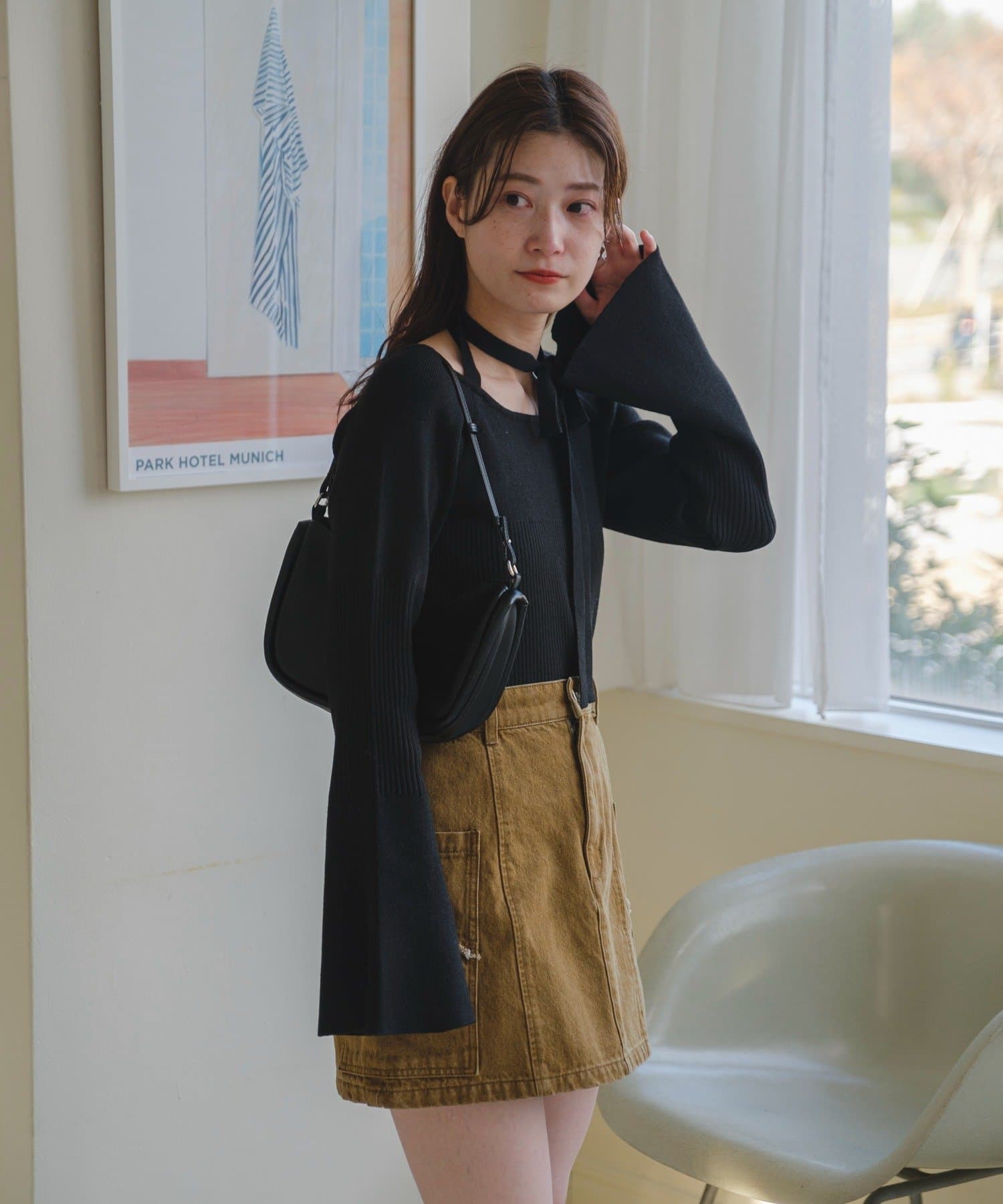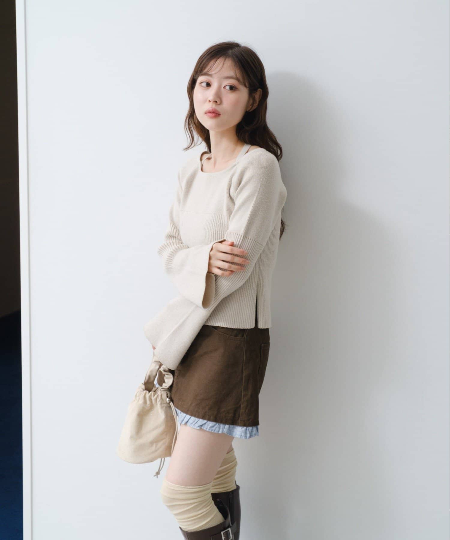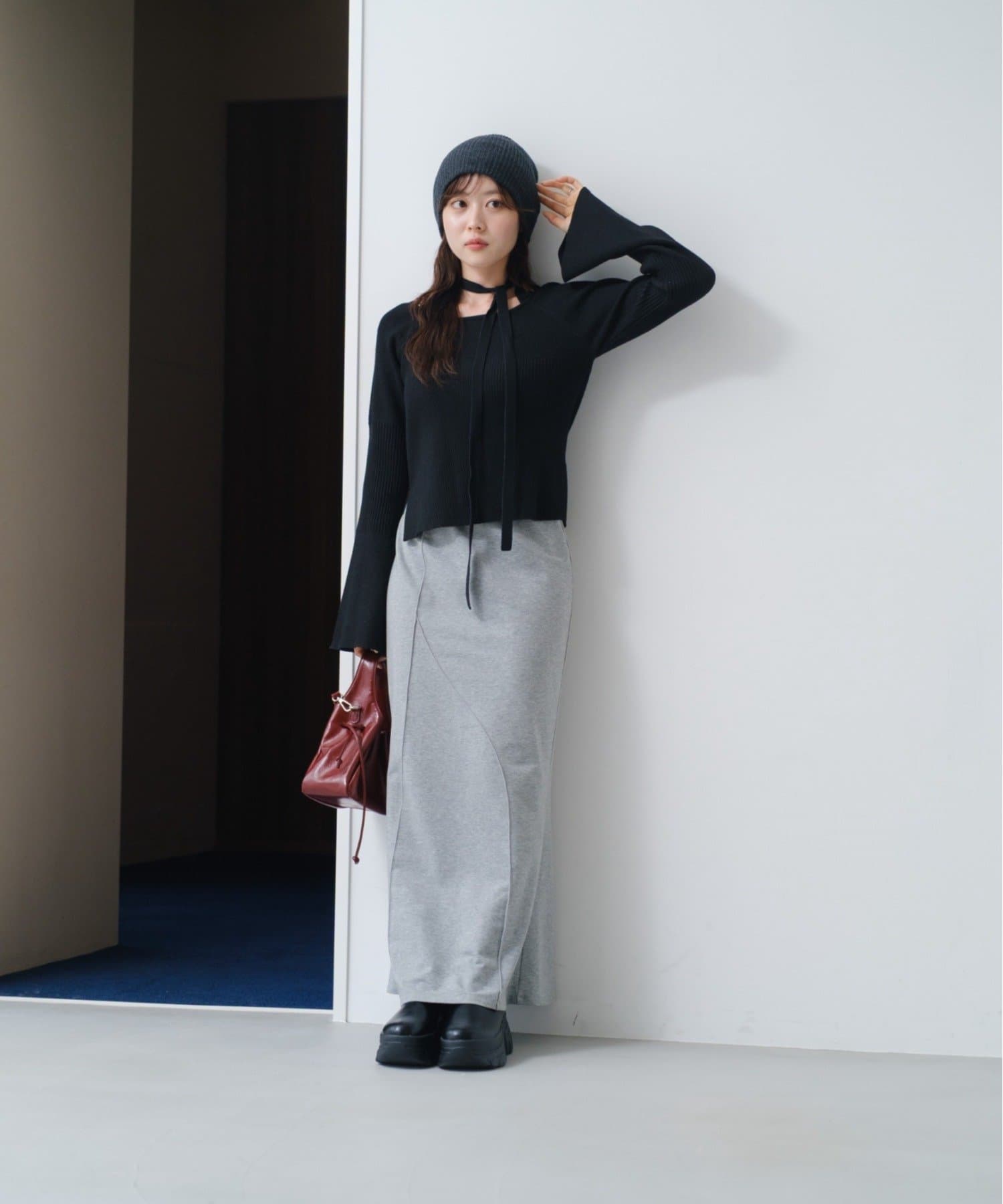 Kastane(カスタネ) 【WEB・一部店舗限定】ボウタイ配色リブニット