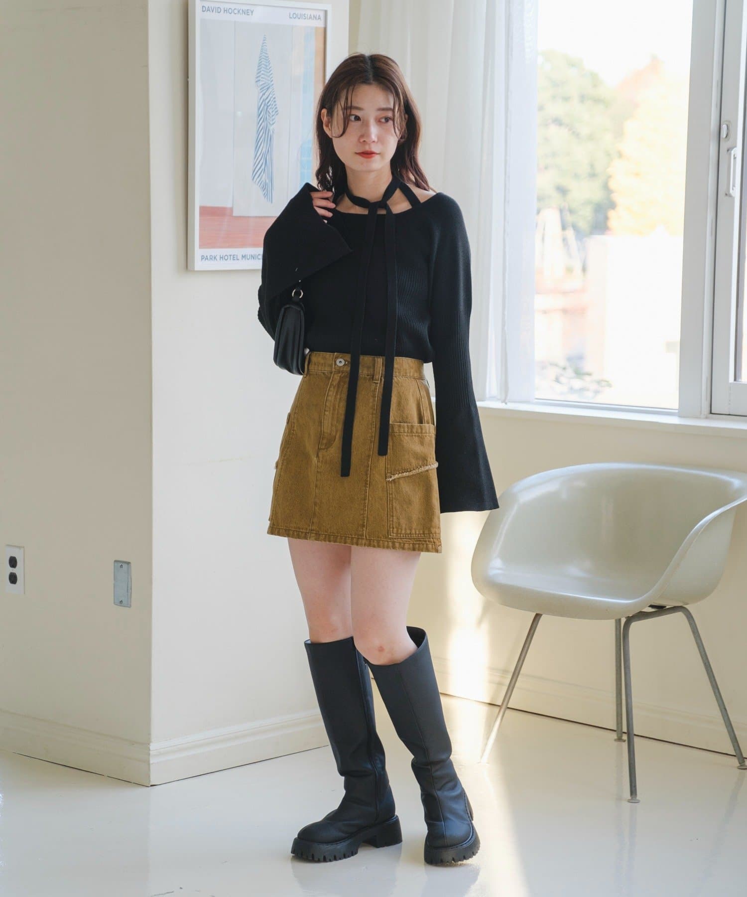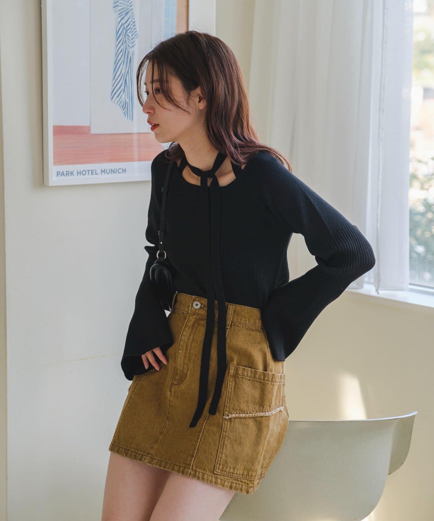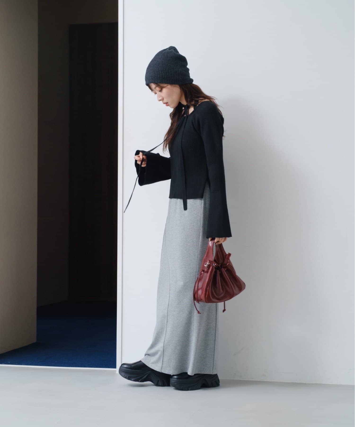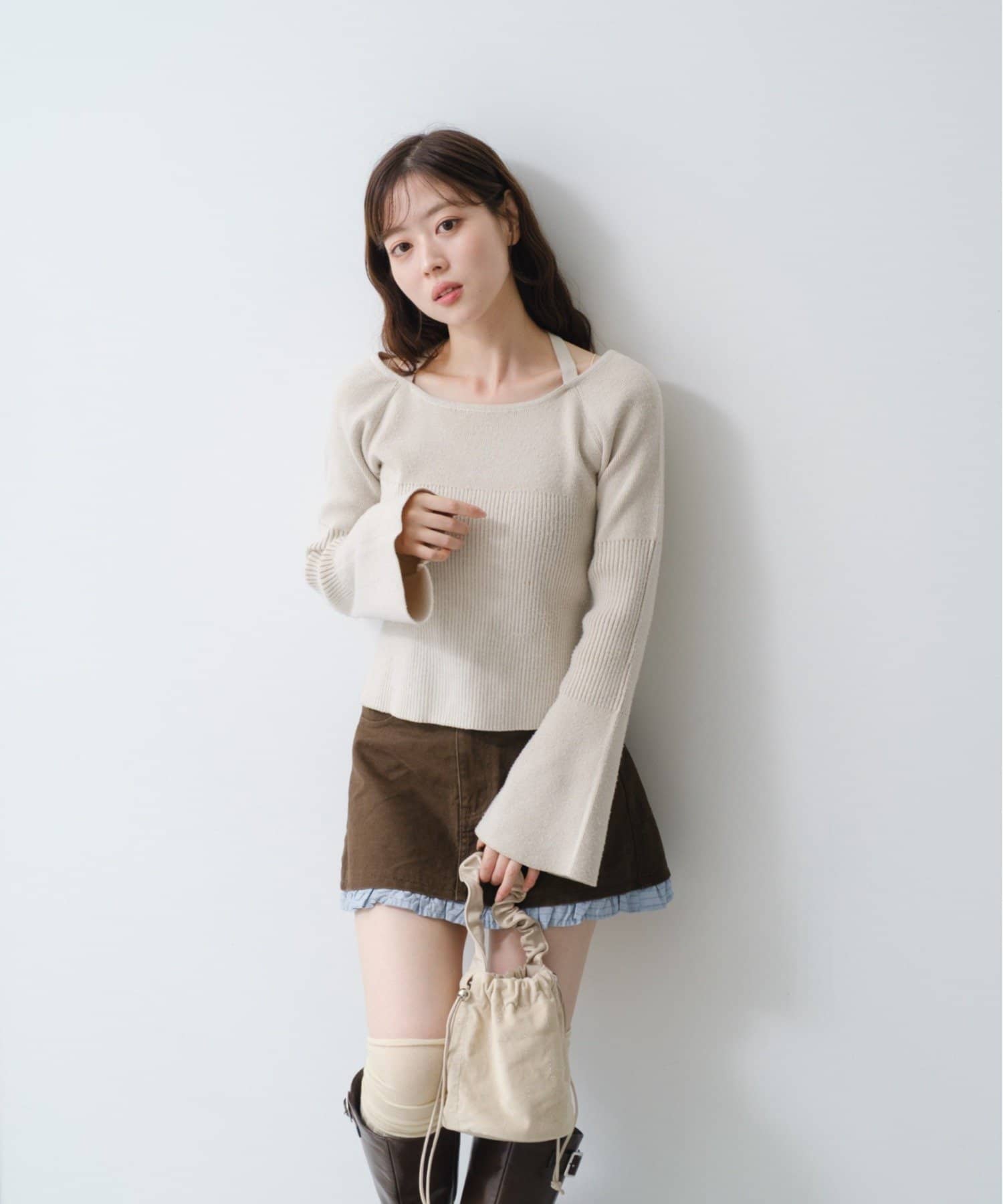 Kastane(カスタネ) 【WEB・一部店舗限定】ボウタイ配色リブニット
