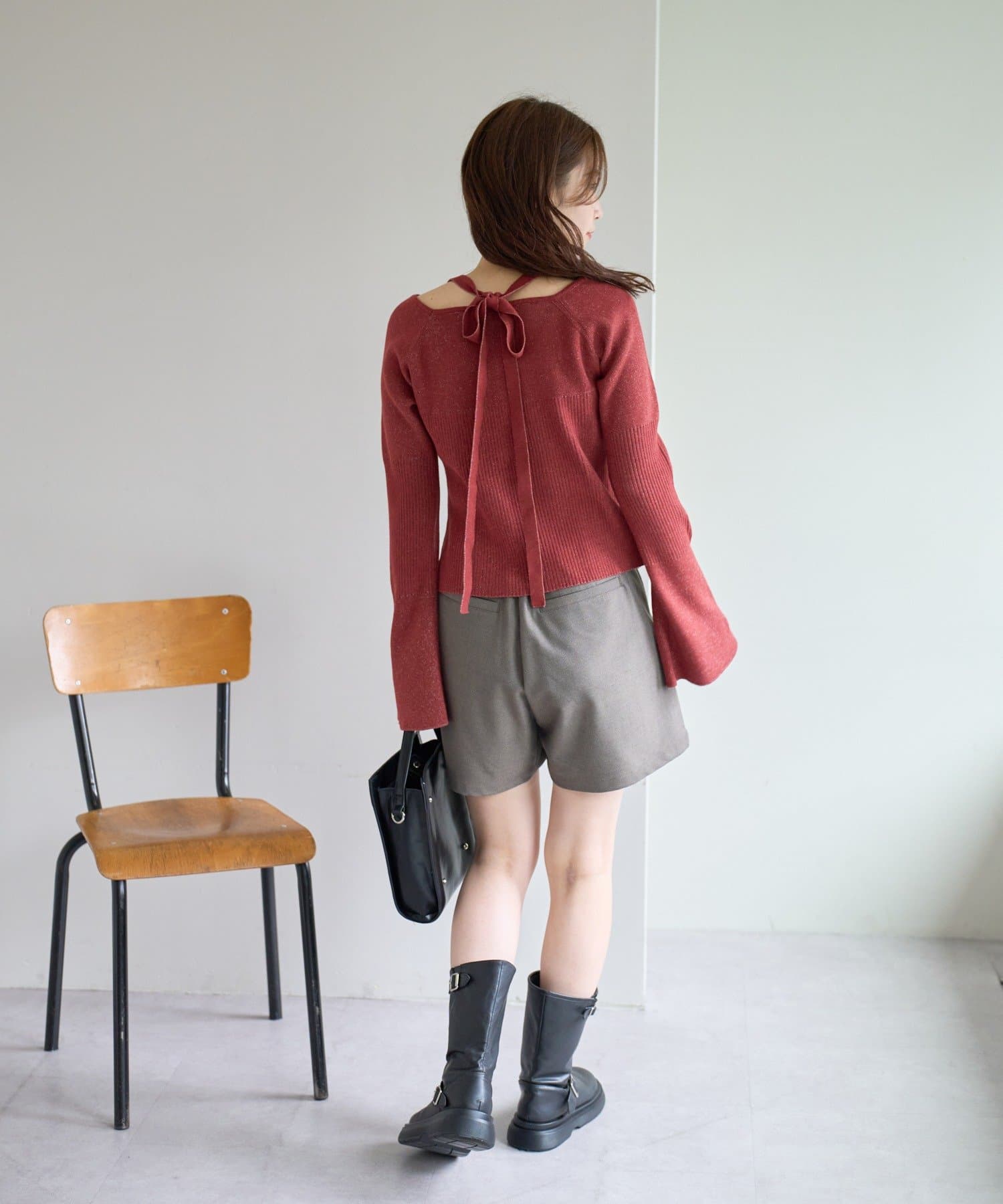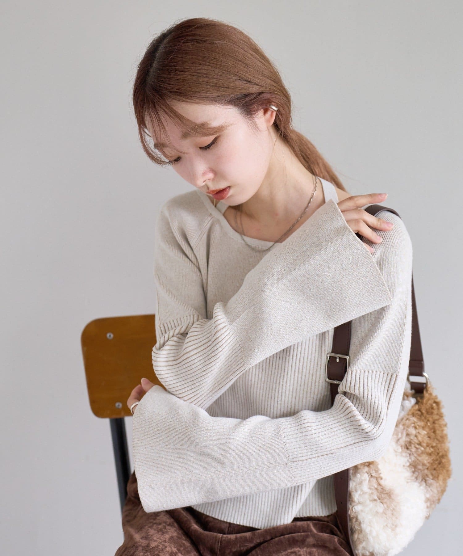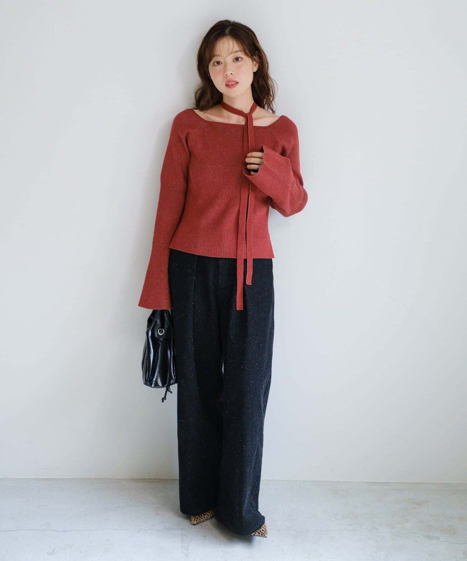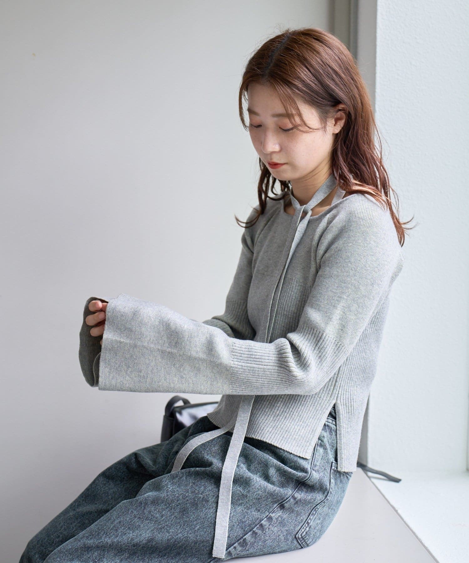 【WEB・一部店舗限定】ボウタイ配色リブニット