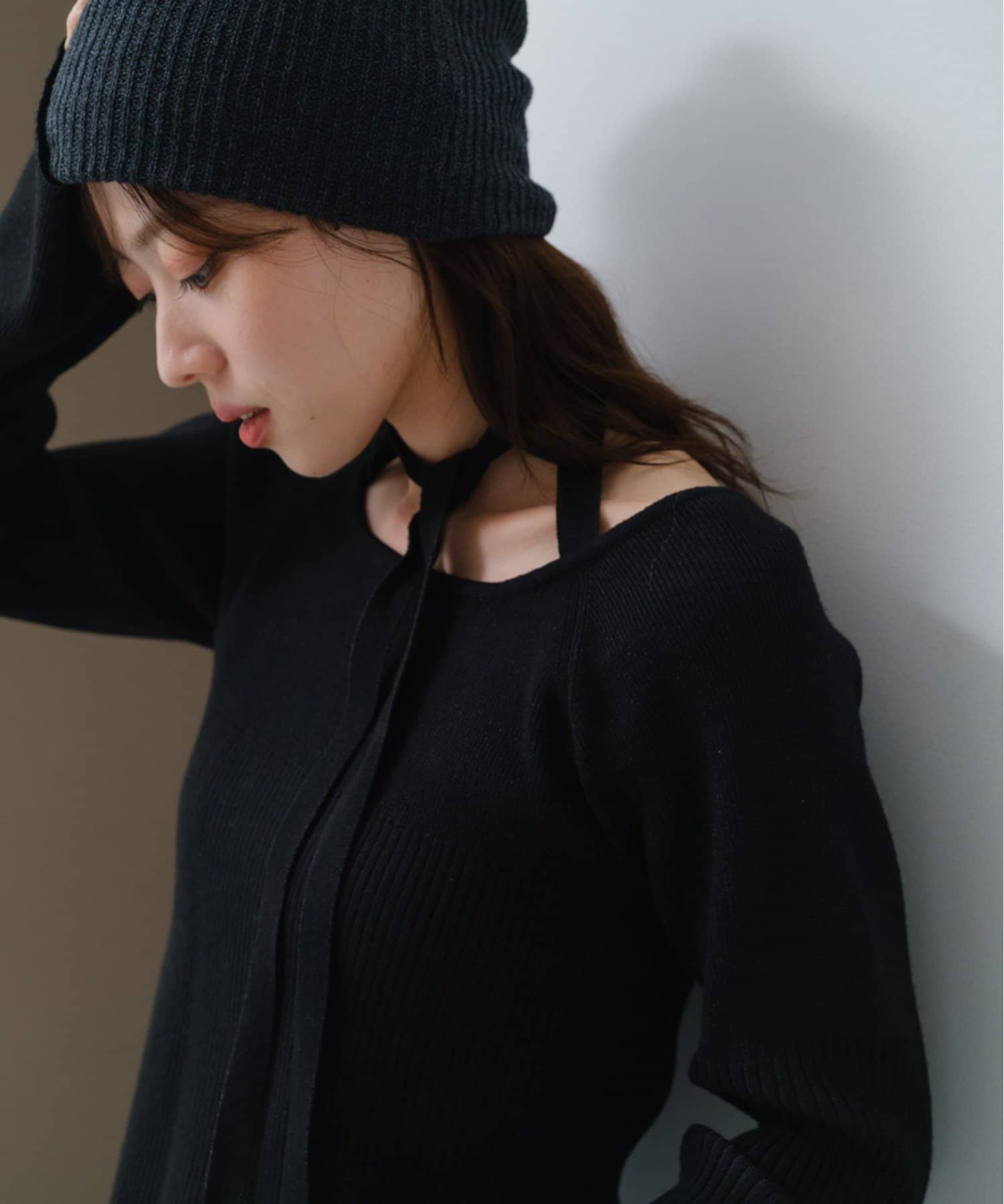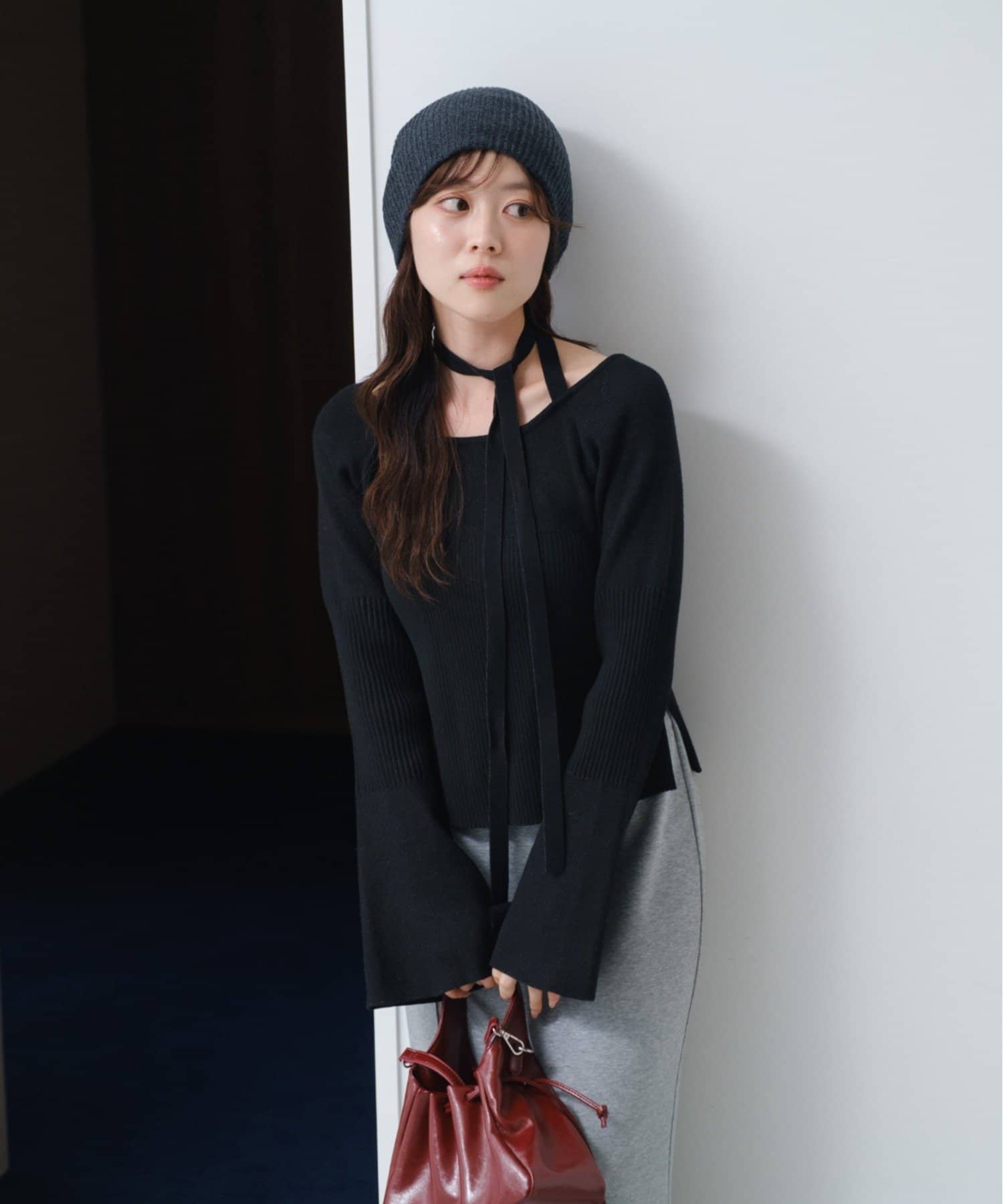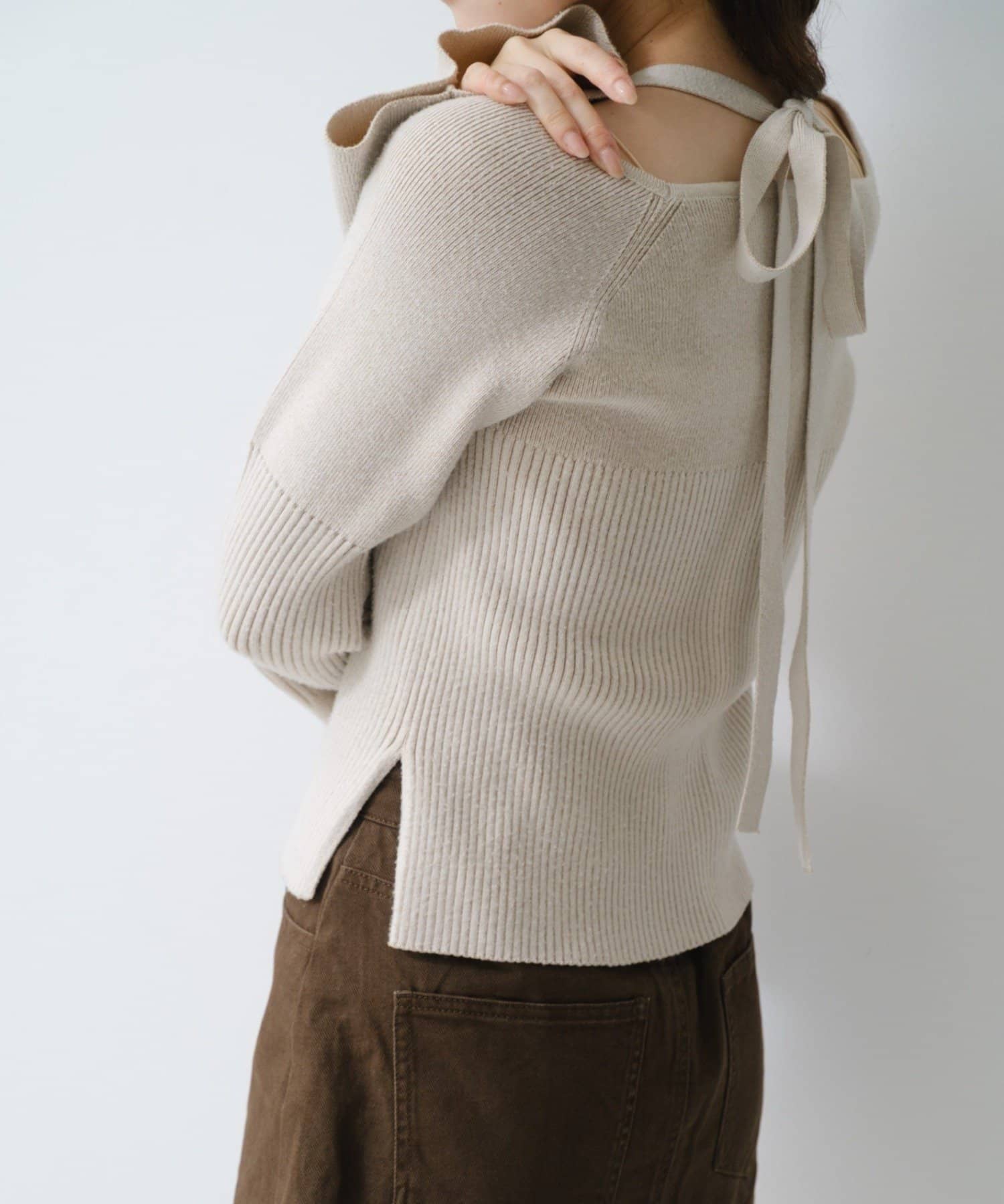 • Kastane(カスタネ) 【WEB・一部店舗限定】ボウタイ配色リブニット