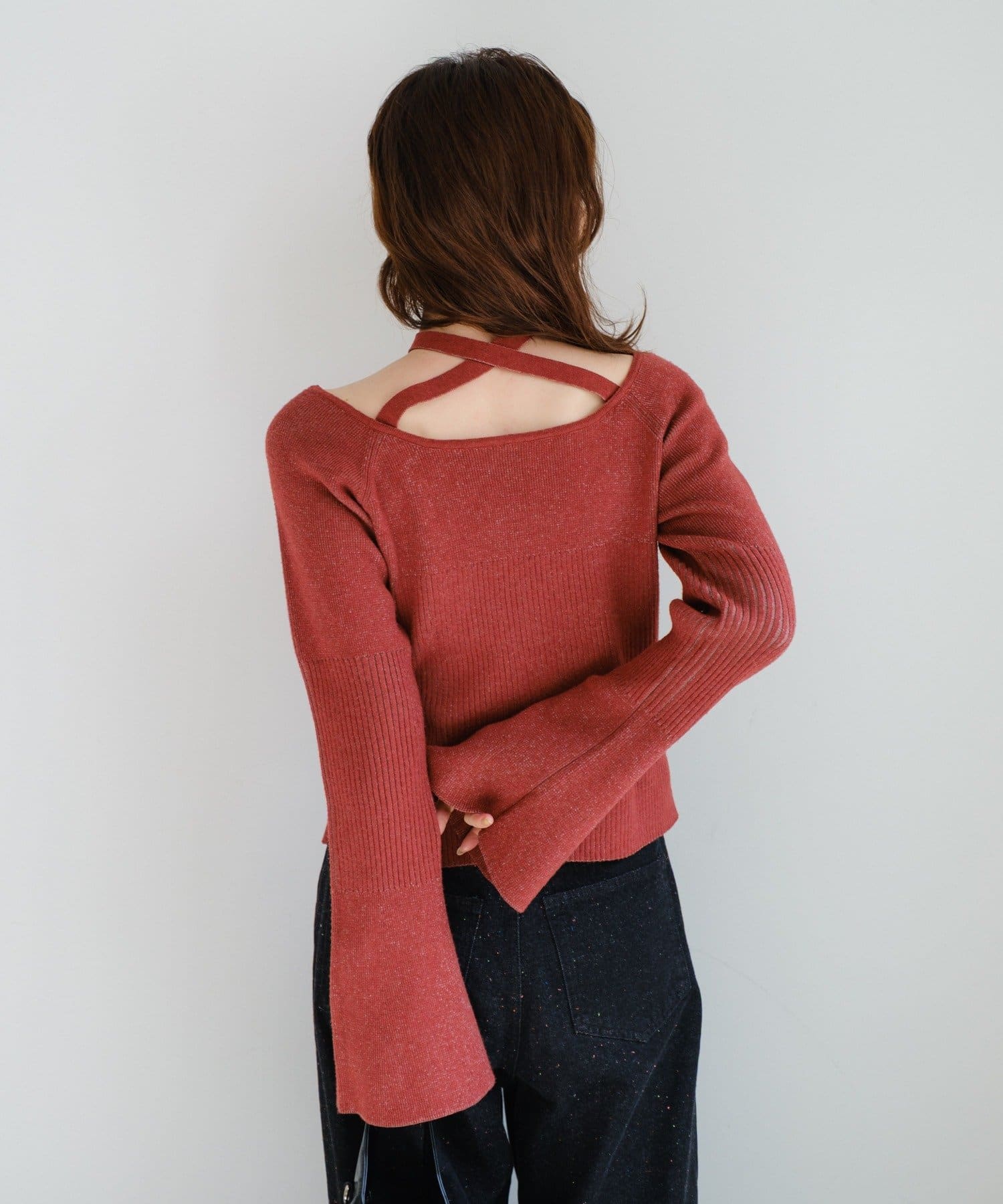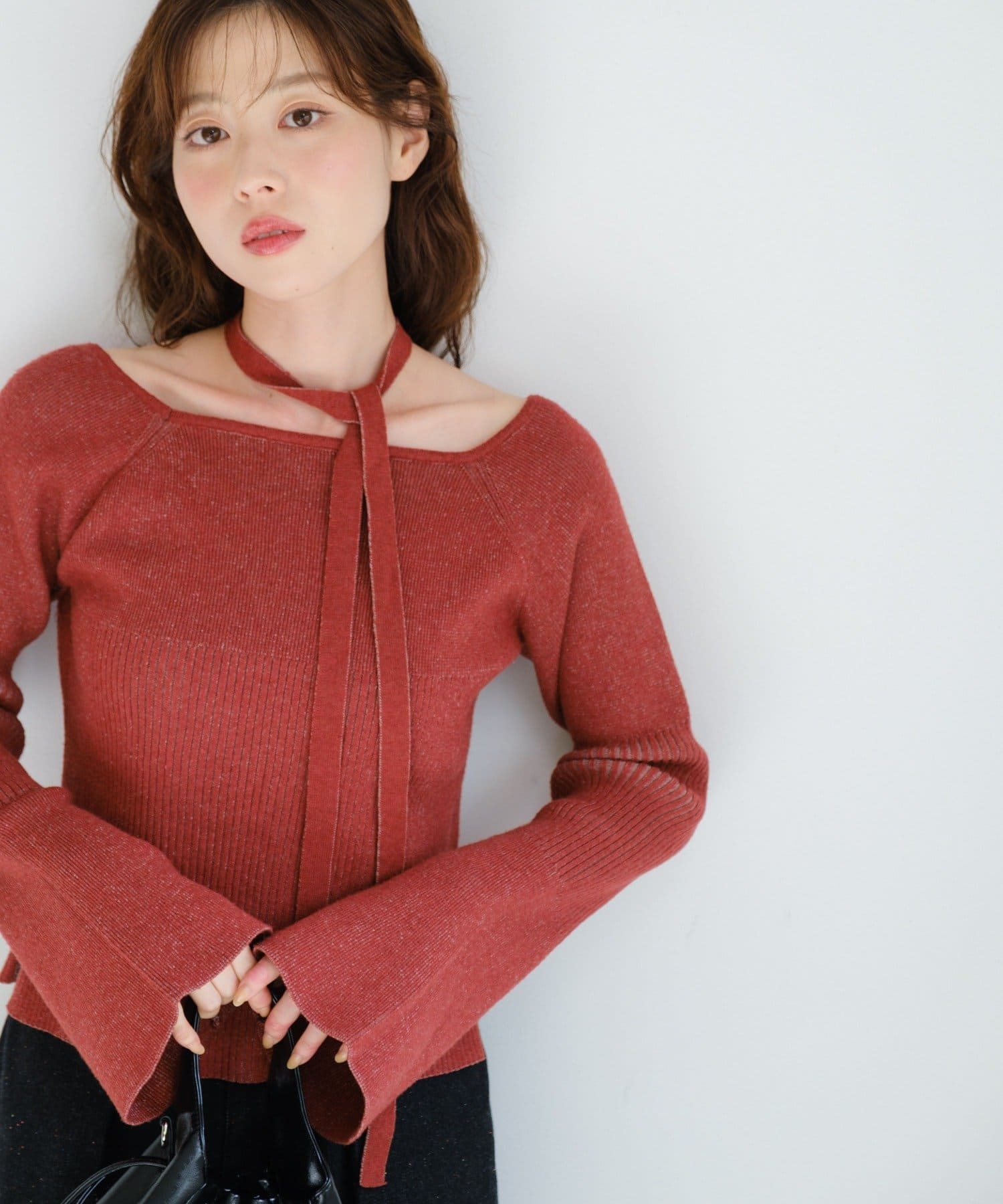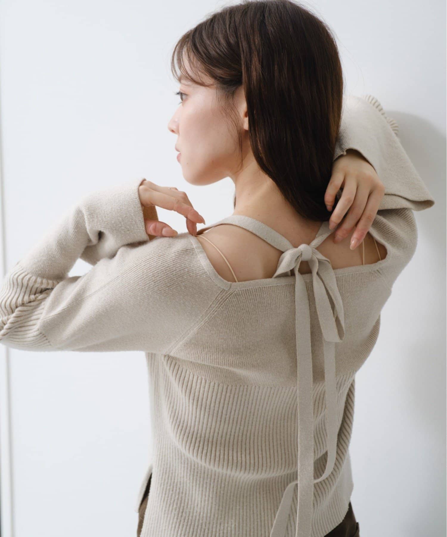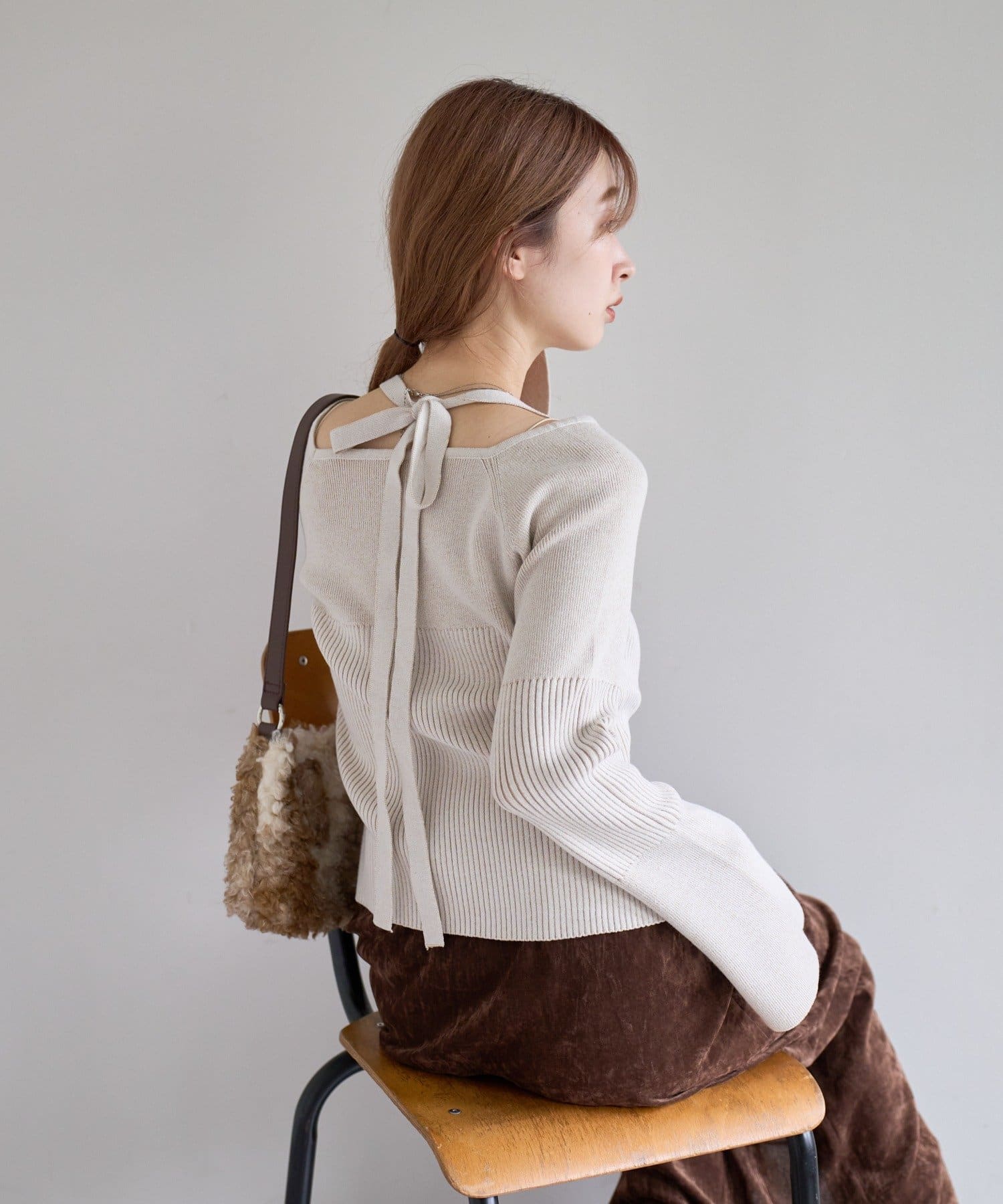 • Kastane(カスタネ) 【WEB・一部店舗限定】ボウタイ配色リブニット