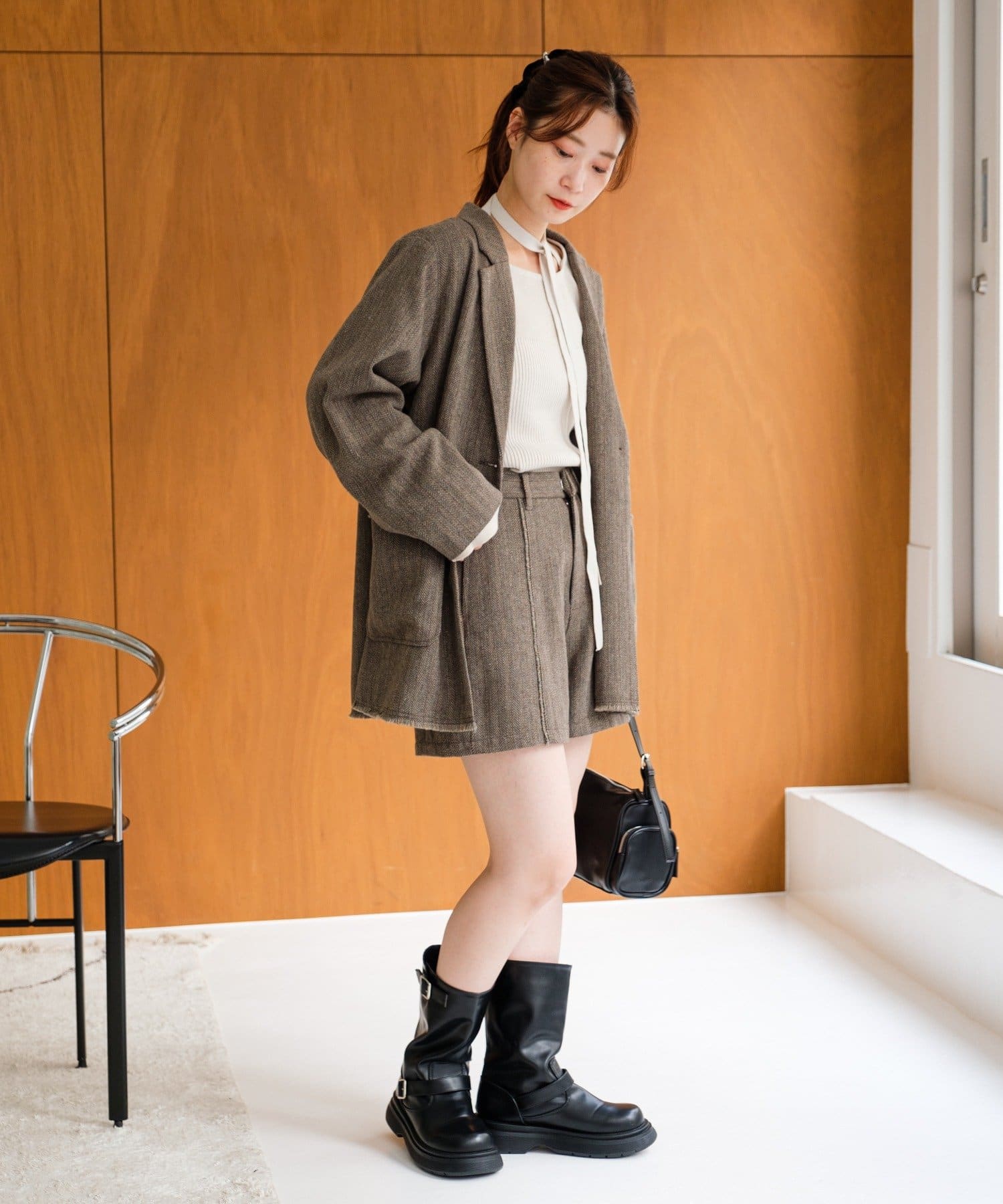 デザイン性があるので、シンプルなパンツスタイルでも華やかさが引き立ちます。