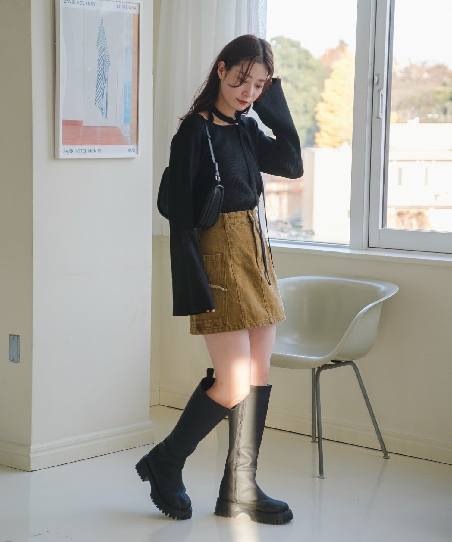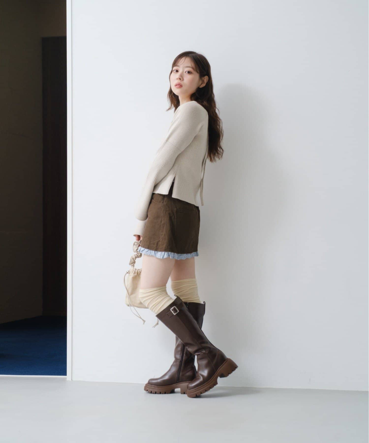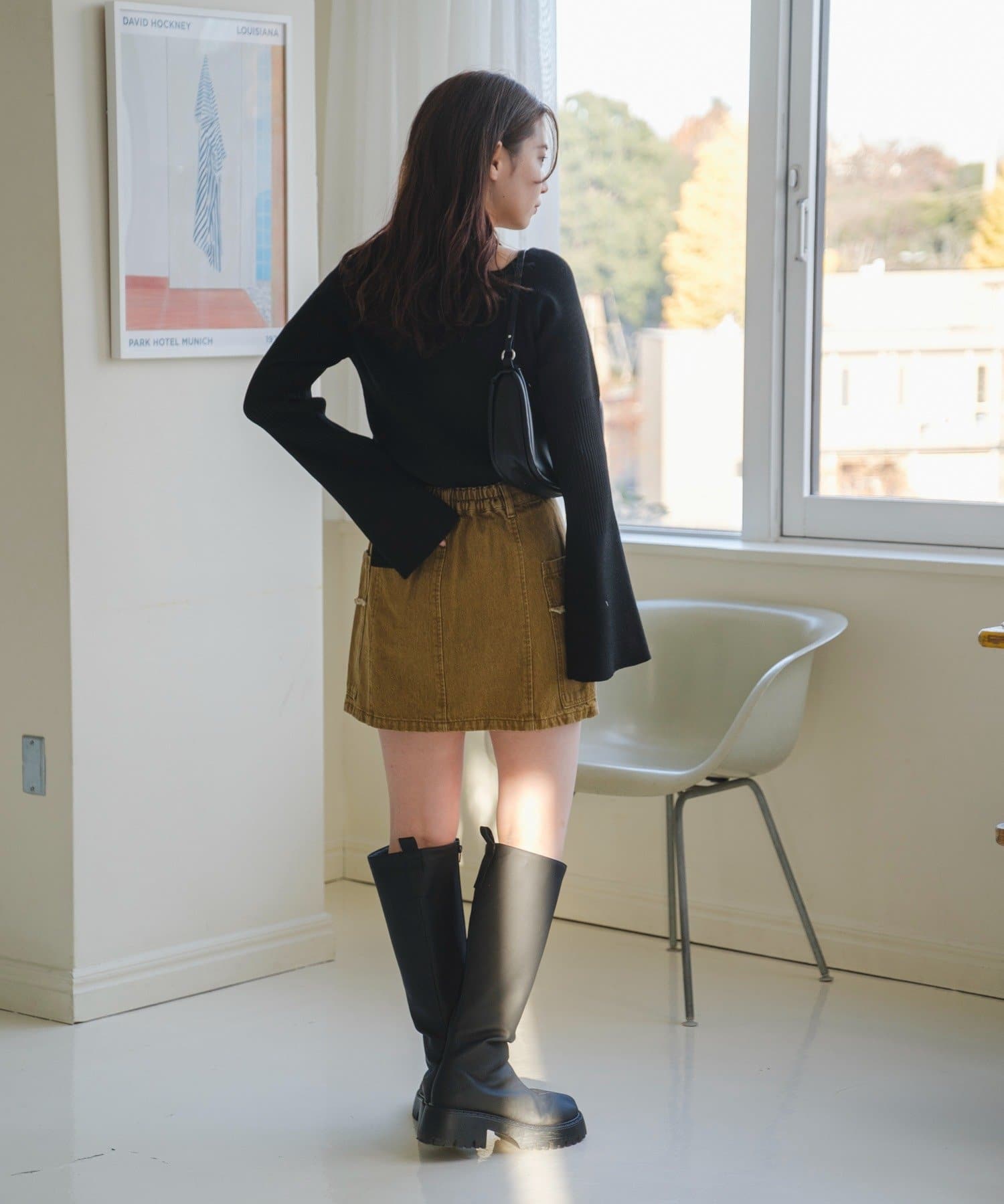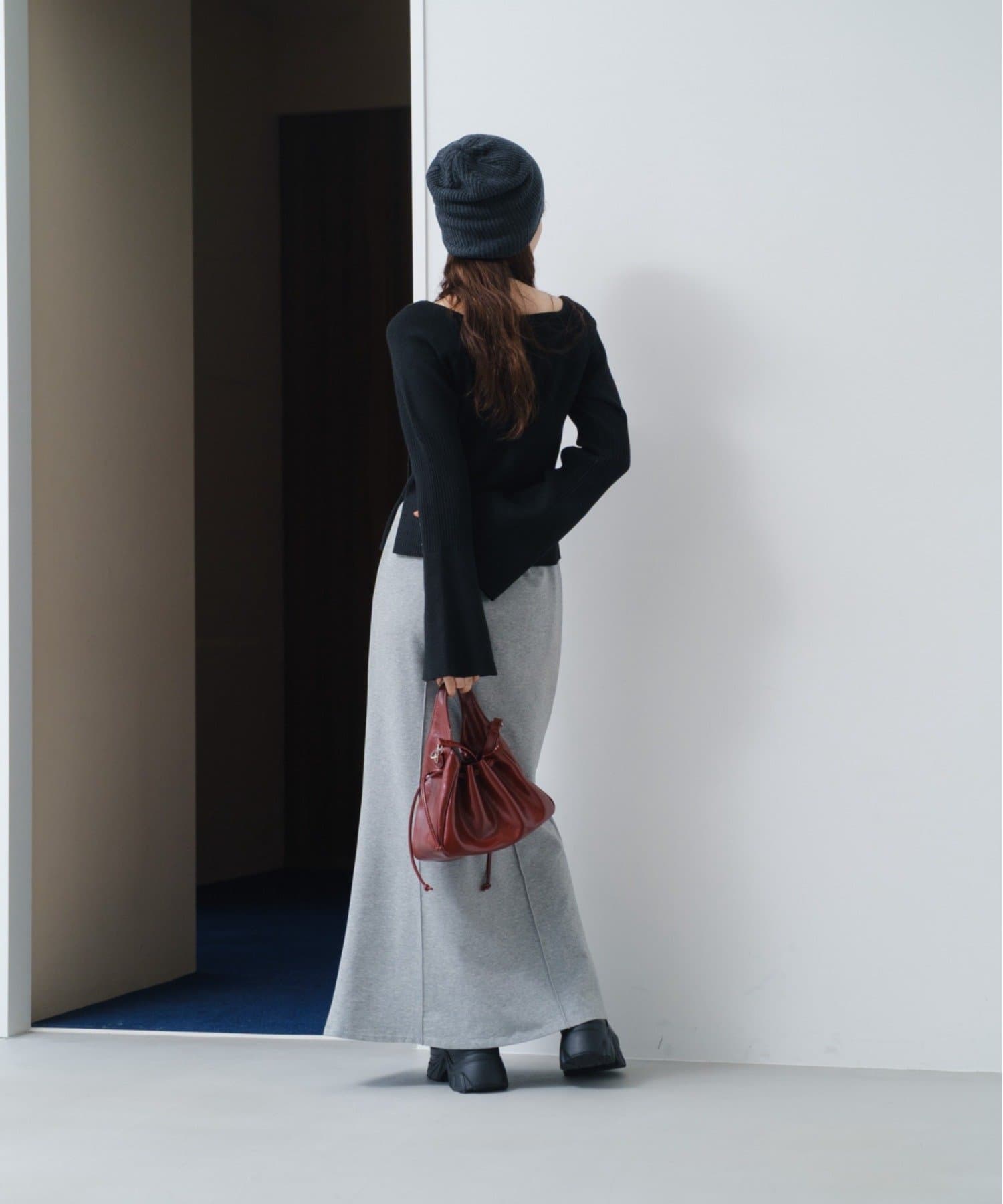 ウエストラインにかけてリブ編みが施されており、全体のフィット感を引き締めつつ、着心地も抜群です。