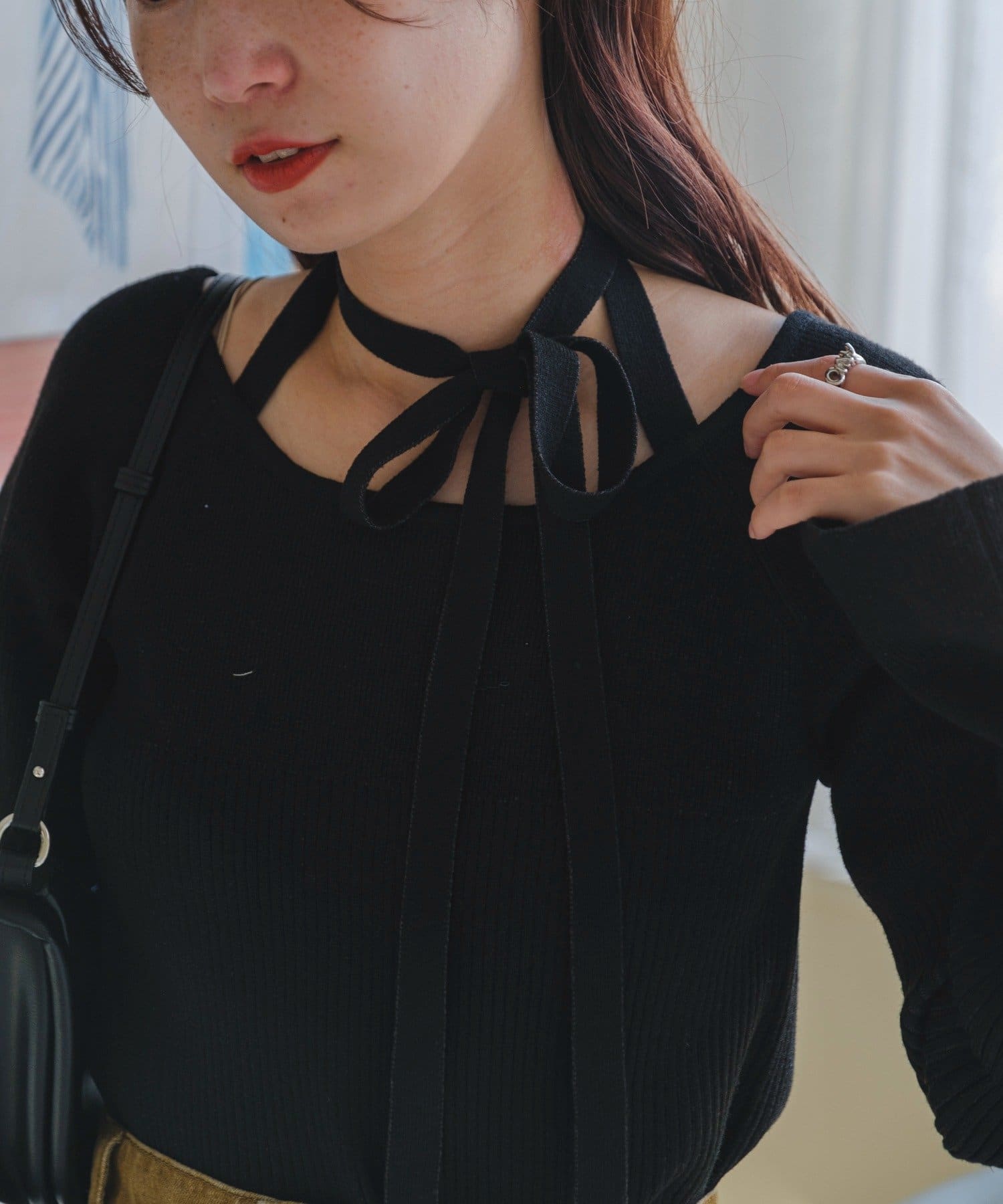 もともとチョーカーやリボンデザインが苦手でしたが、ニットと一体になっているので悪目立ちすることなくかわいく着れます!後ろにリボンが来るようにしても可愛いです!