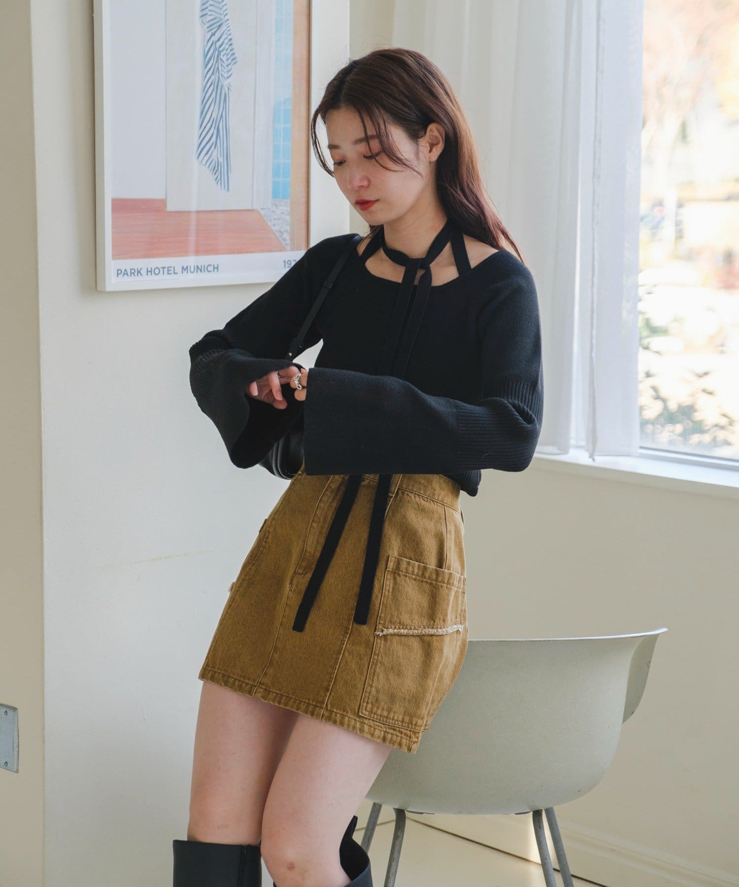 袖のフレアがとてもかわいいです!首元の紐でアレンジできてコーデの幅が広がります!