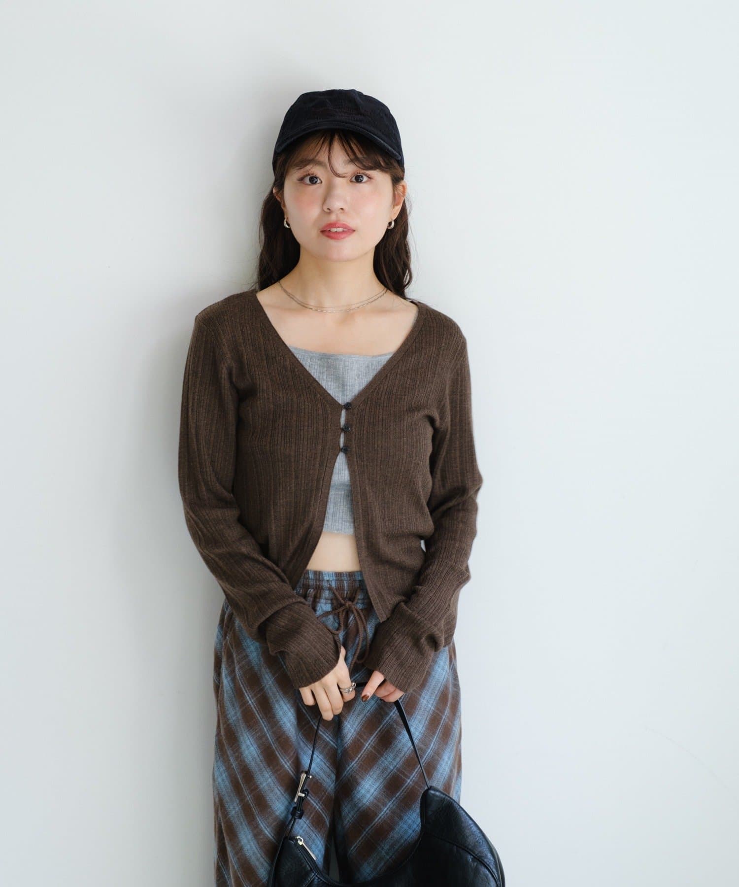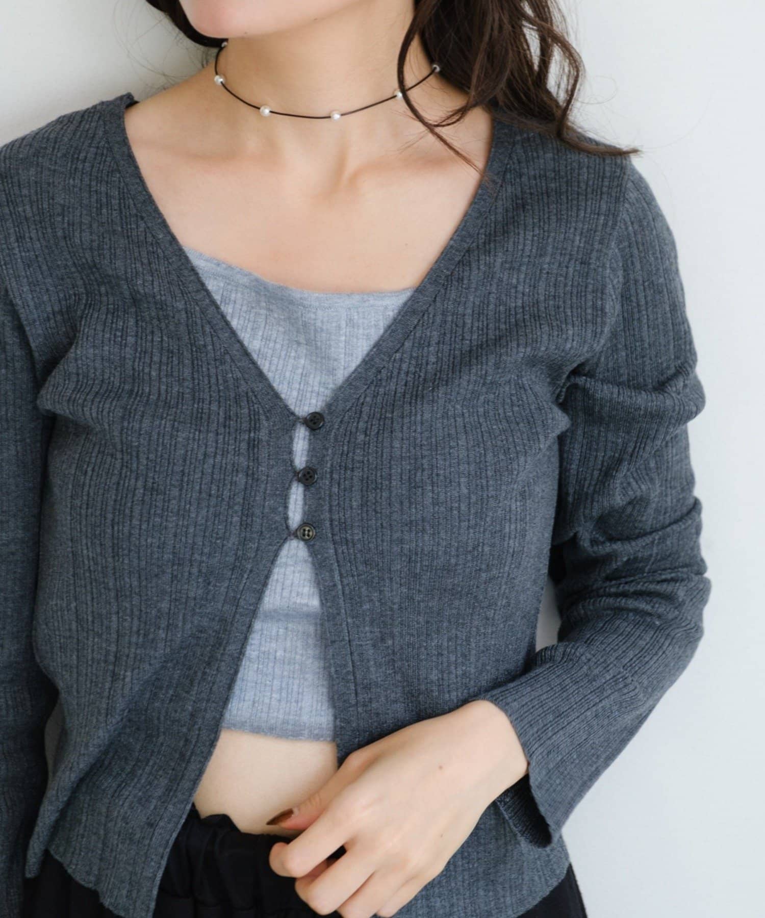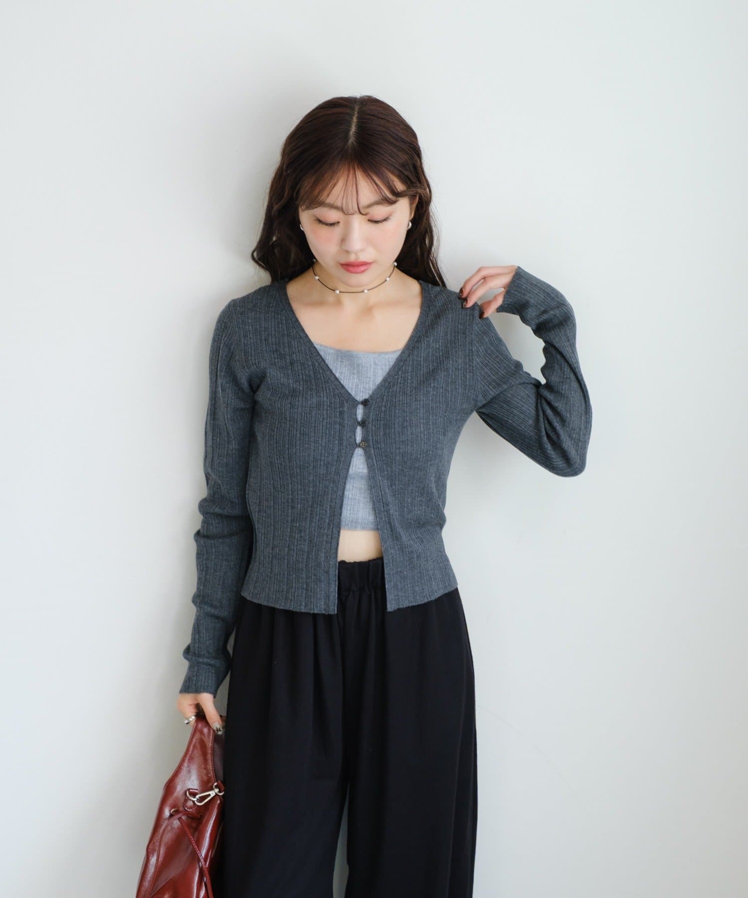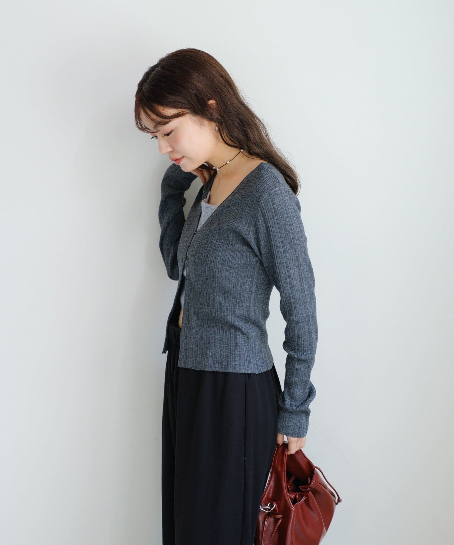 フロントボタンと細身のシルエットが上品な印象を与え、一枚でレイヤードスタイルが完成する優秀アイテムです。