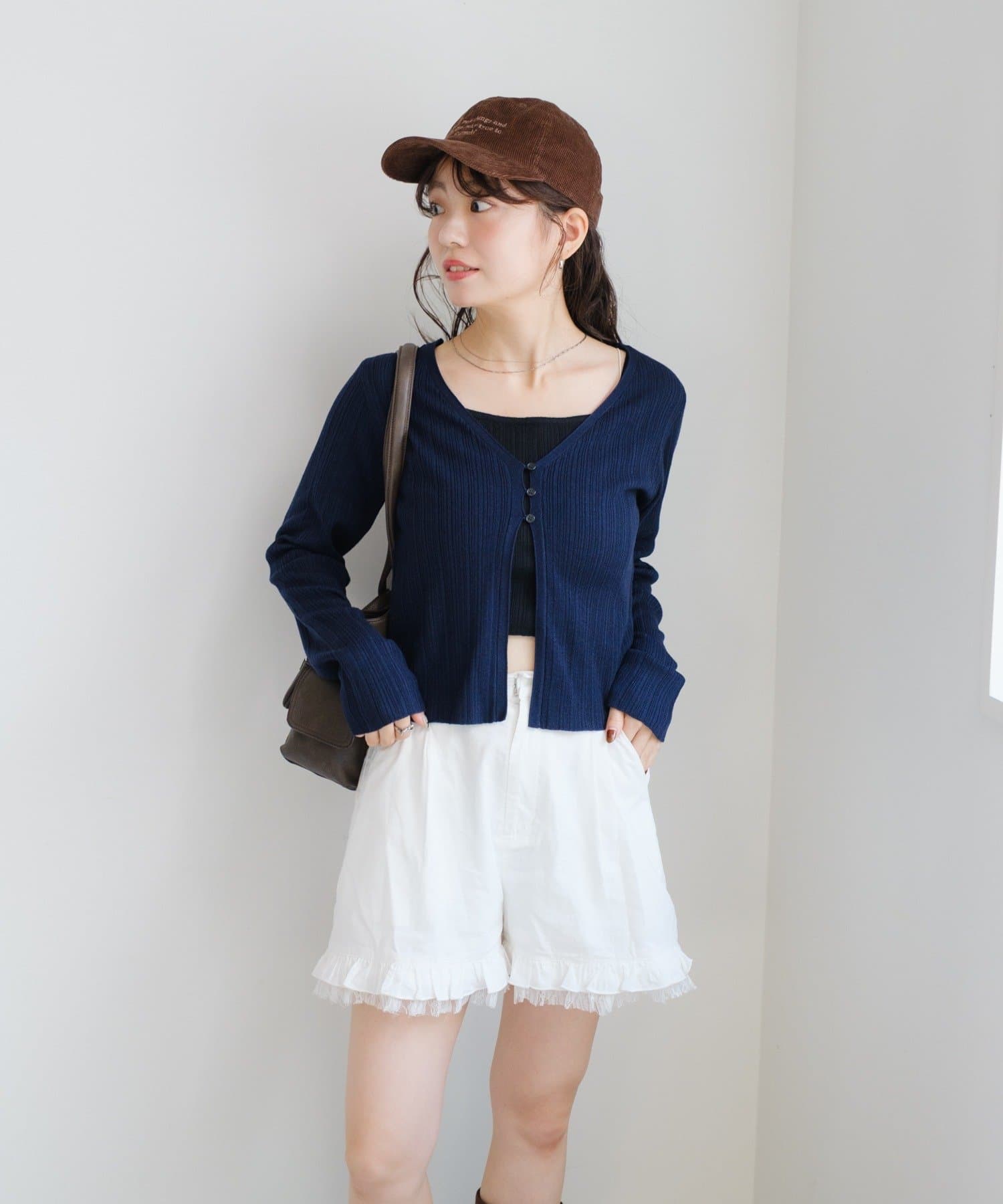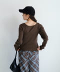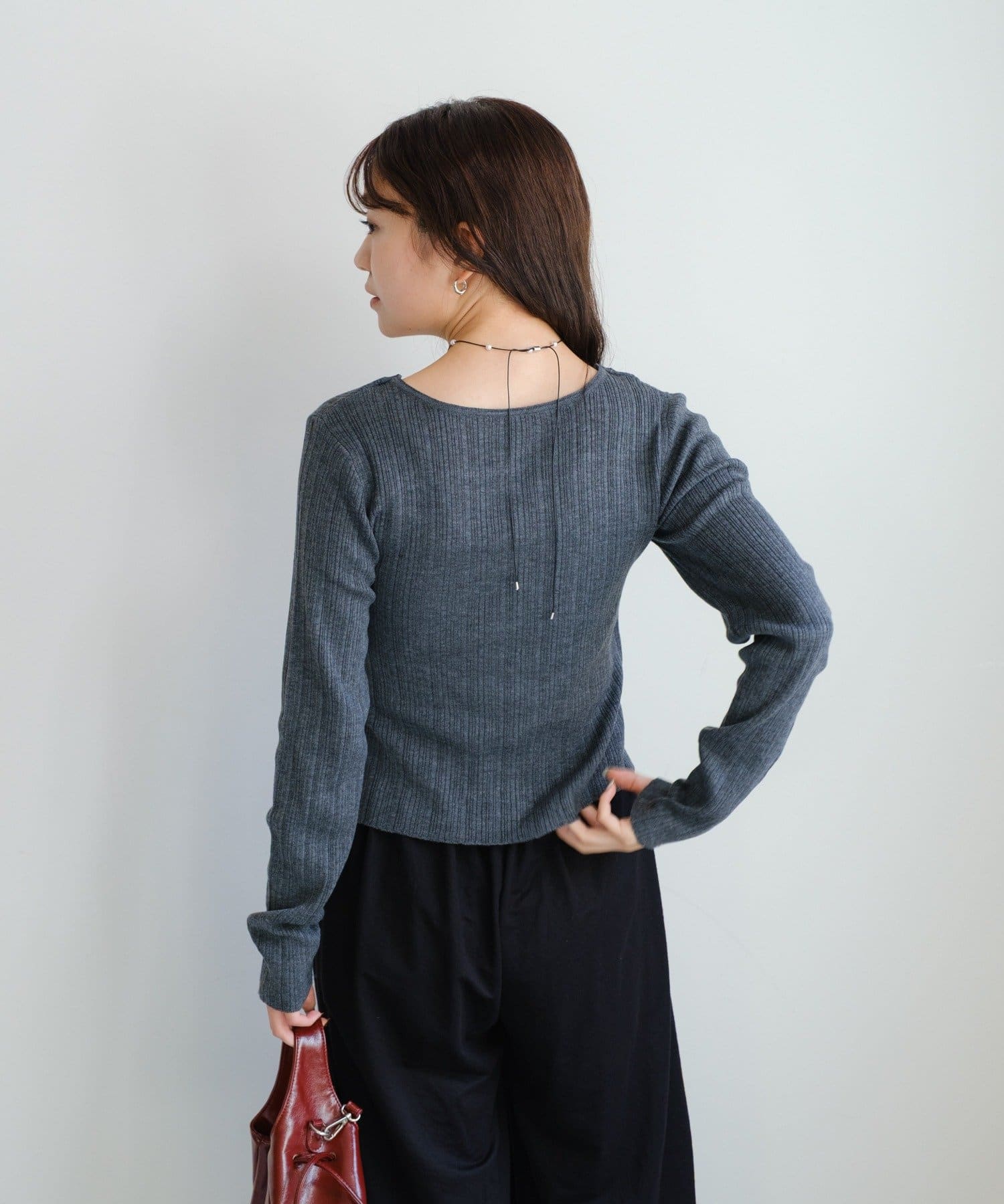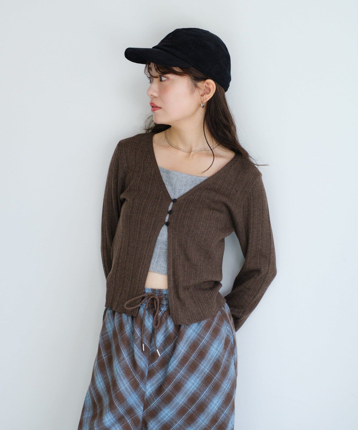 フロントボタンと細身のシルエットが上品な印象を与え、一枚でレイヤードスタイルが完成する優秀アイテムです。