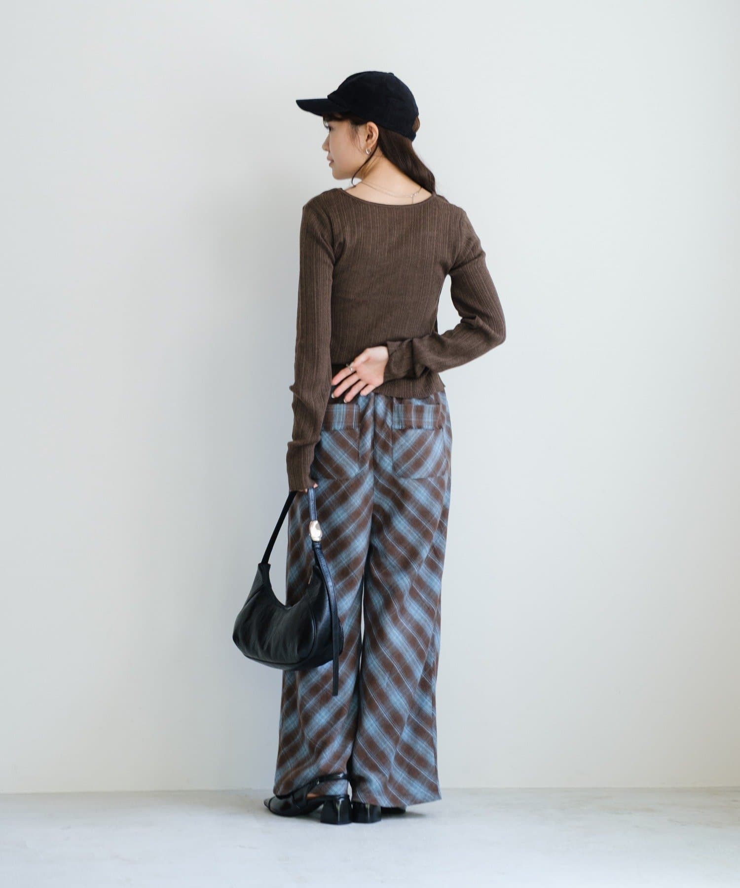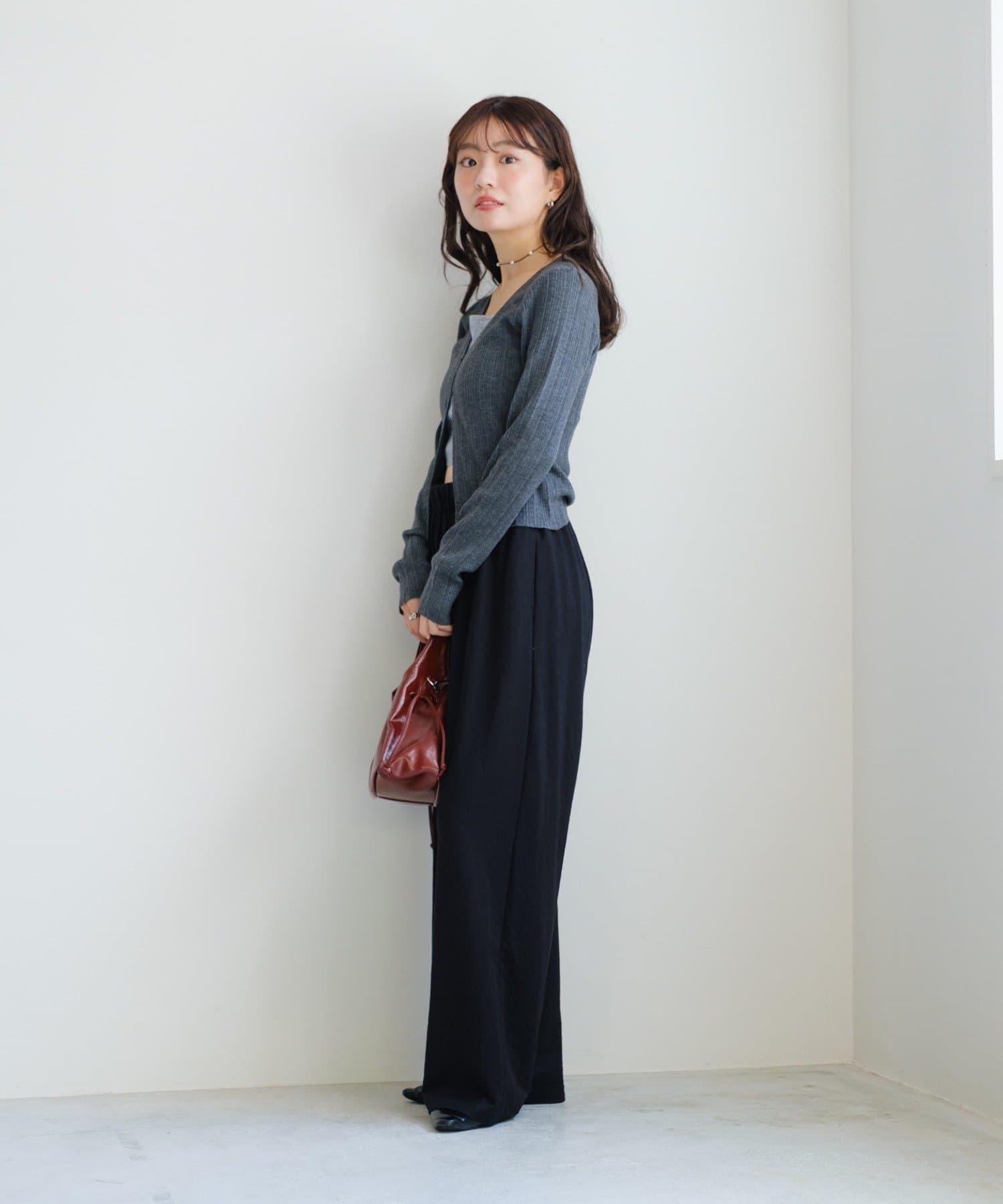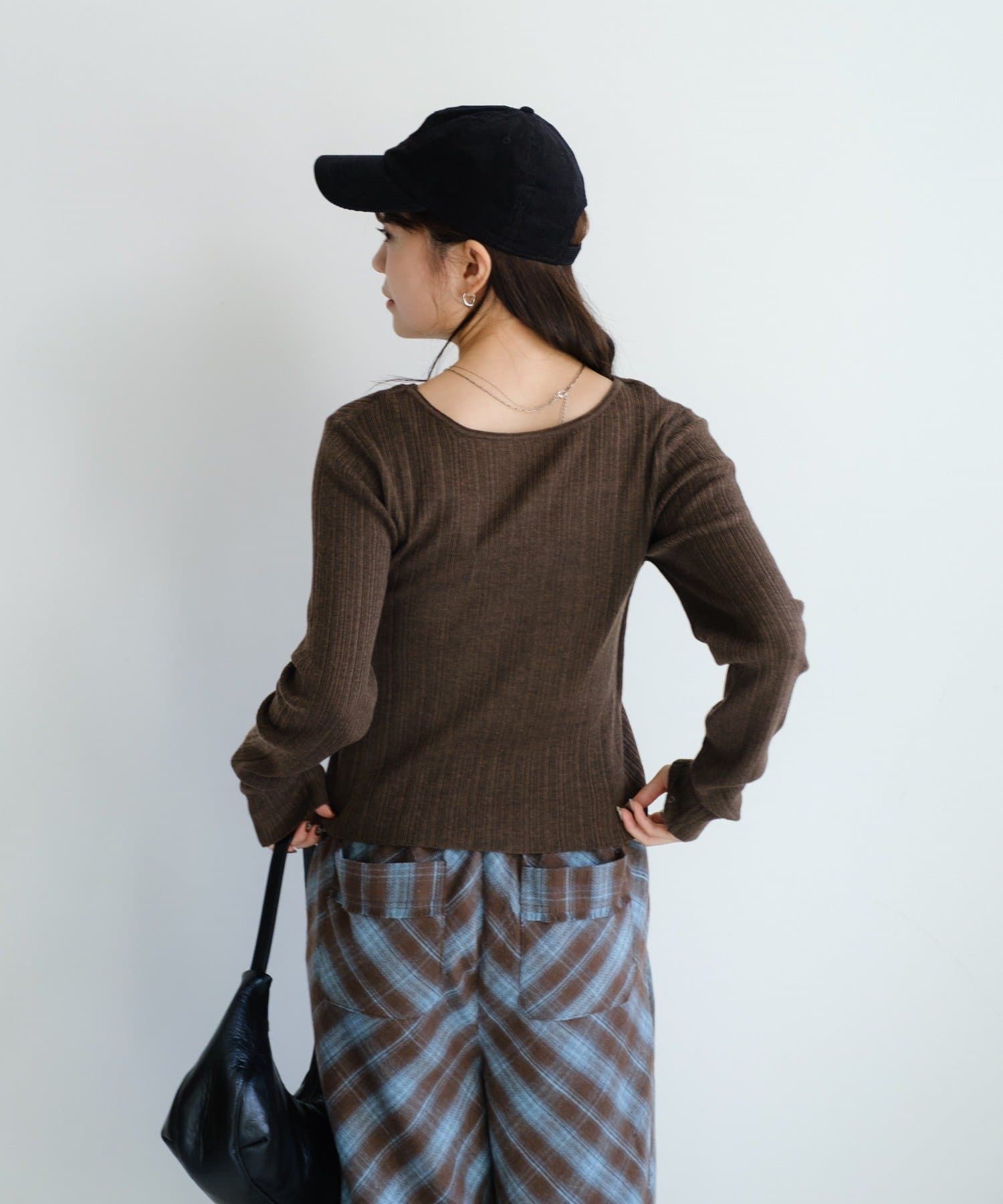 程よい厚みのリブニット素材で、ストレッチ性もありフィット感抜群。