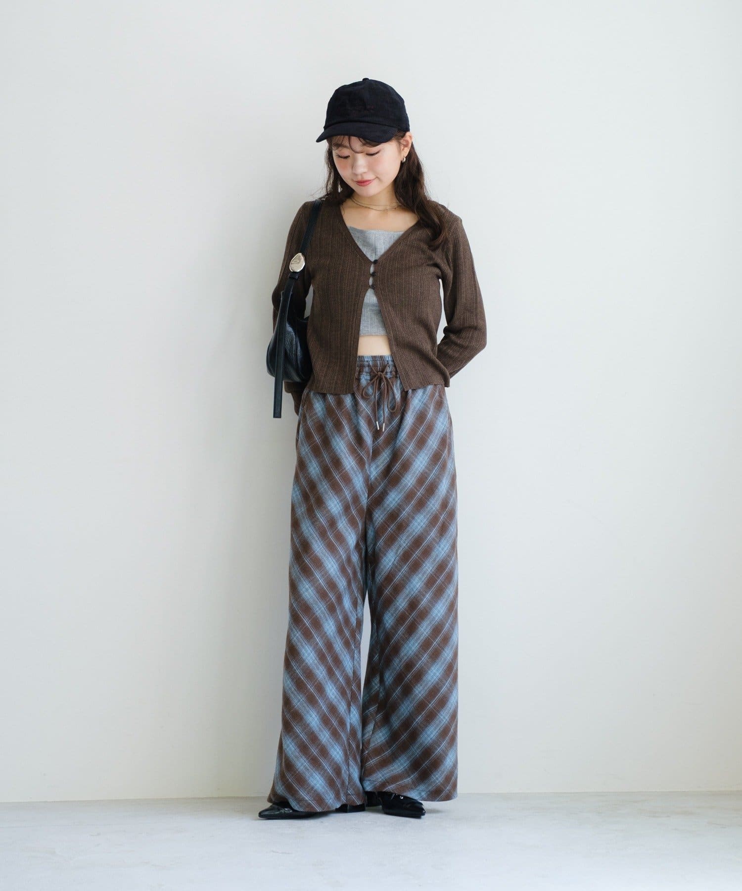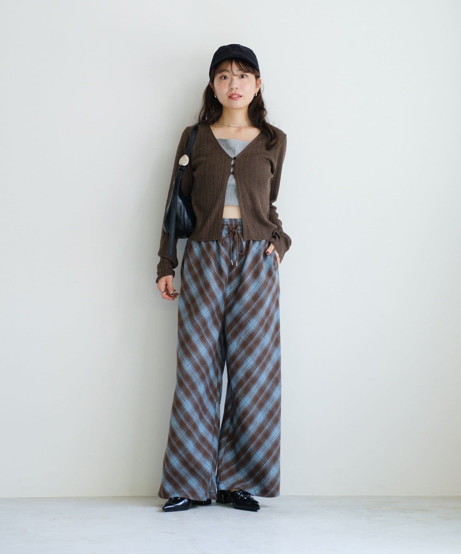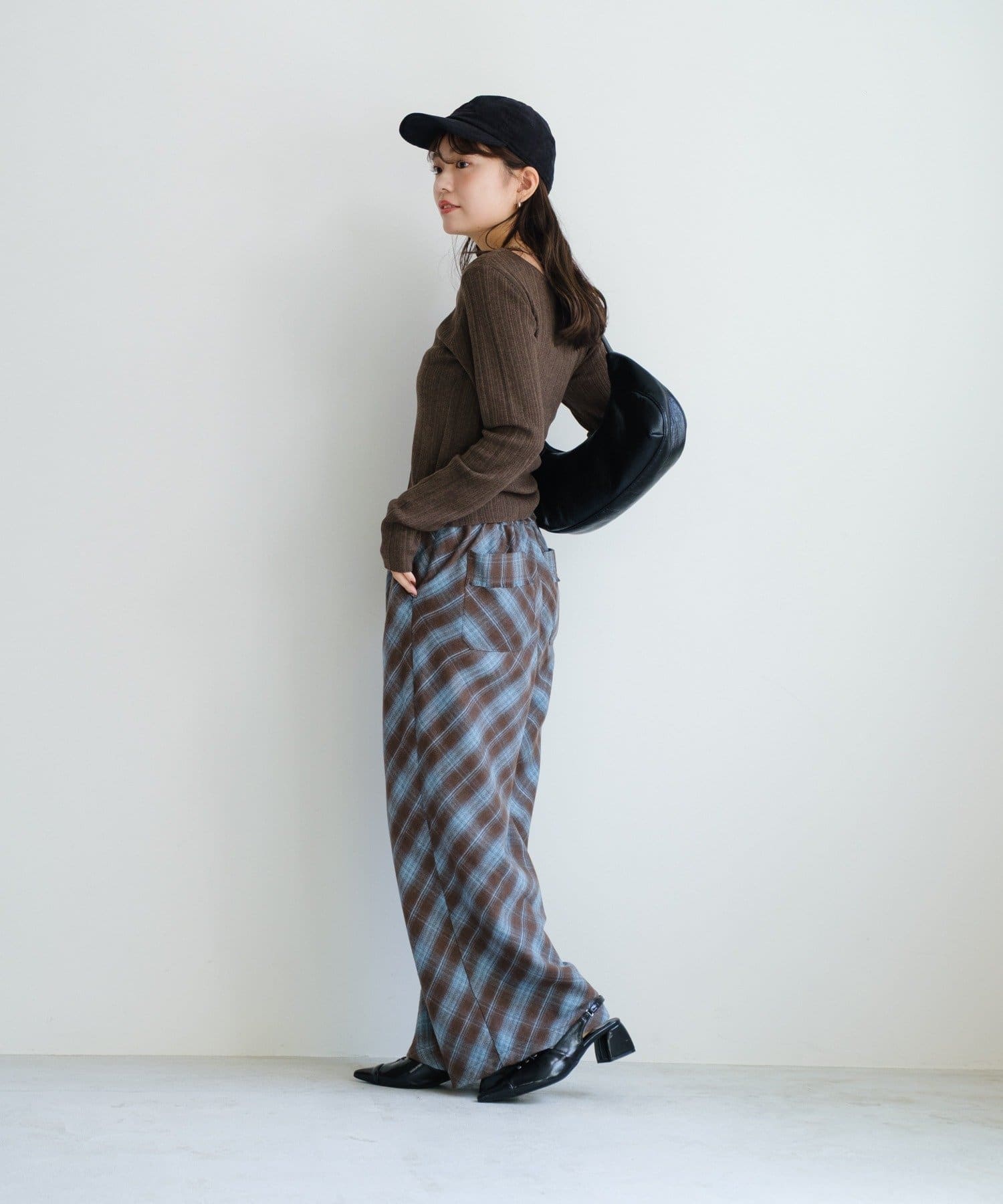 程よい厚みのリブニット素材で、ストレッチ性もありフィット感抜群。