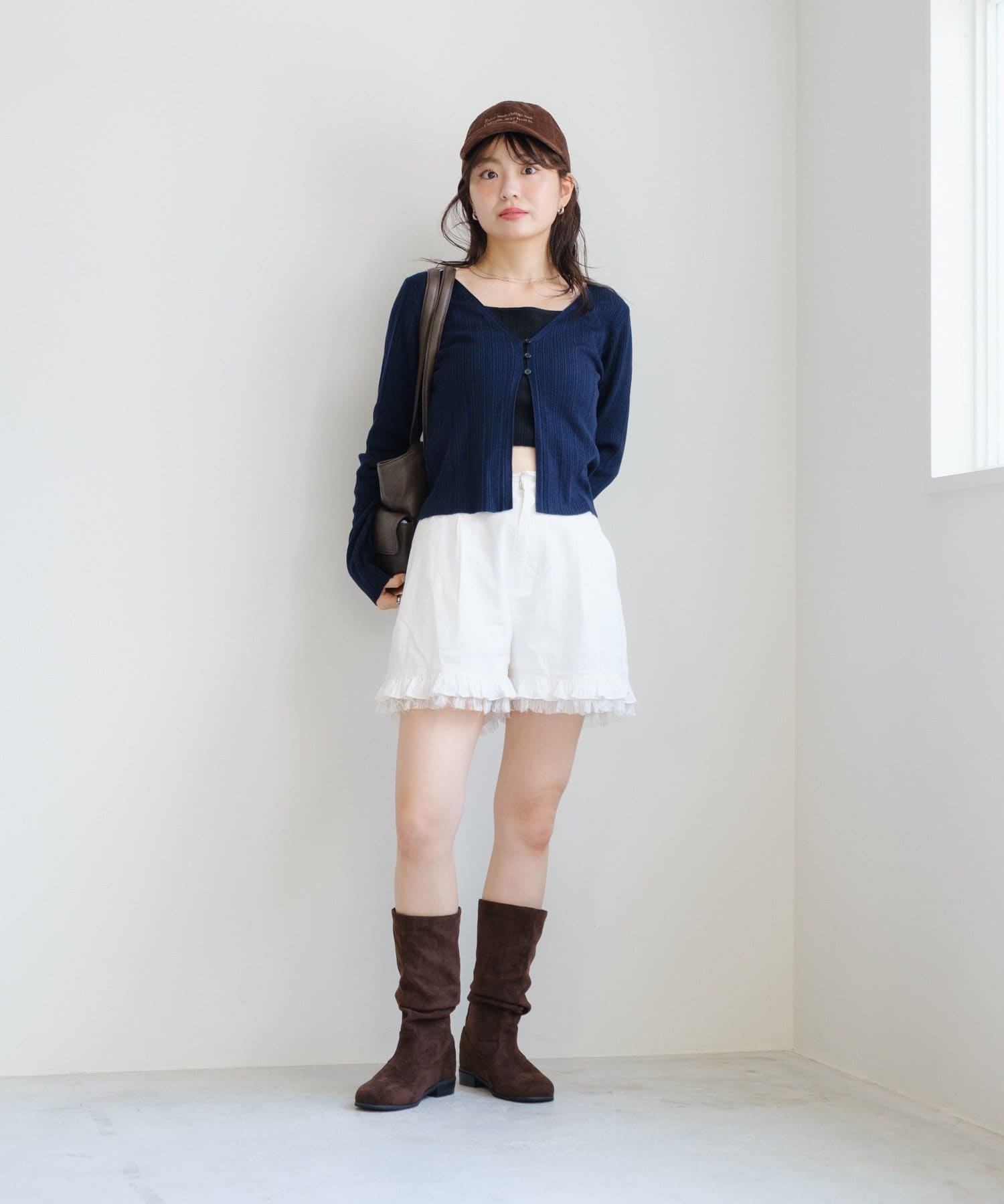 タイトスカート+ブーツで大人っぽい着こなしに。