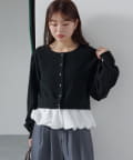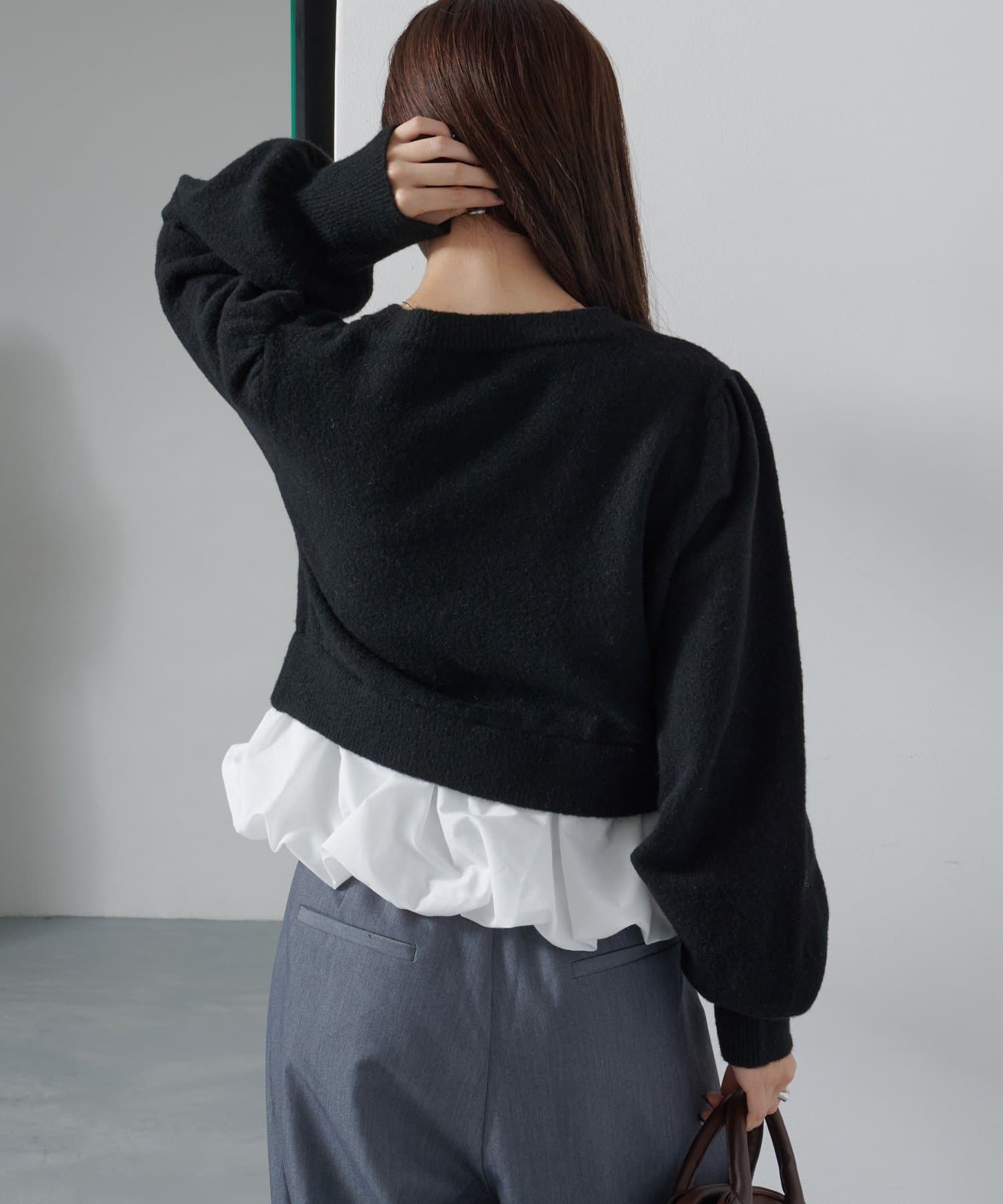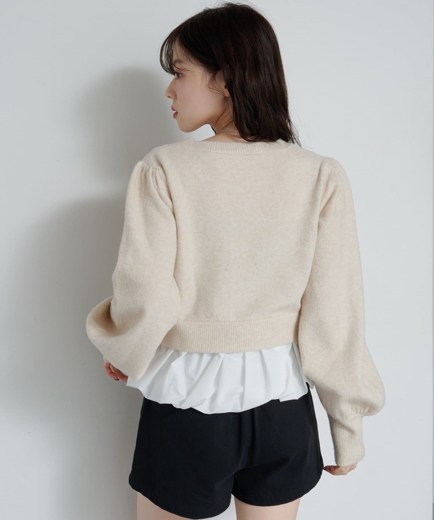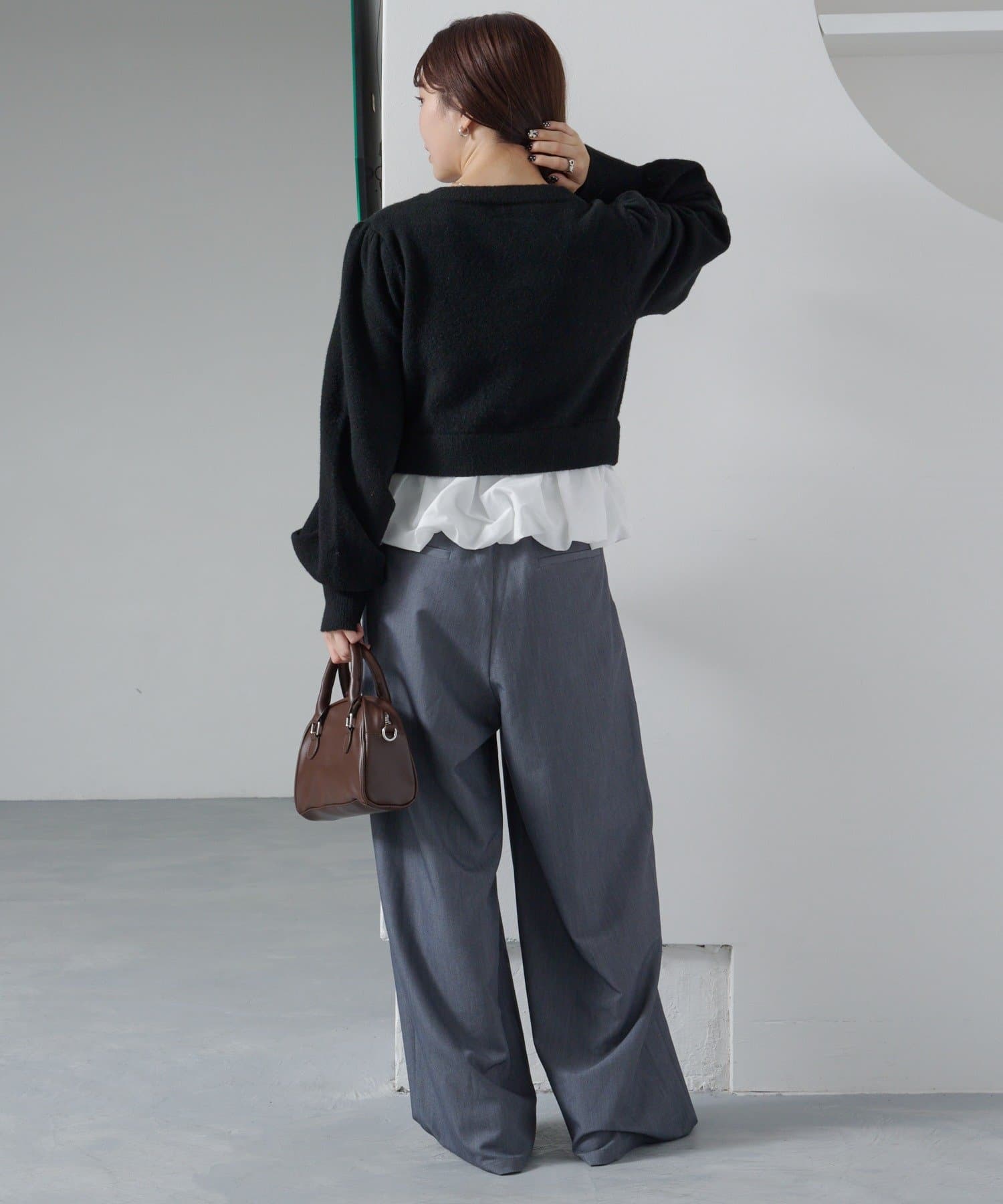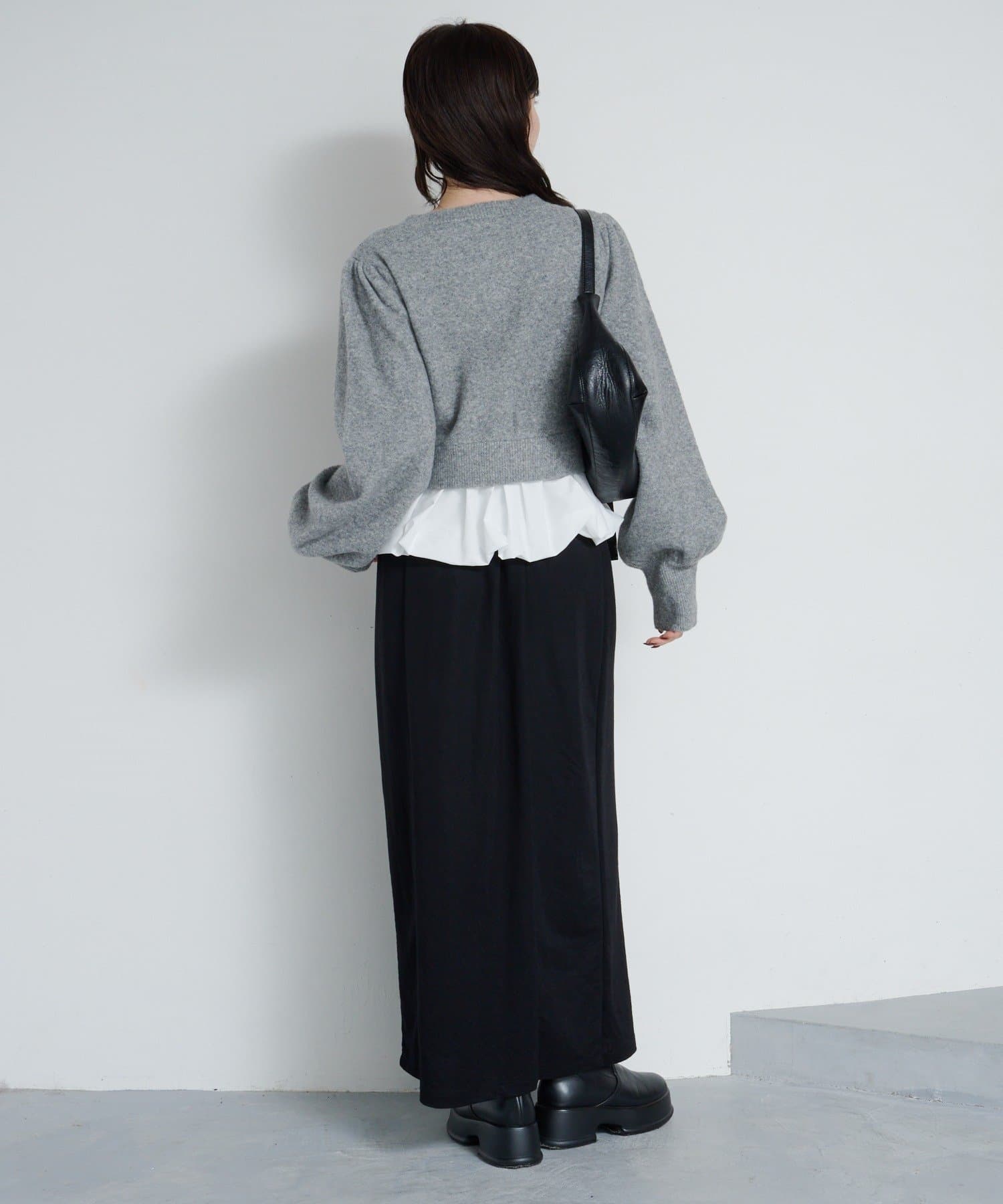 ふんわり柔らかなニット素材と、軽やかな布帛の異素材ドッキング。
