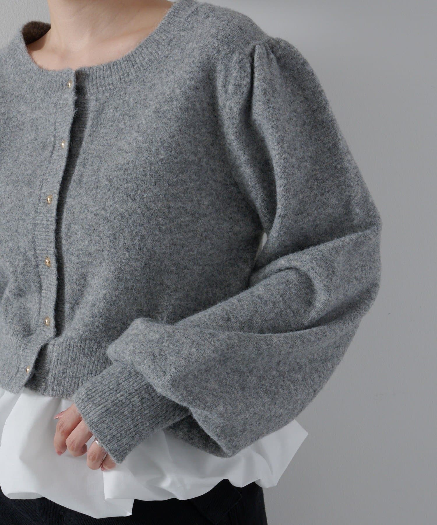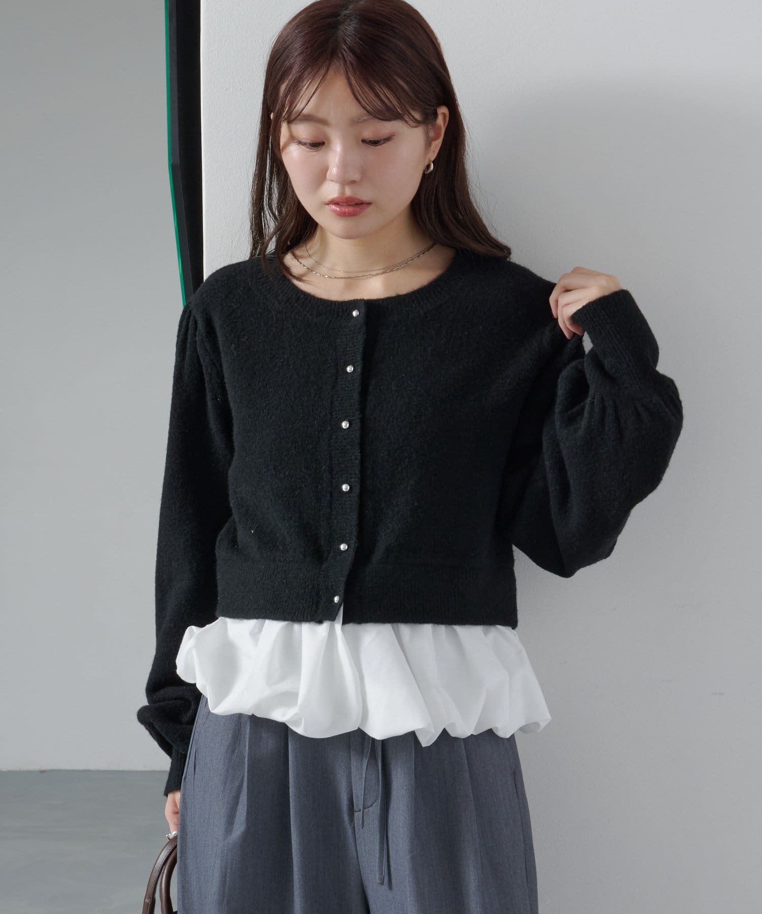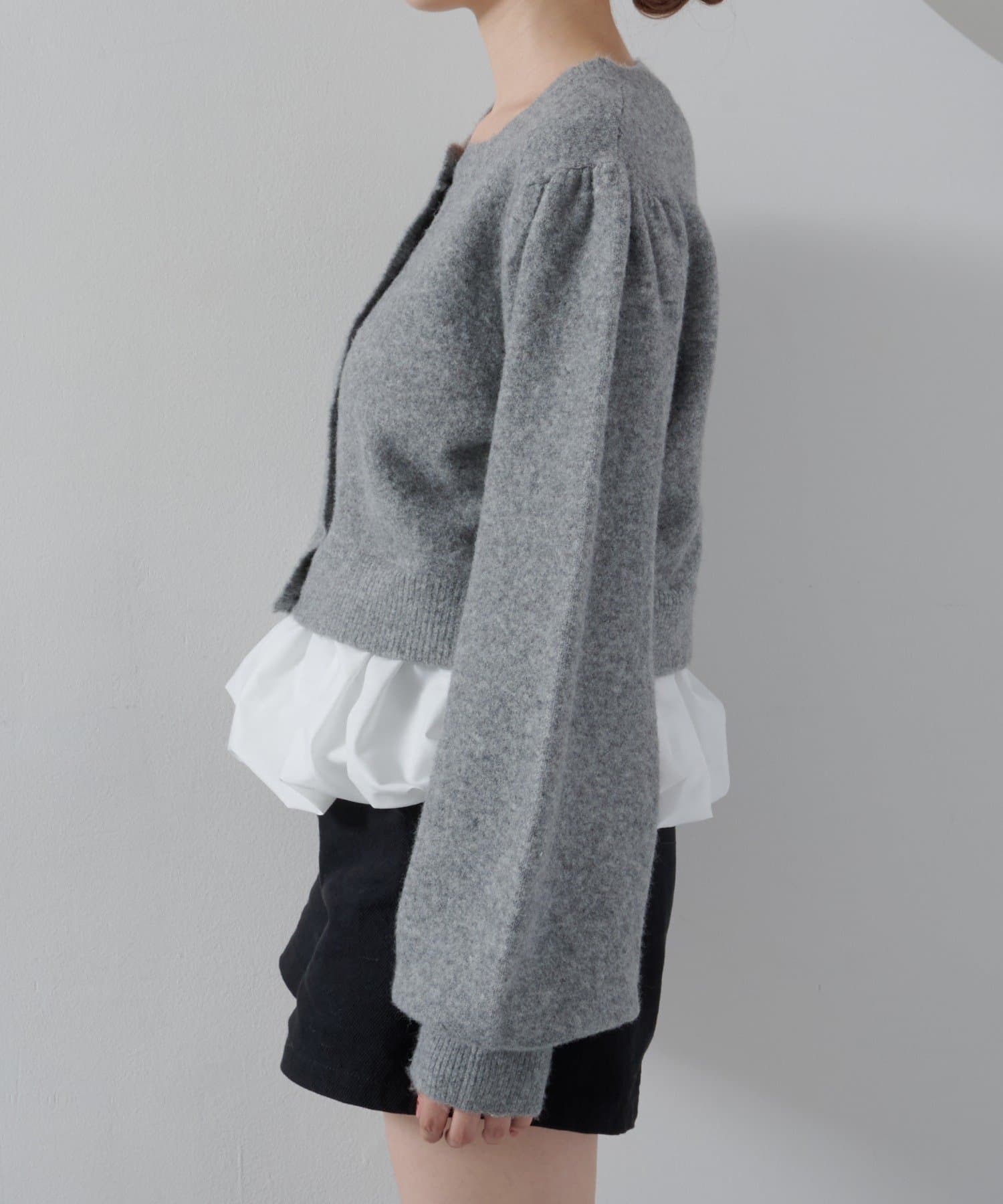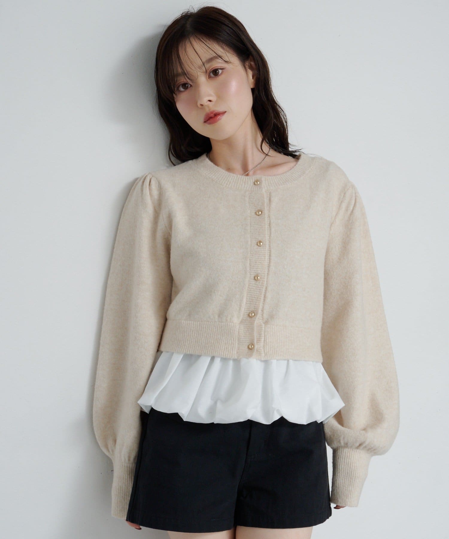 裾のバルーンデザインが目を惹くニットカーディガン。