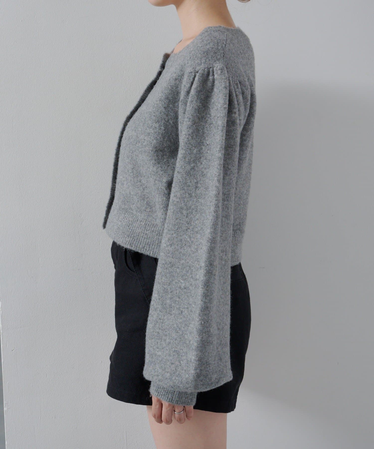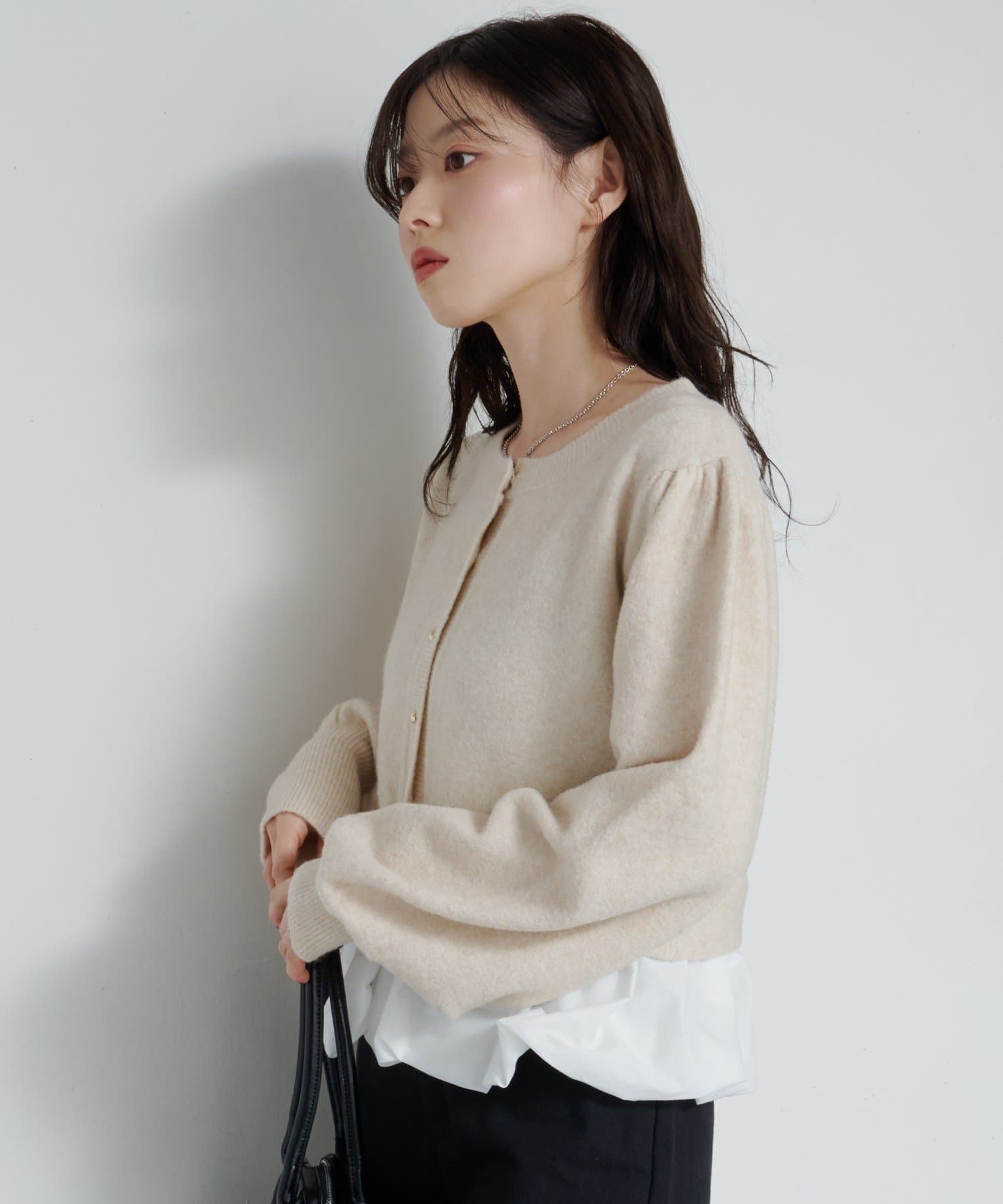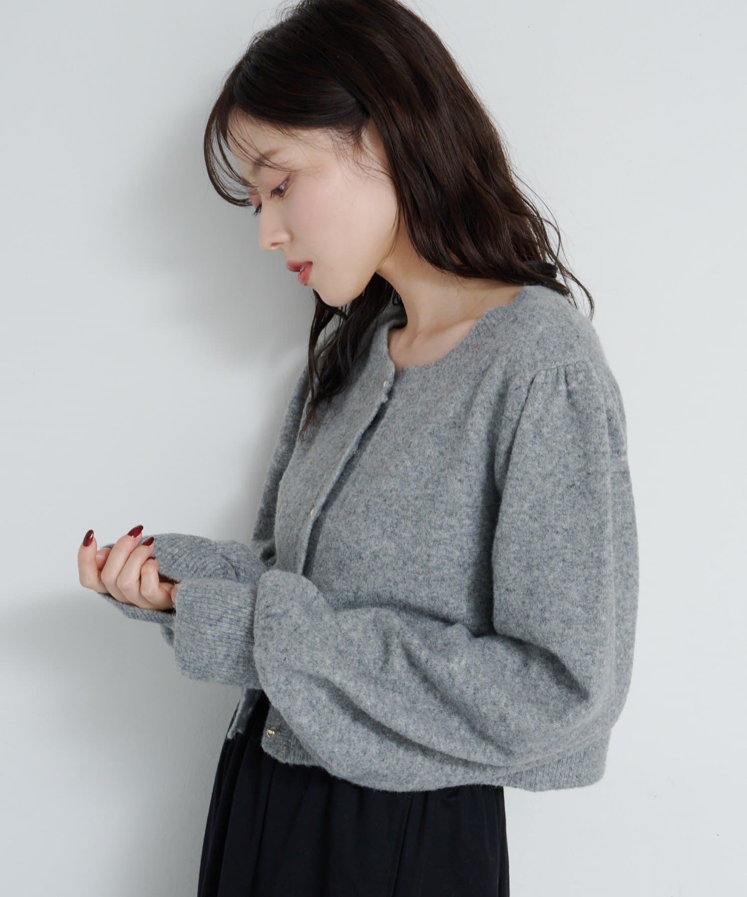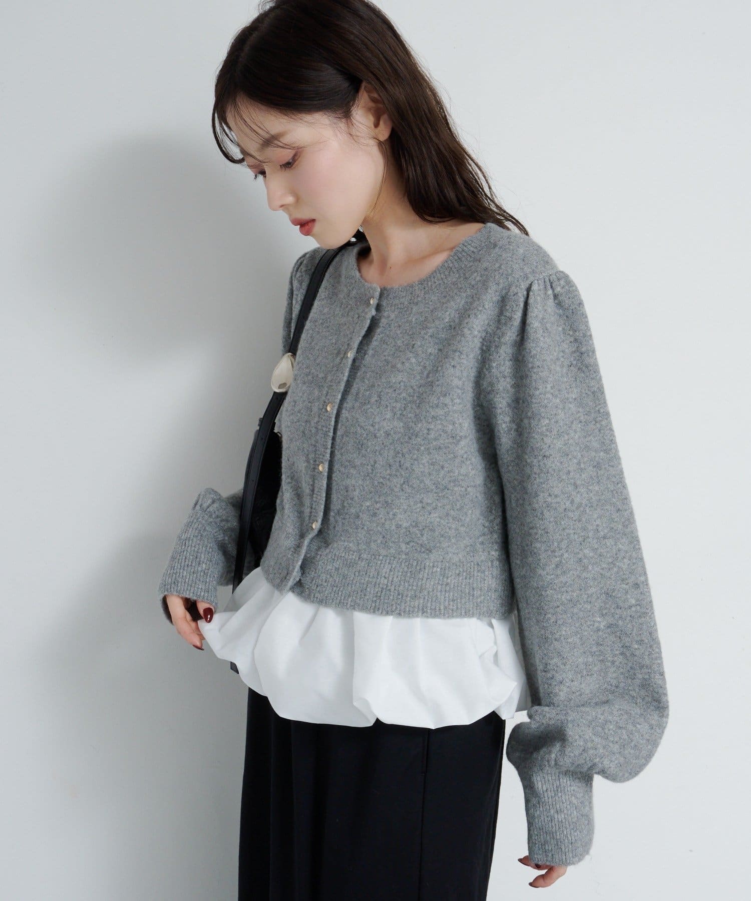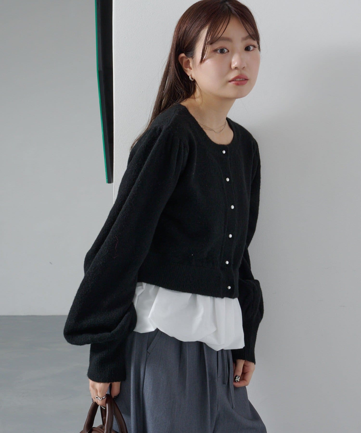裾のバルーンデザインが目を惹くニットカーディガン。