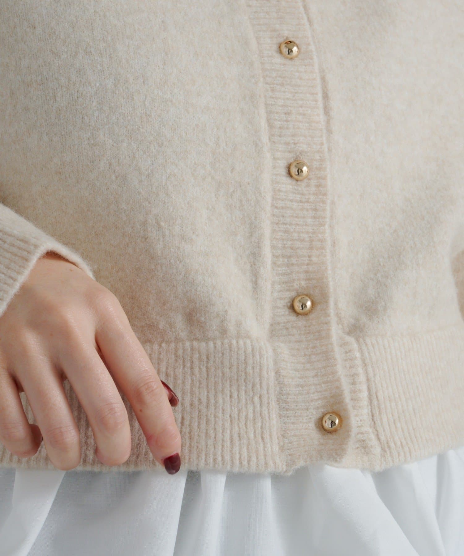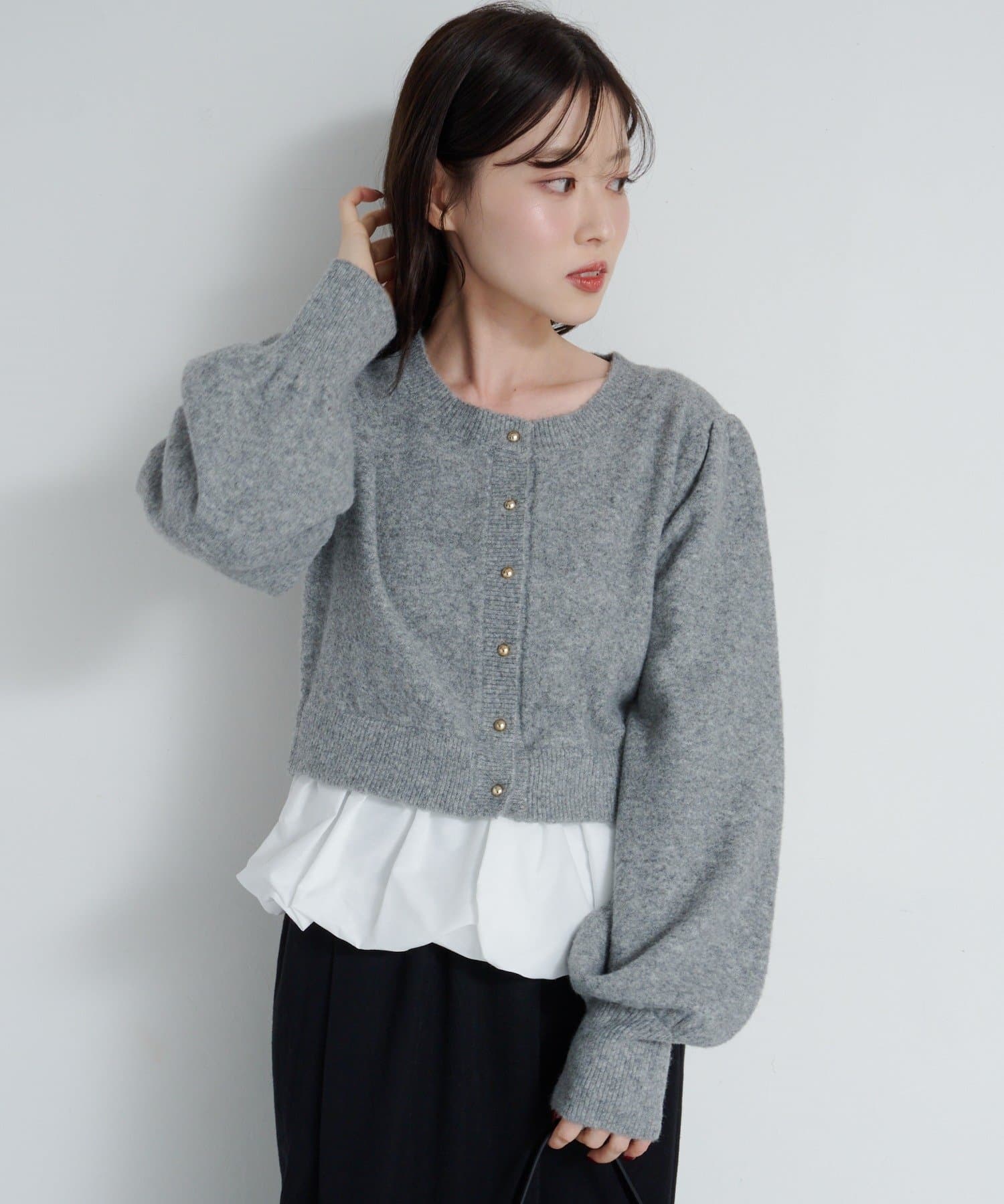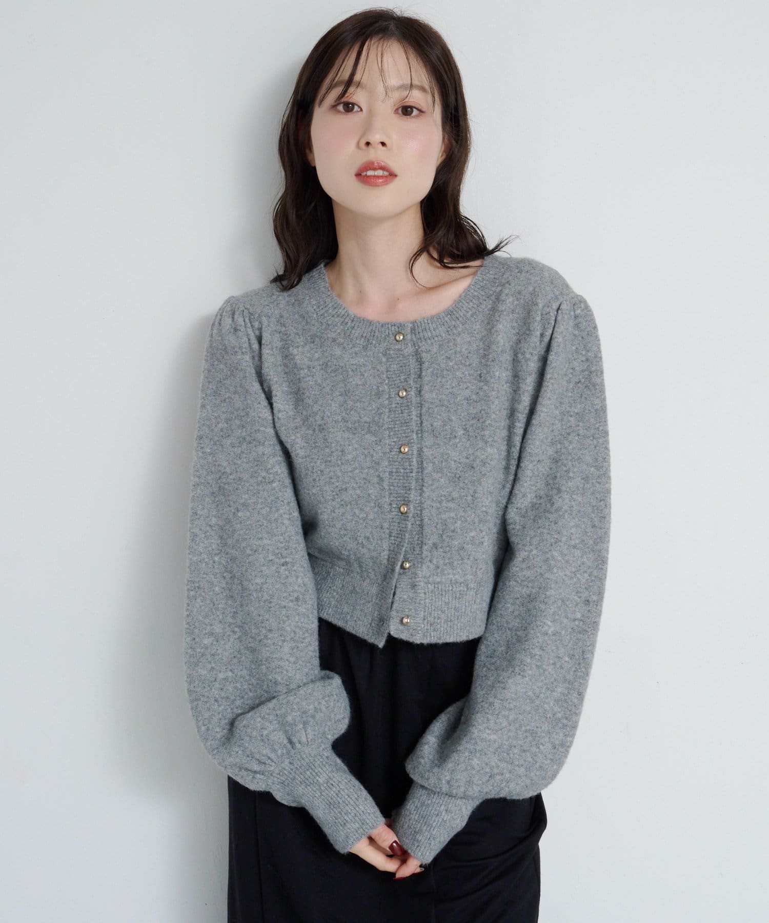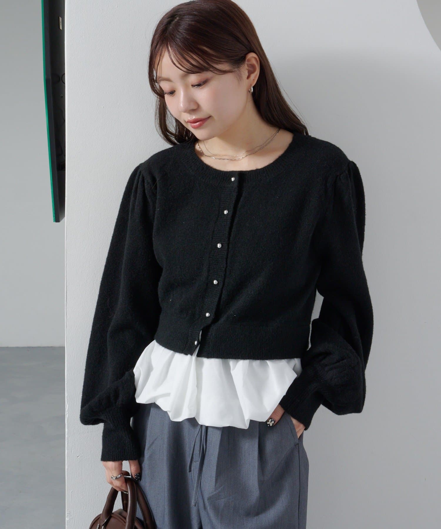 裾のバルーンデザインが目を惹くニットカーディガン。