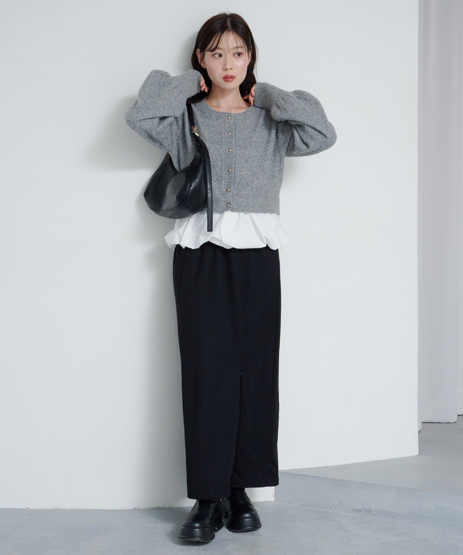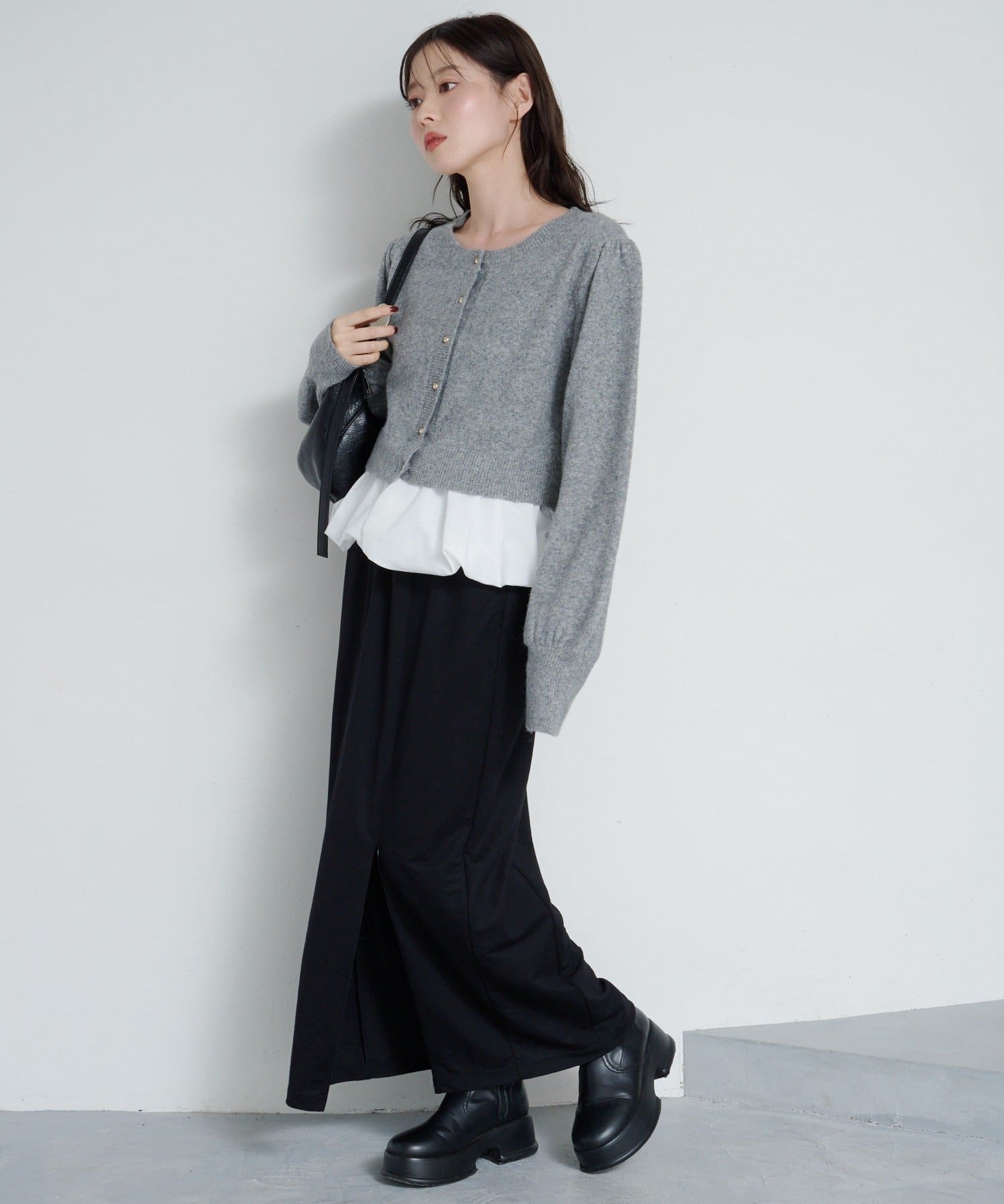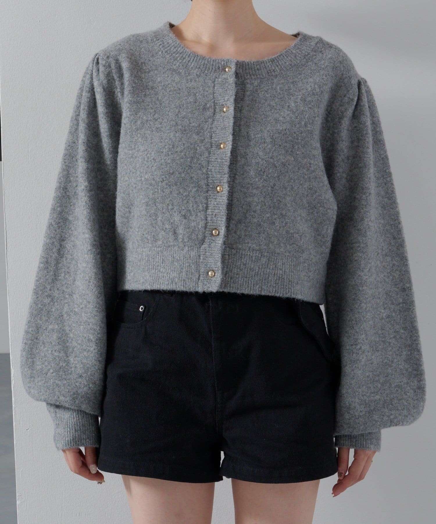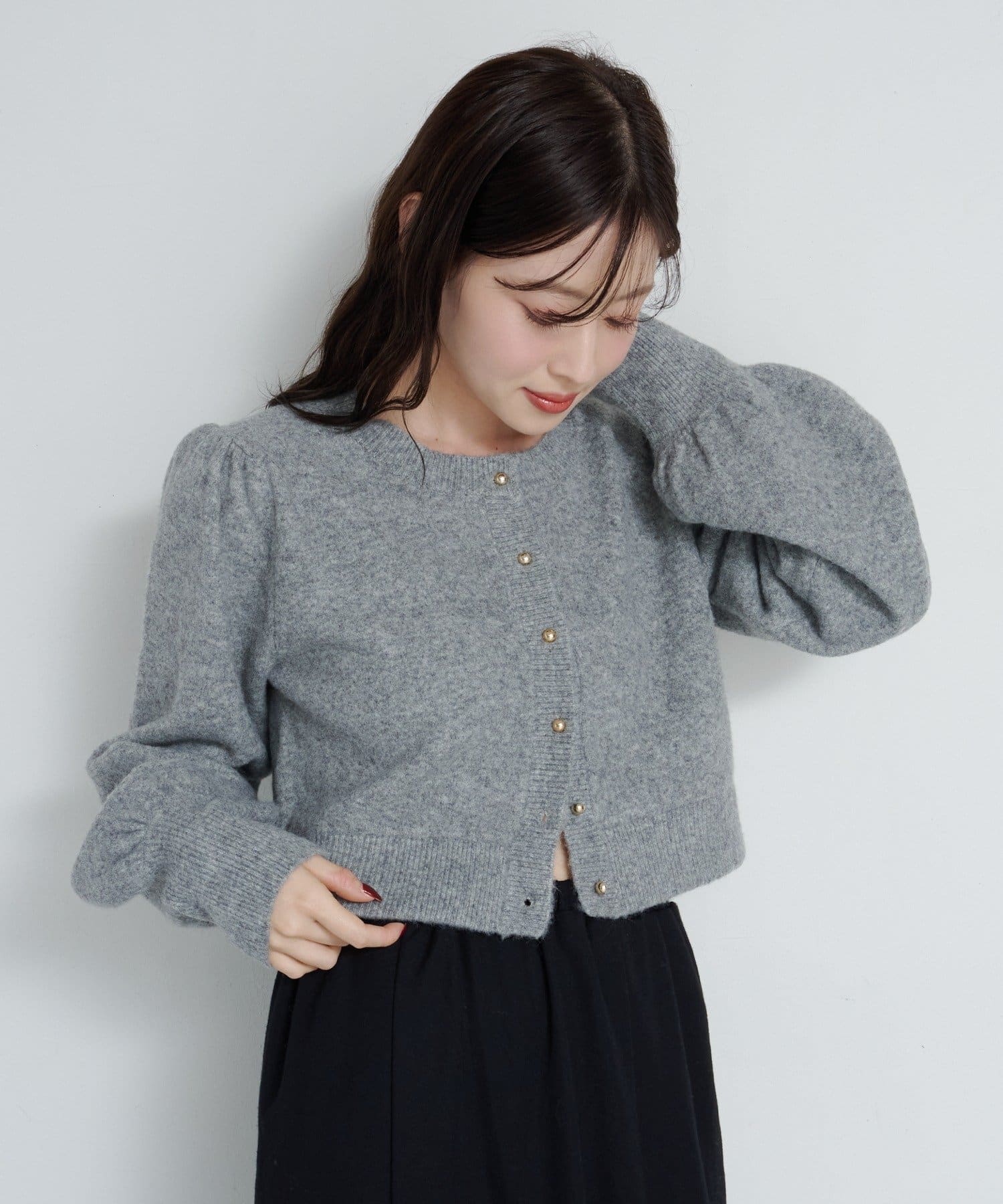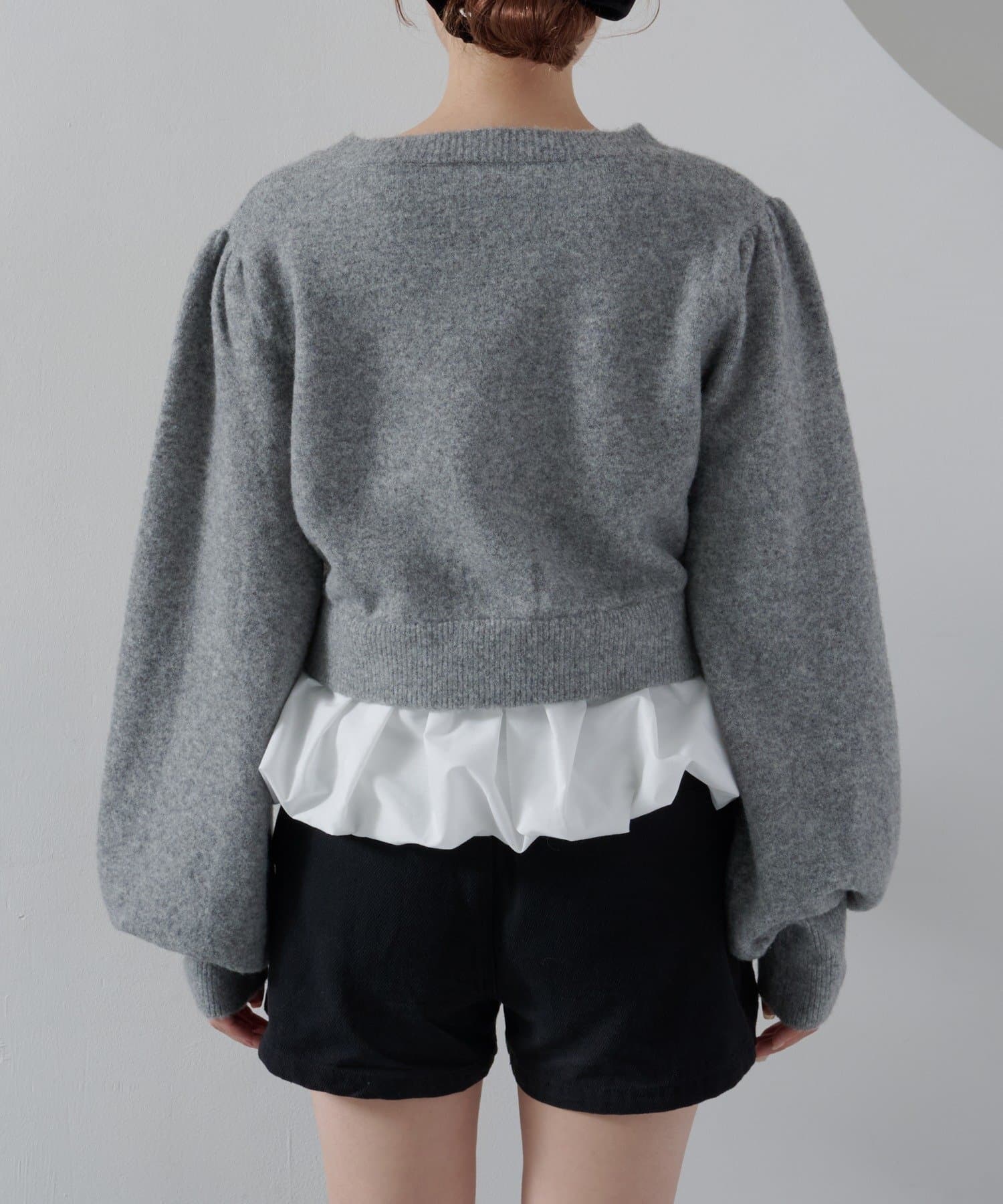 裾のバルーンデザインが目を惹くニットカーディガン。
