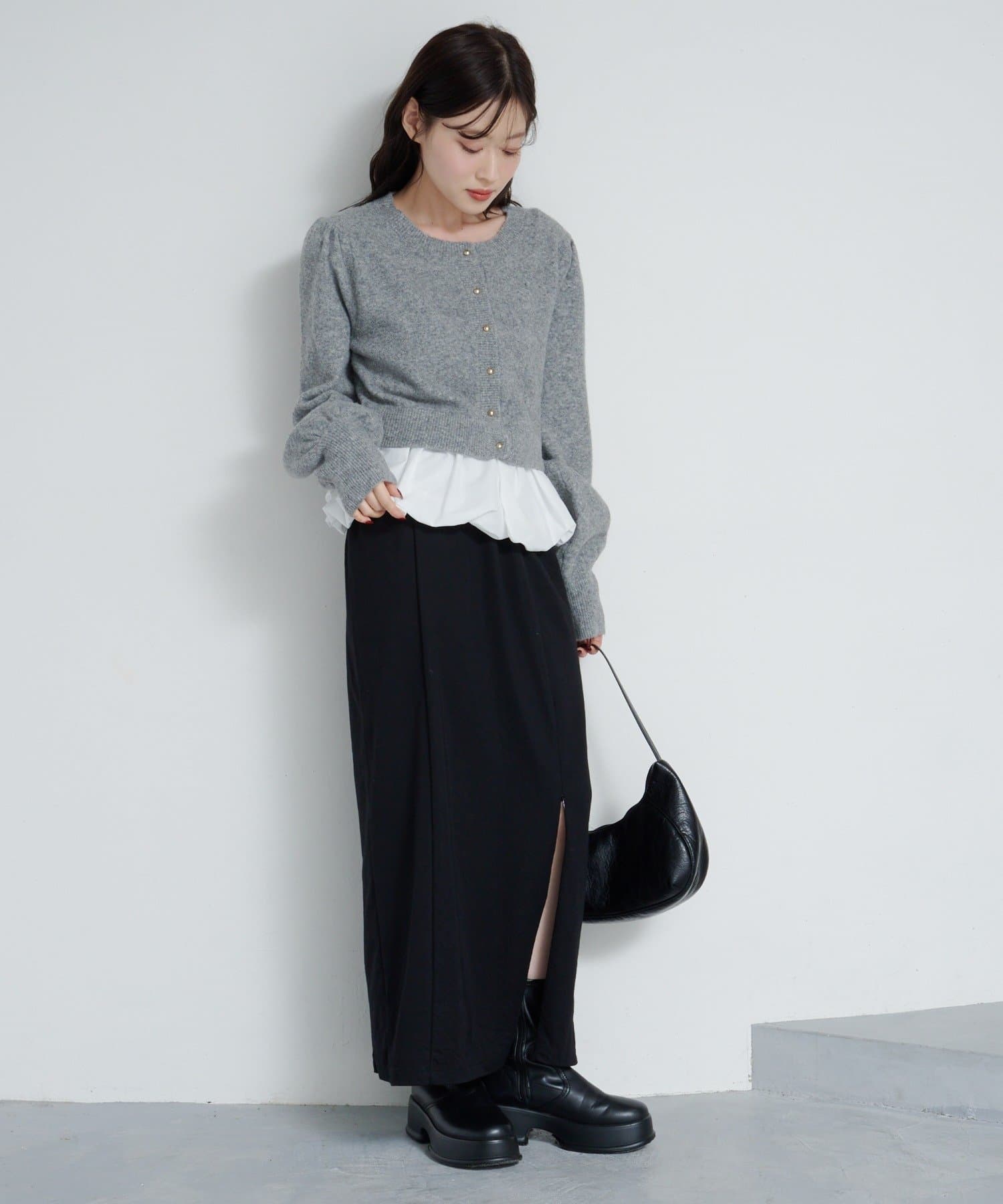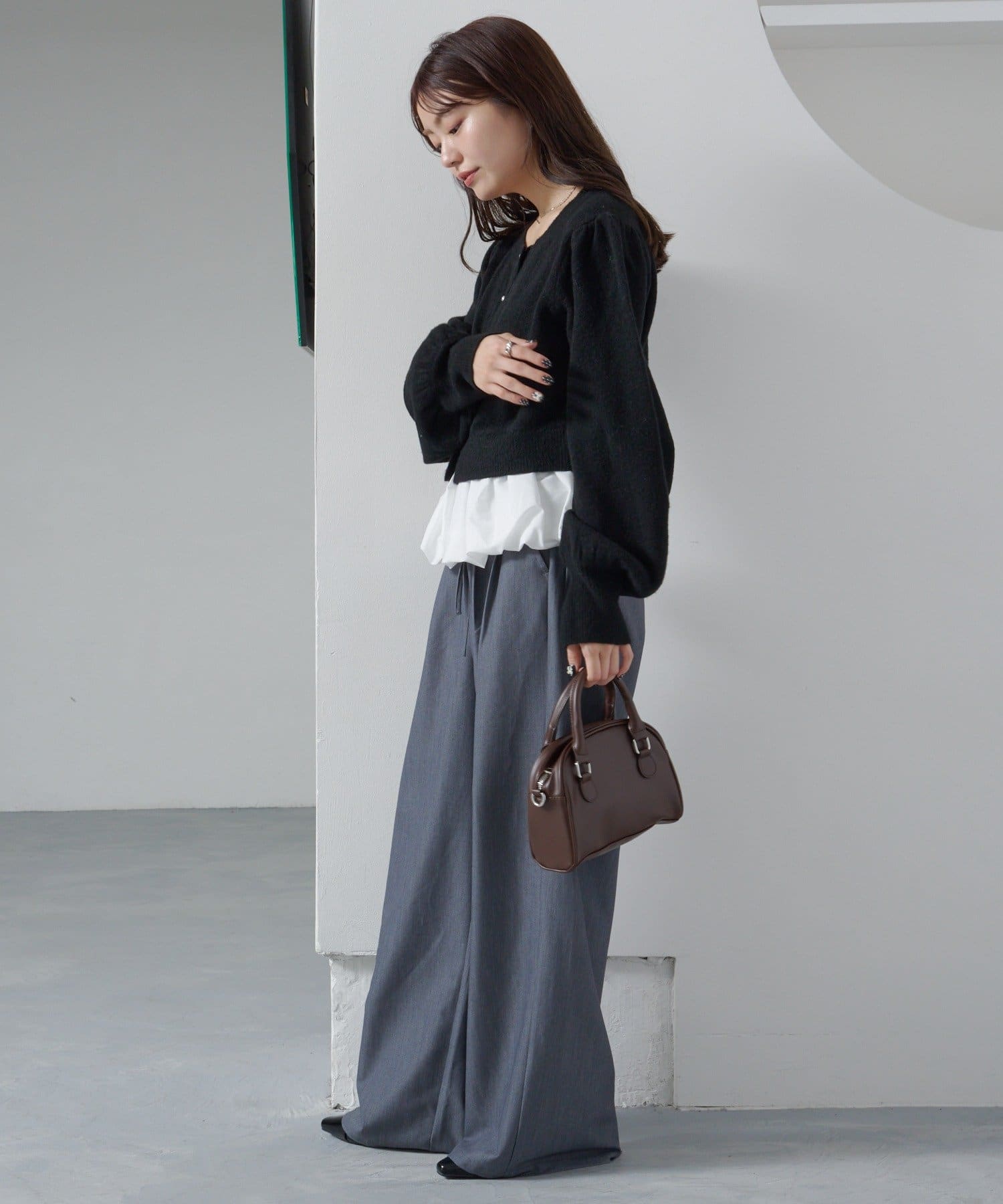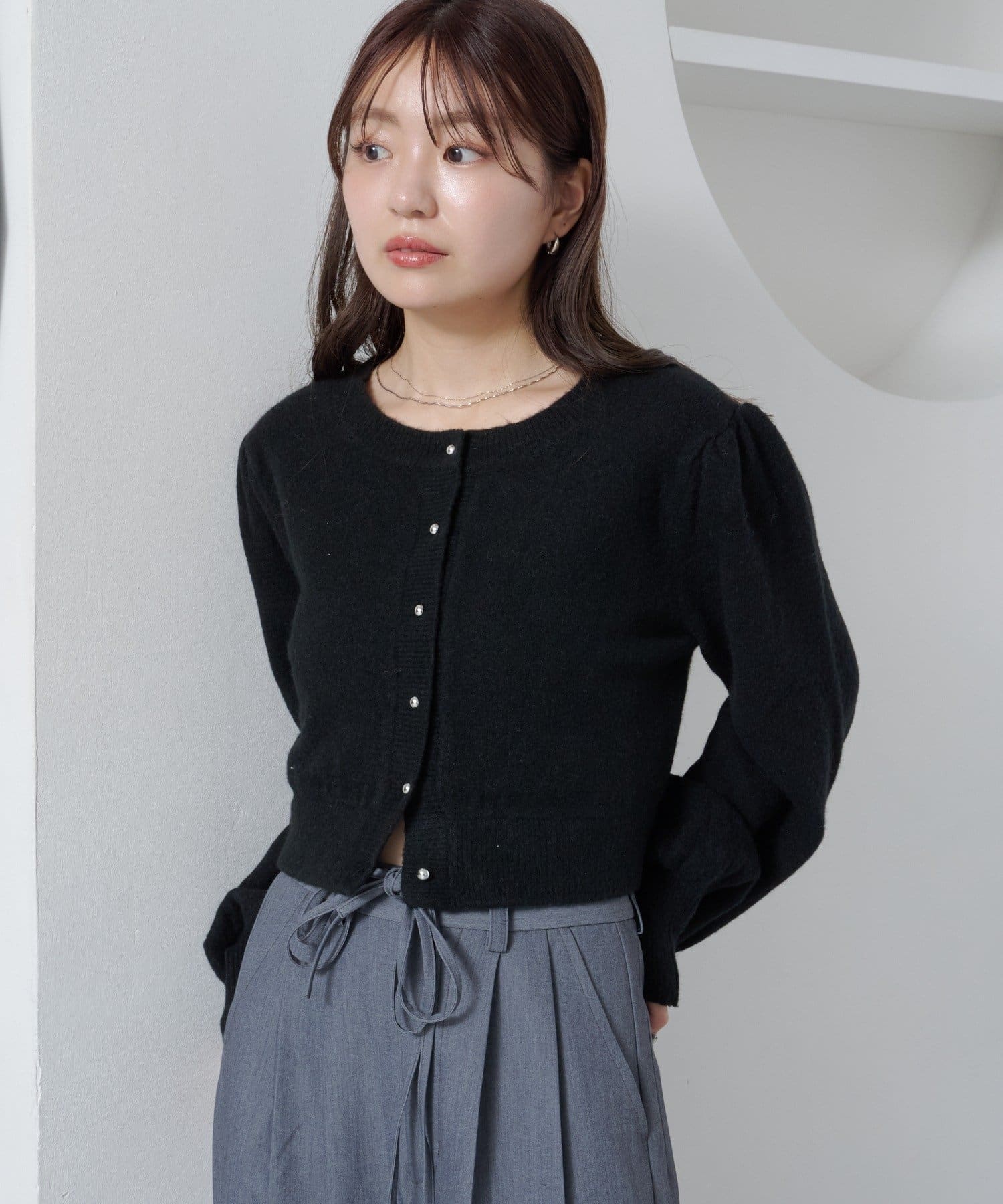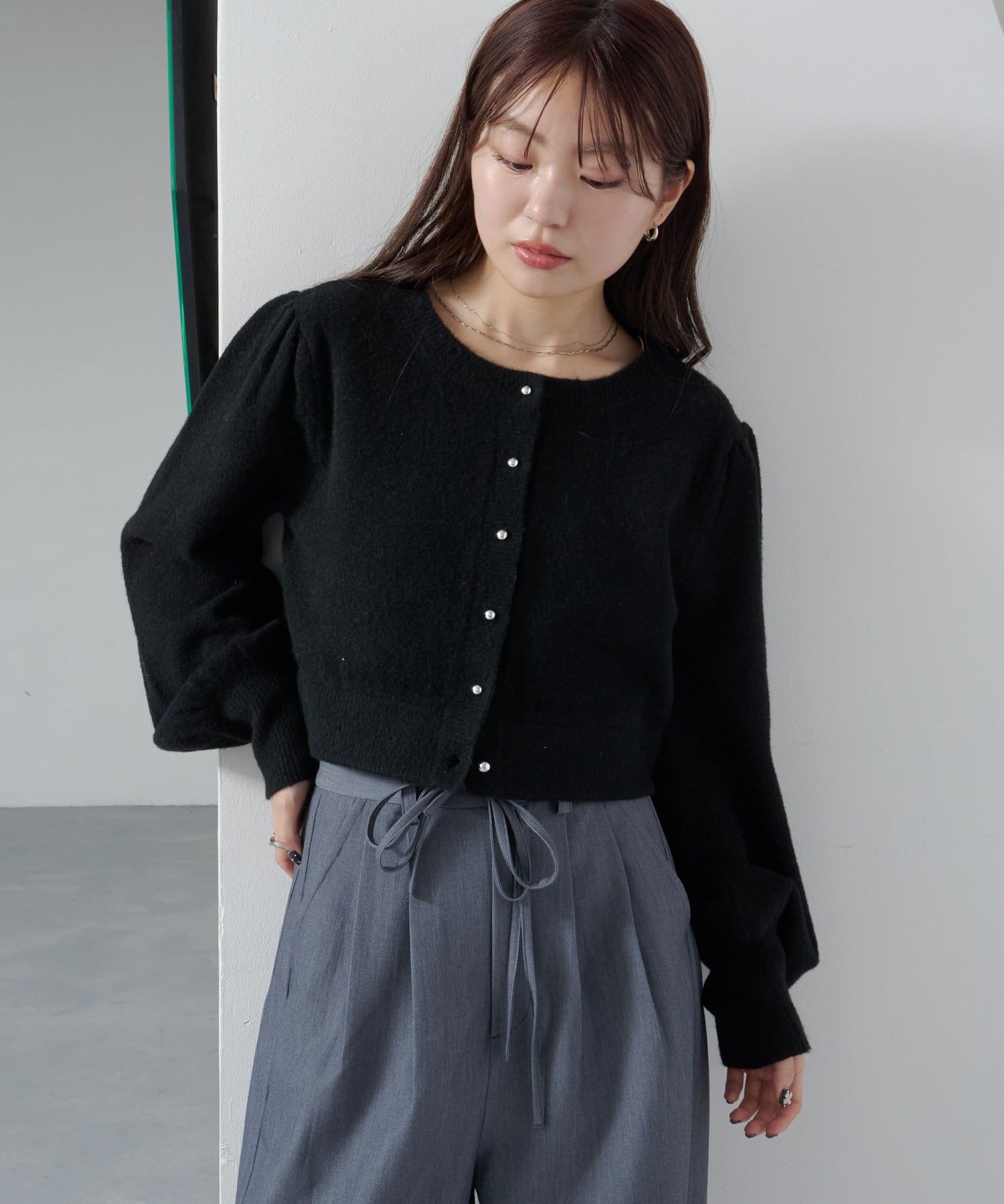 裾のバルーンデザインが目を惹くニットカーディガン。