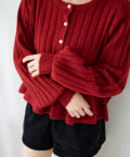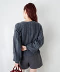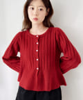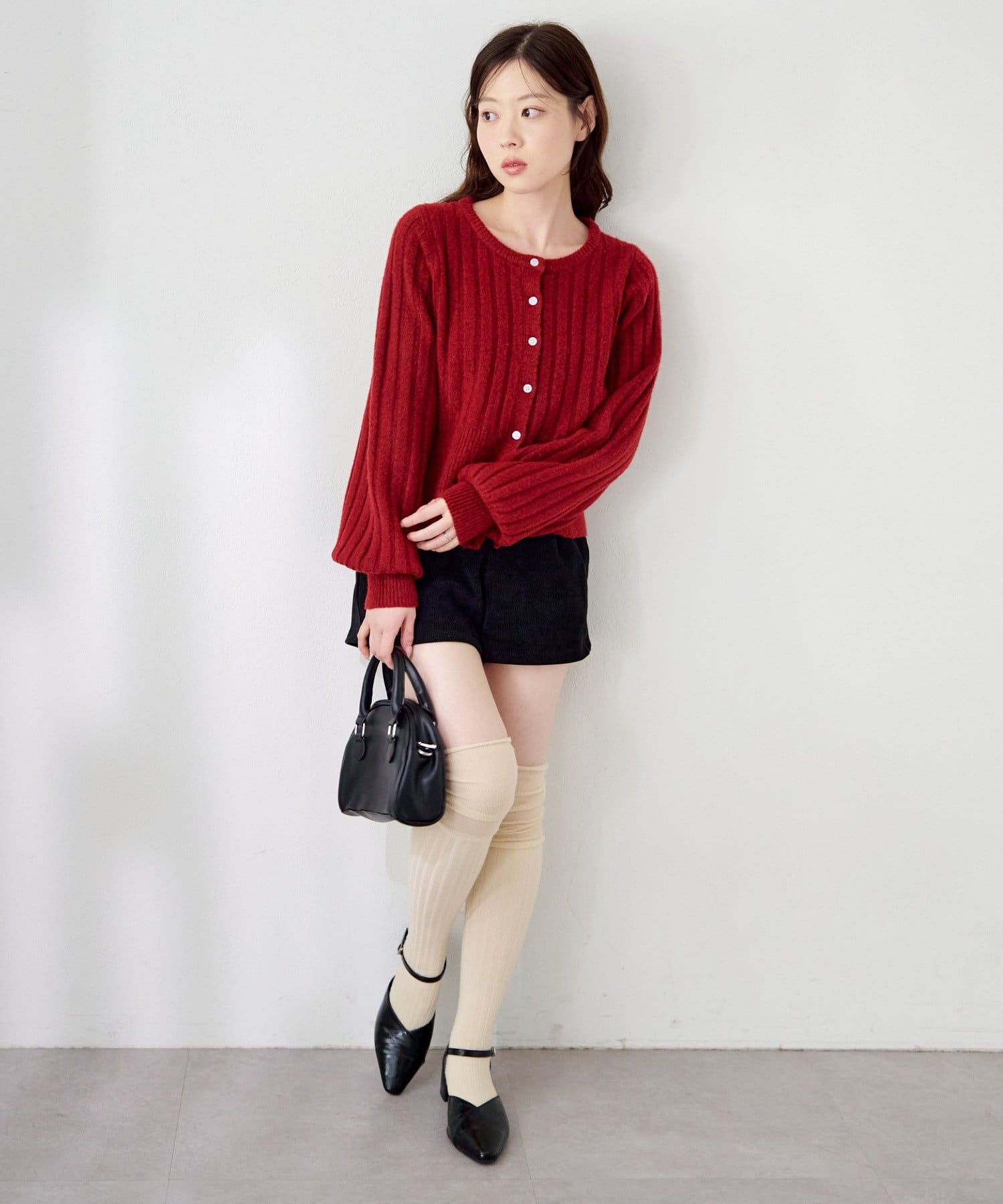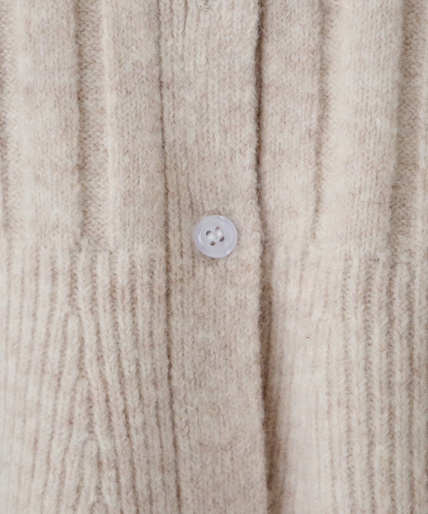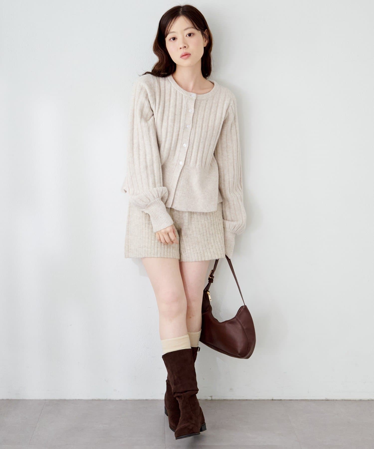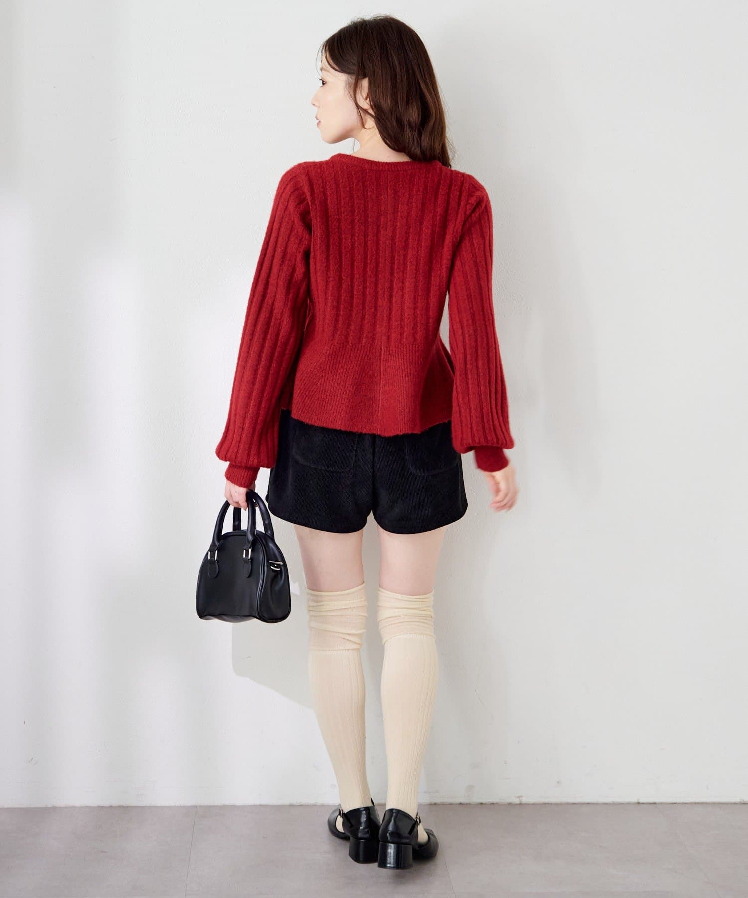 ウエスト部分にふんわり広がるペプラムシルエットが女性らしい印象を演出するリブニットカーディガン。