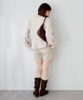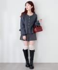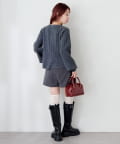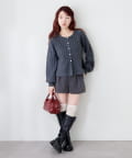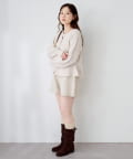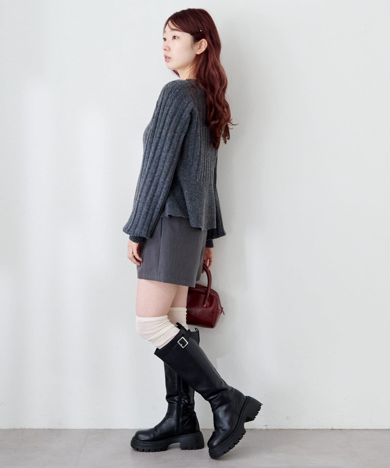 タイトスカート+ショートブーツでリブの縦ラインでスタイルアップ効果も◎。