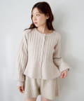立体的な袖のボリュームがほどよい抜け感をプラスし、シンプルながら華やかさのある一枚に仕上がっています。