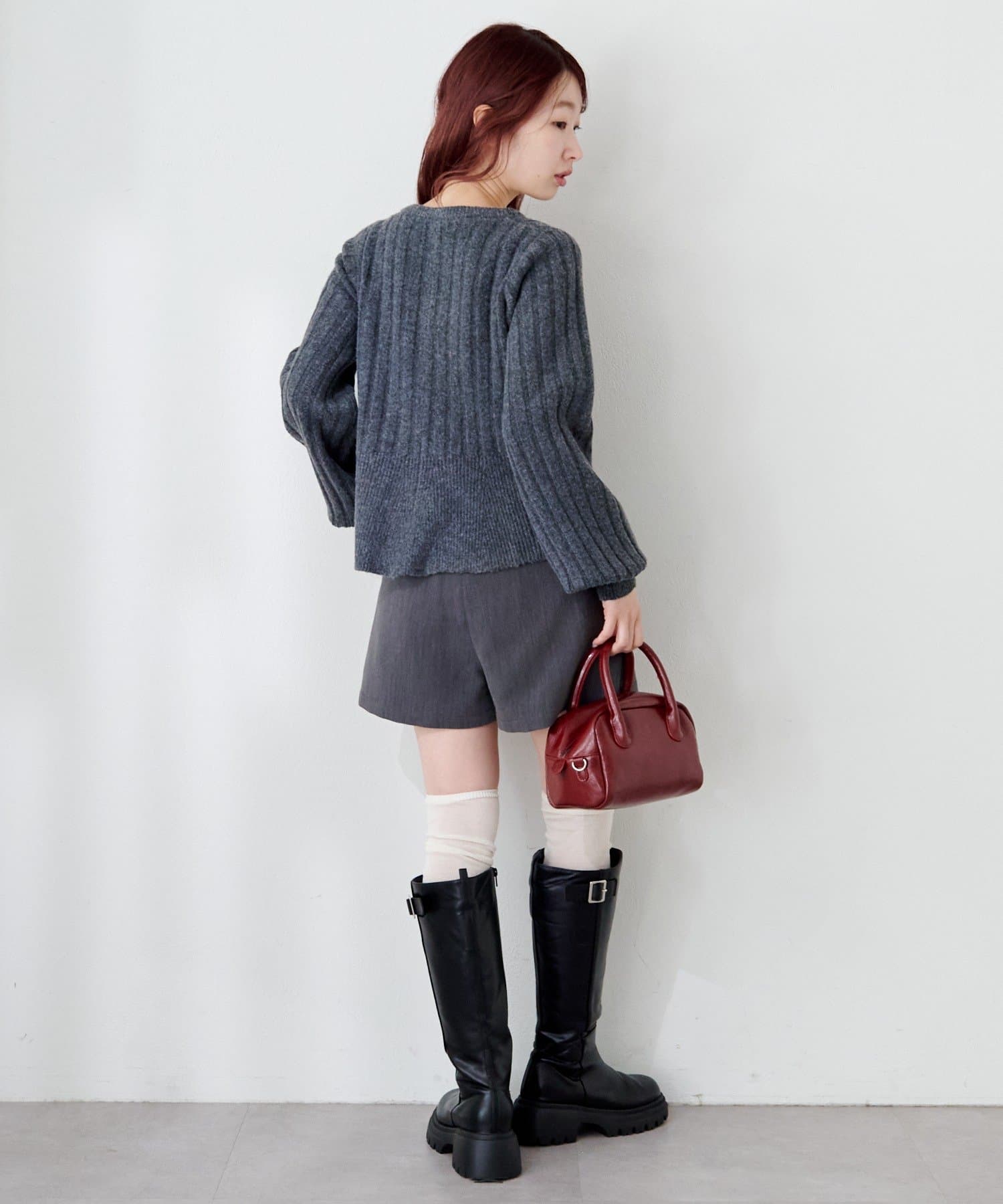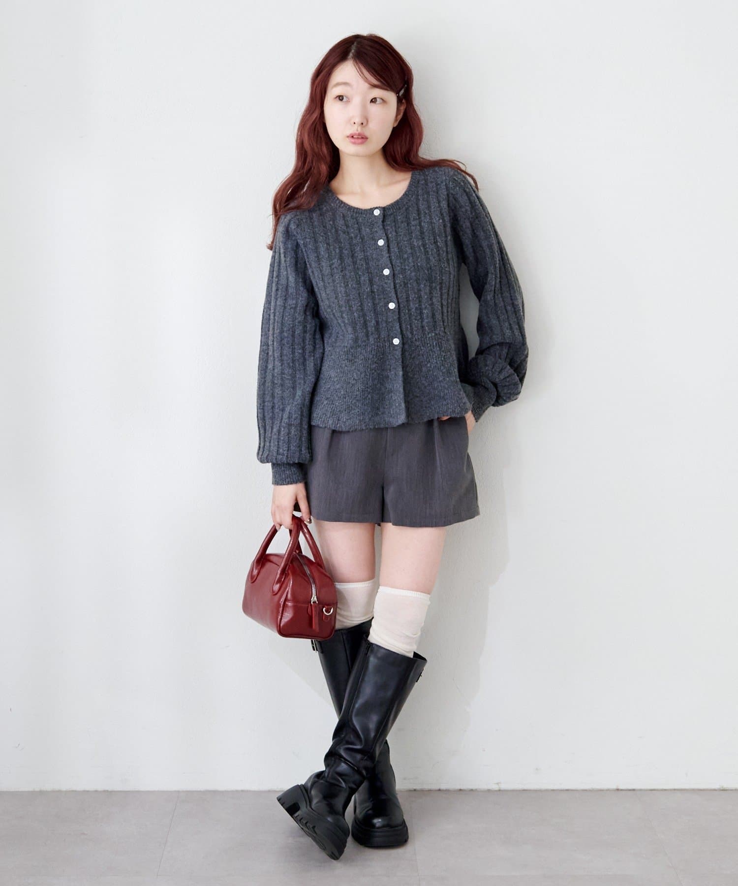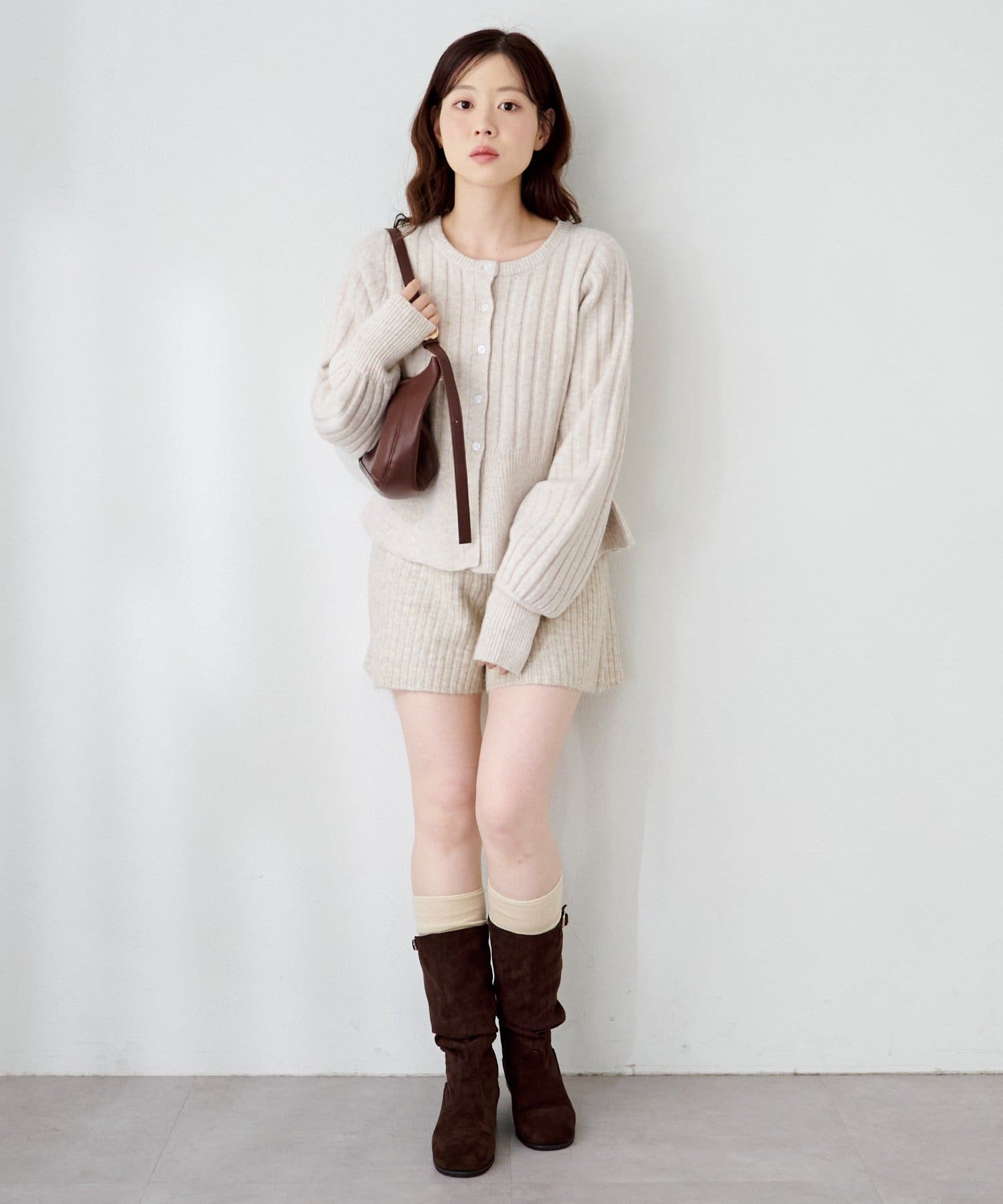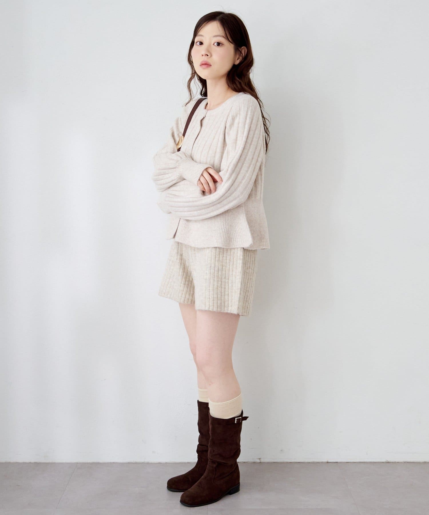 ふんわりペプラムで女性らしさを引き立てる、華やか見えリブニットカーデ