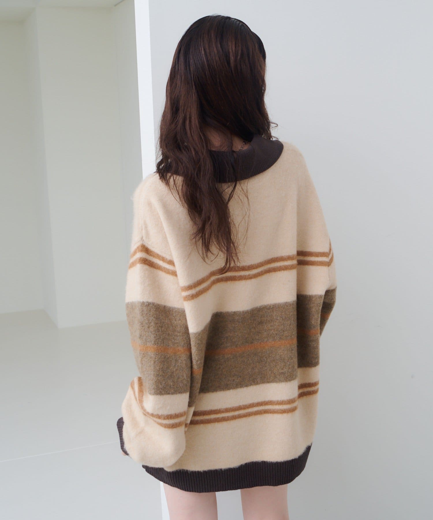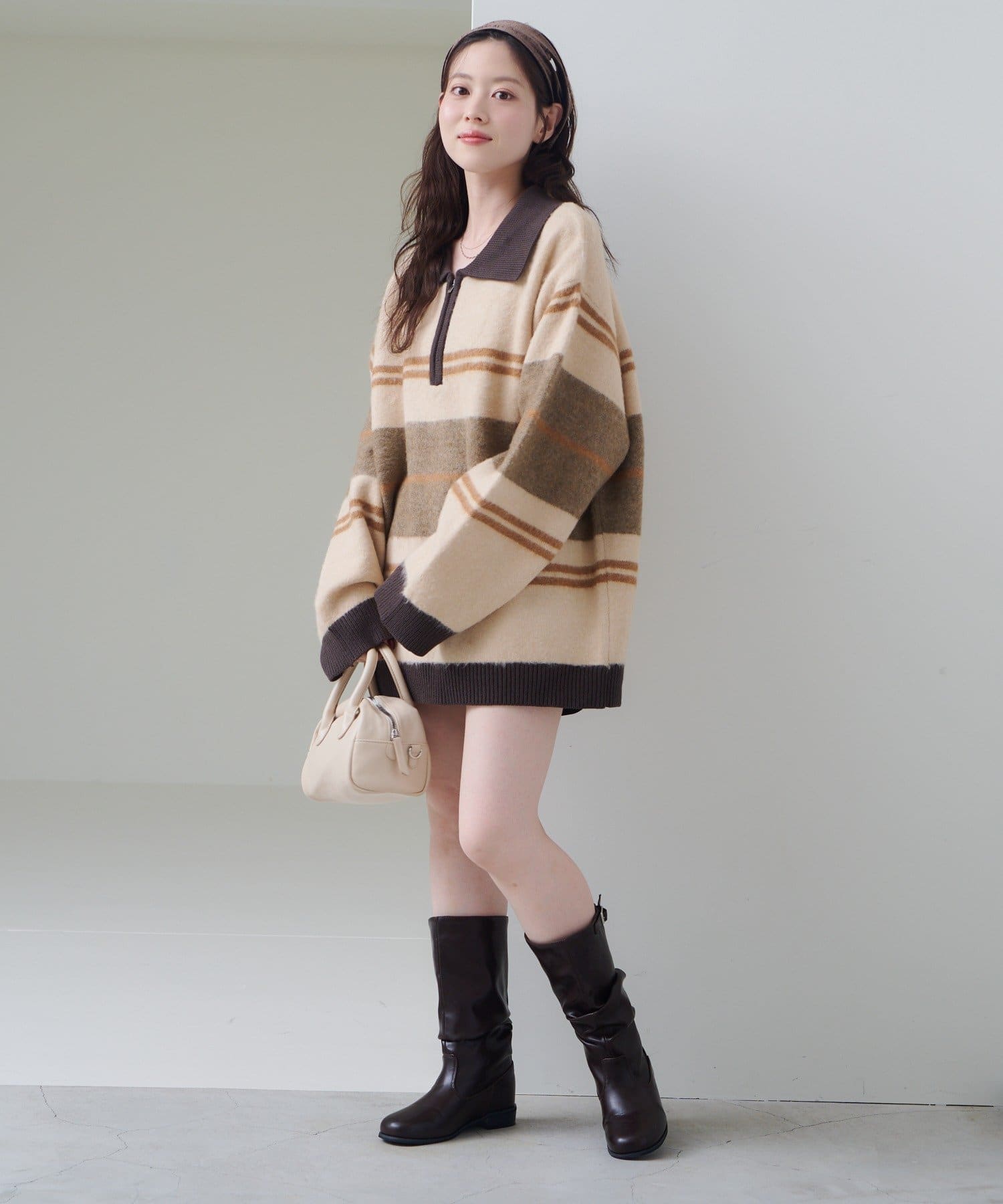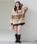 ゆるっとした抜け感が可愛いボーダージップニット。