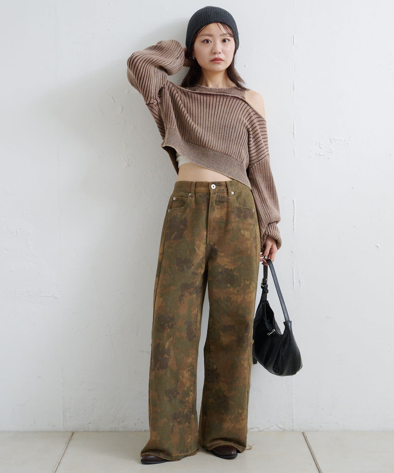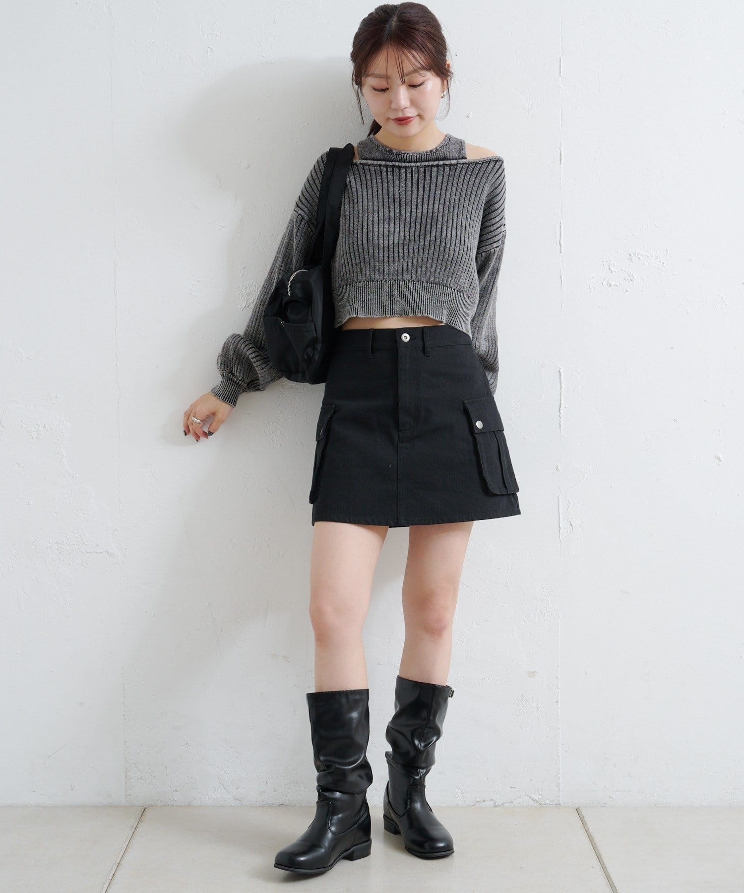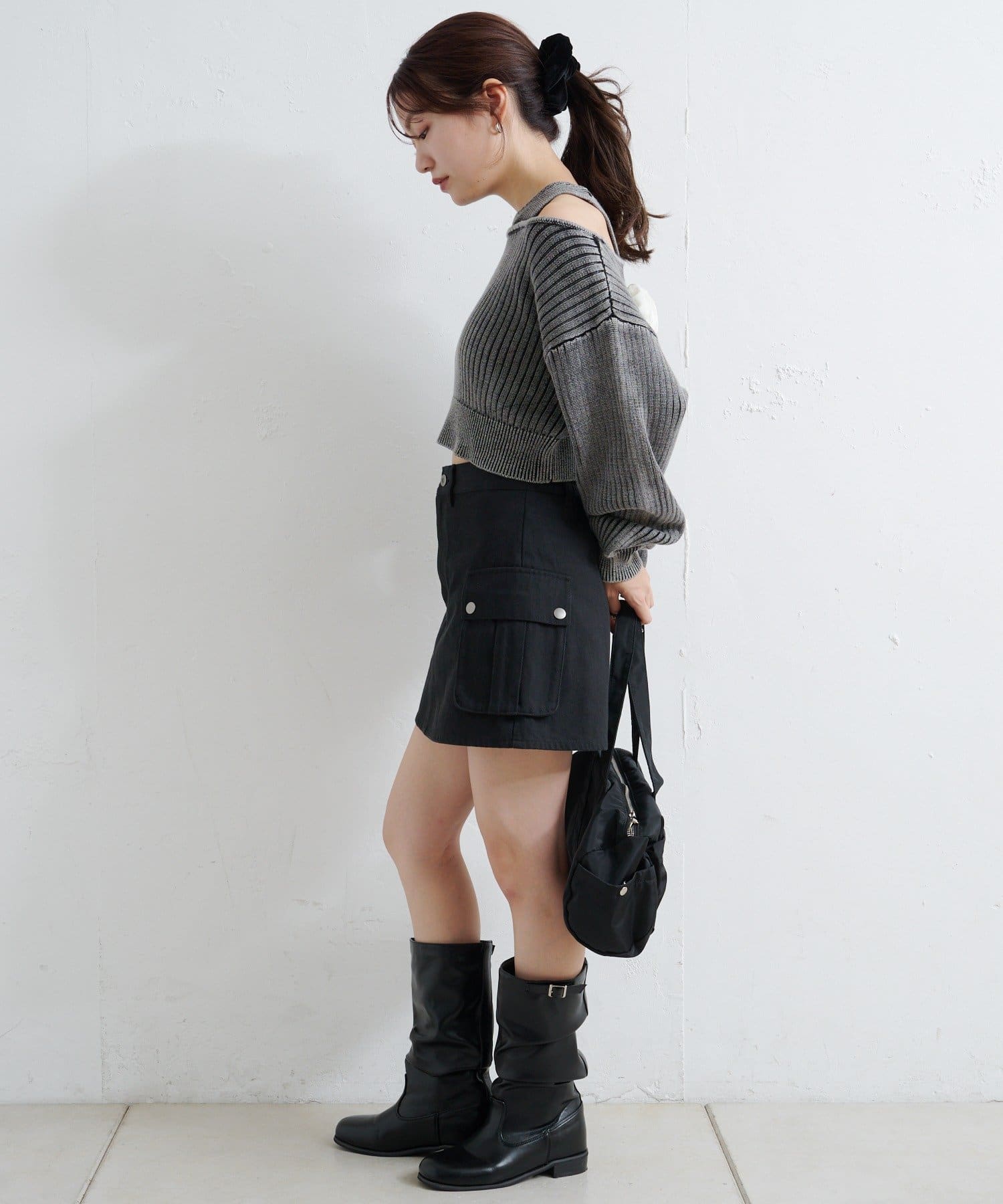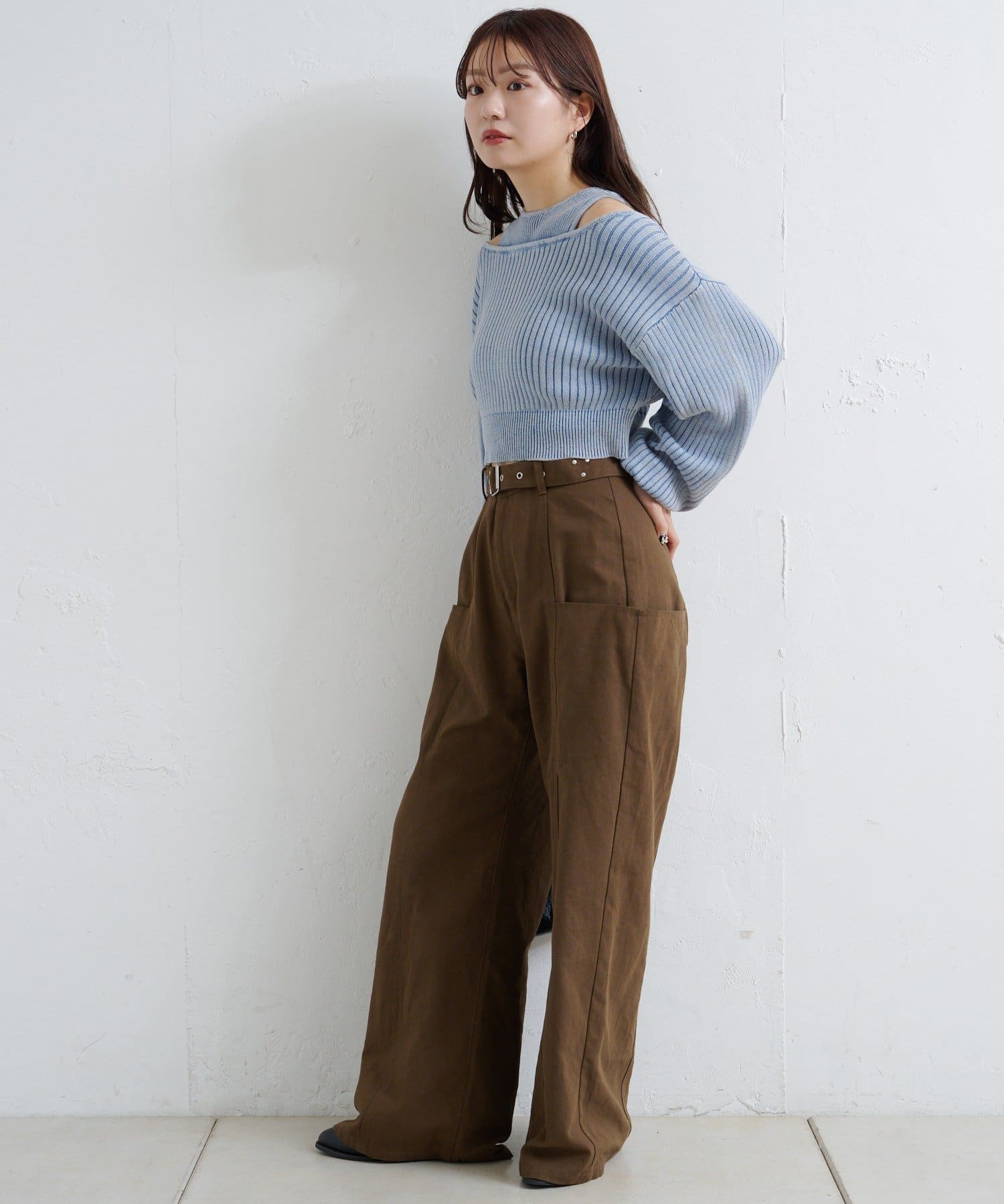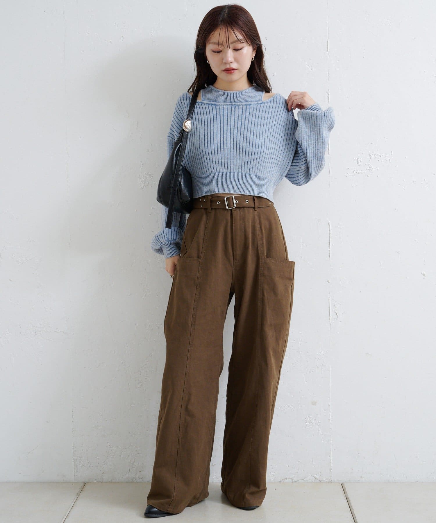 ハイウエストボトムと合わせるとスタイルアップ効果も抜群。