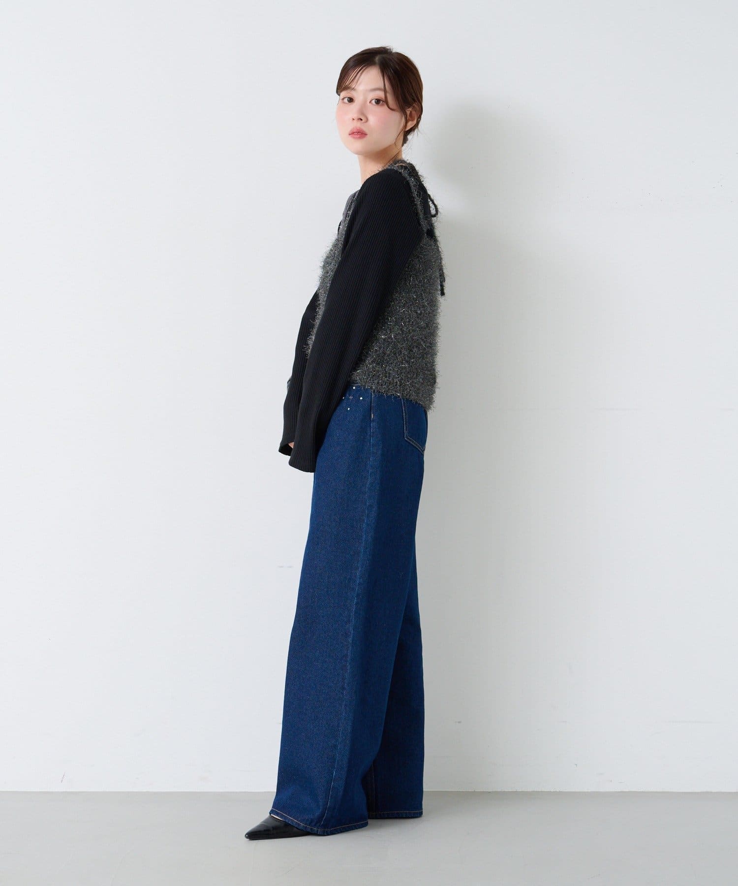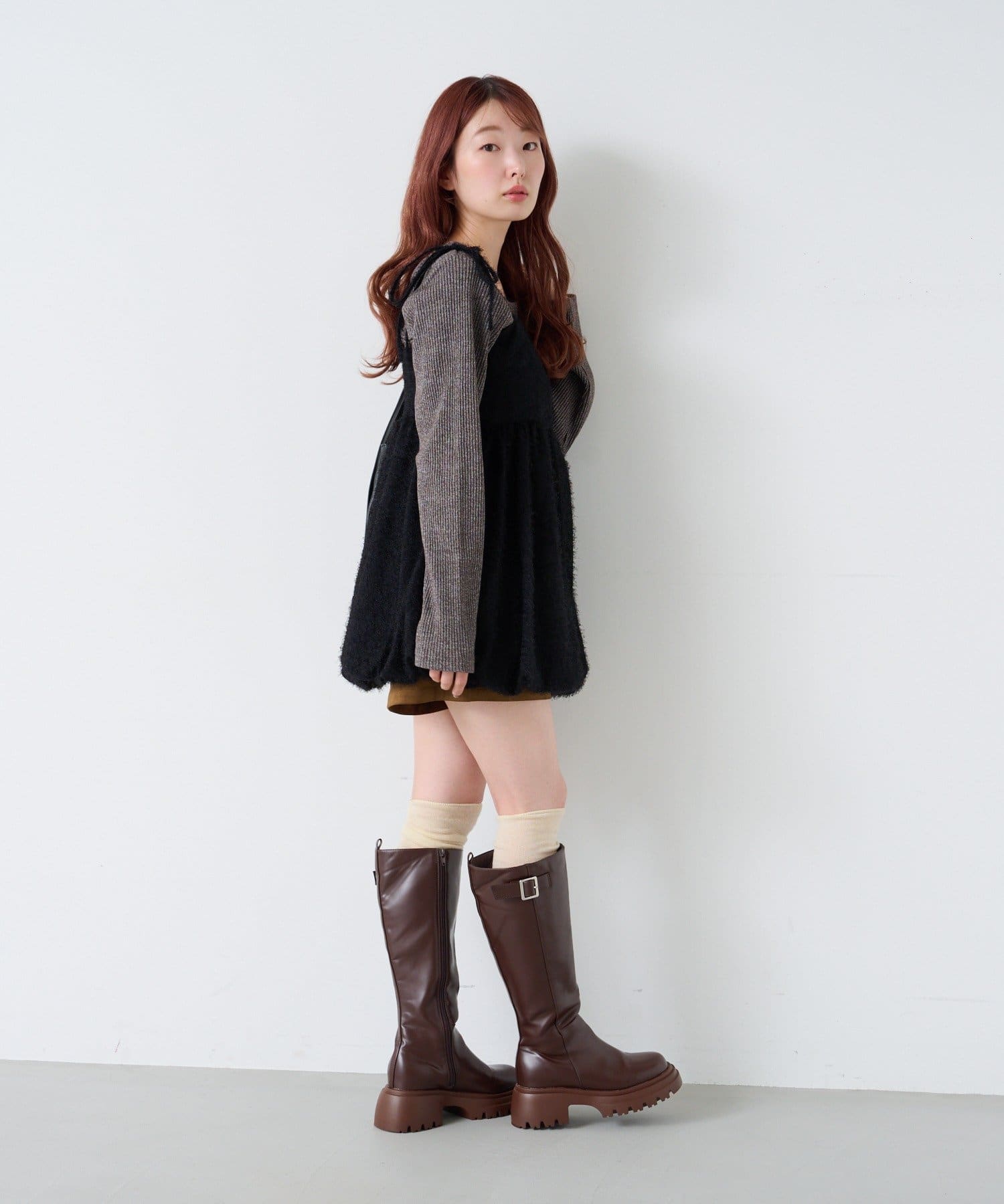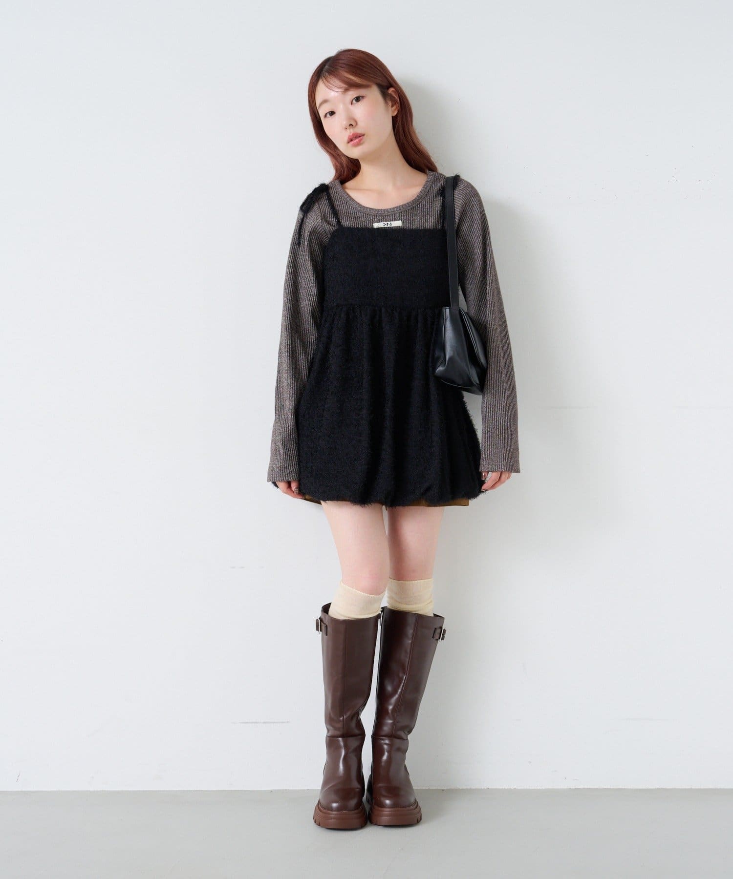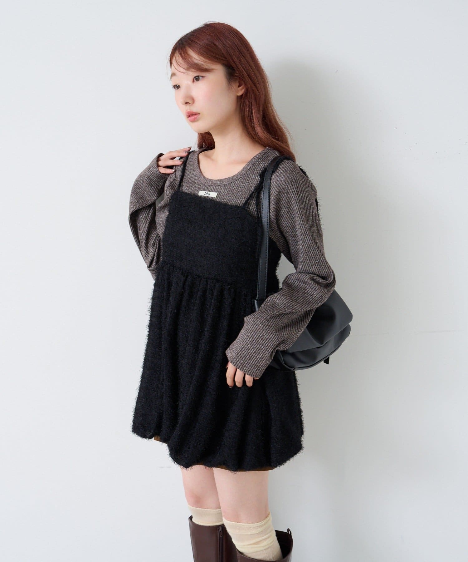 伸縮性のあるリブ素材で、快適な着心地と女性らしいシルエットを演出します。