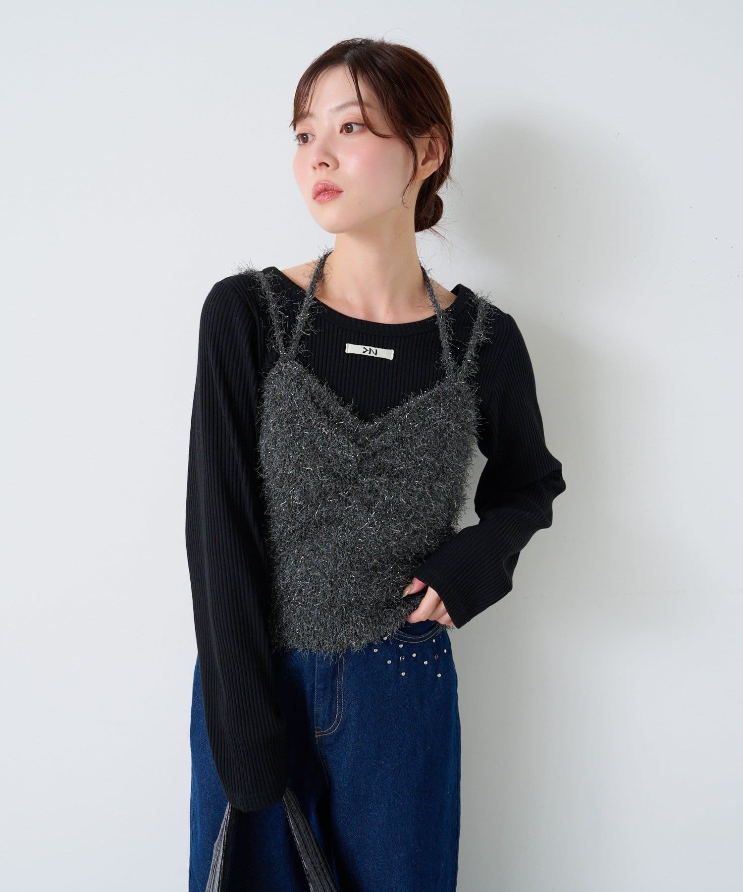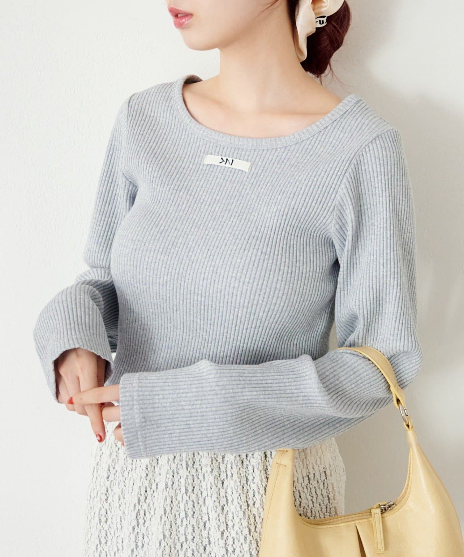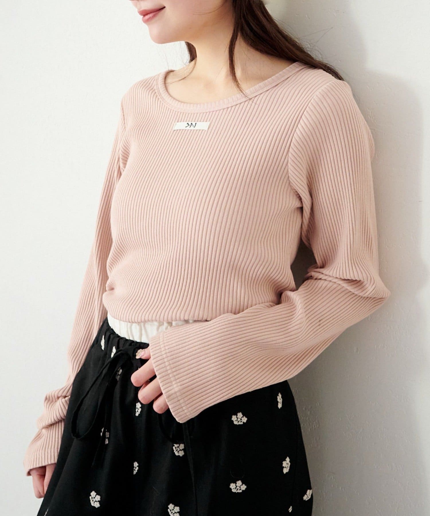 伸縮性のあるリブ素材で、快適な着心地と女性らしいシルエットを演出します。