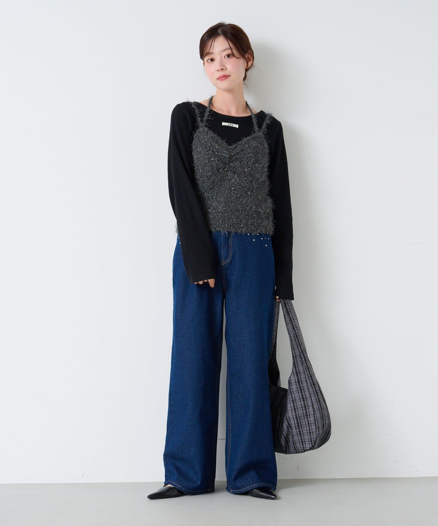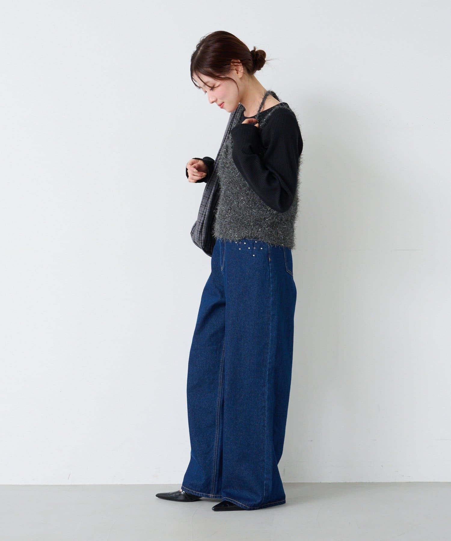 デニムやワイドパンツでカジュアルコーデ。
