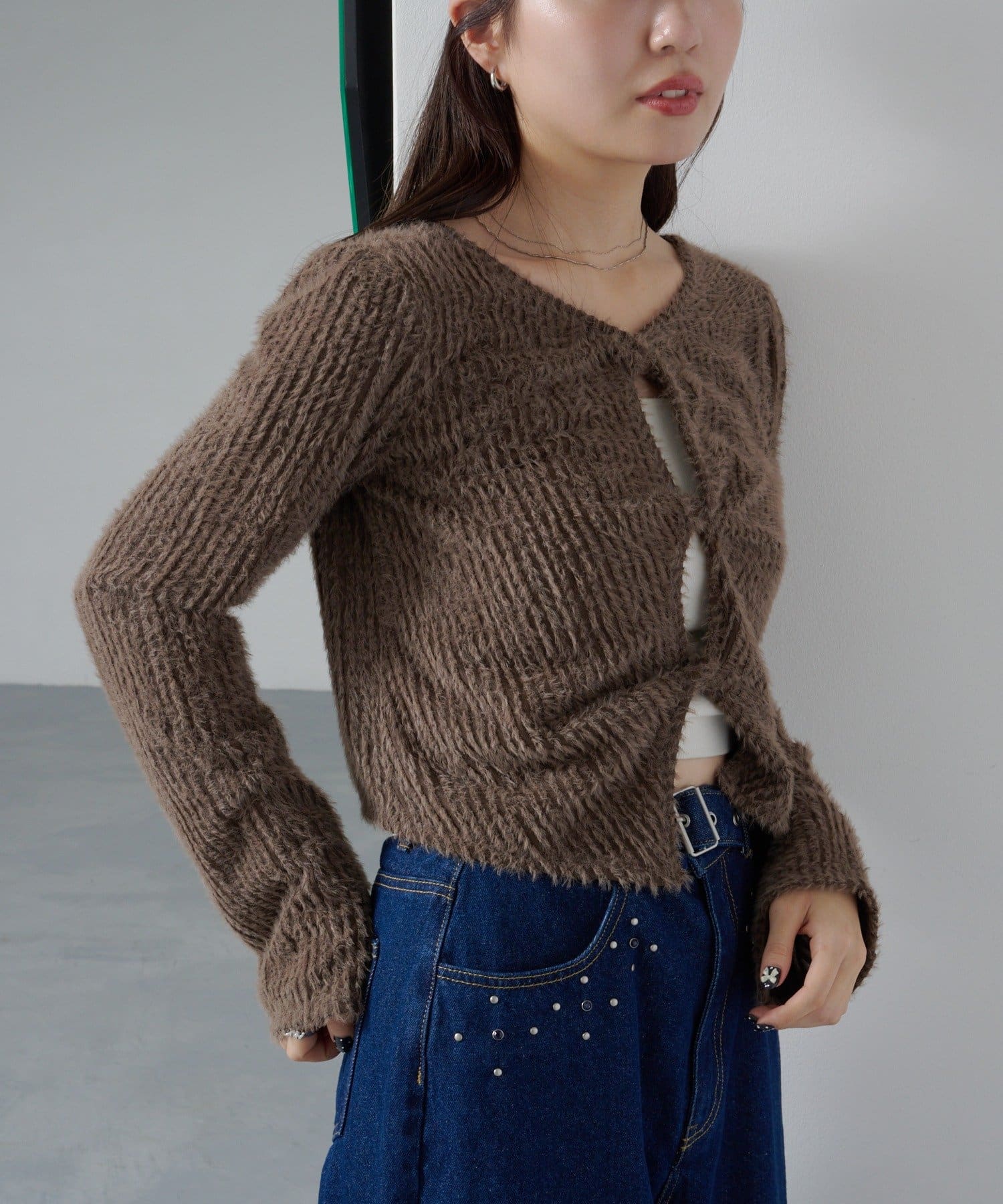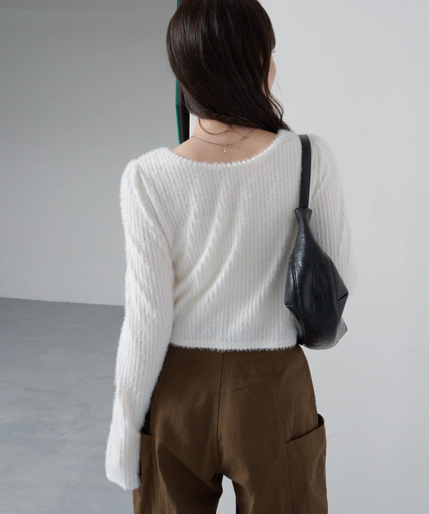 ふんわり感とねじりディテールで華やぐシャギープルオーバー