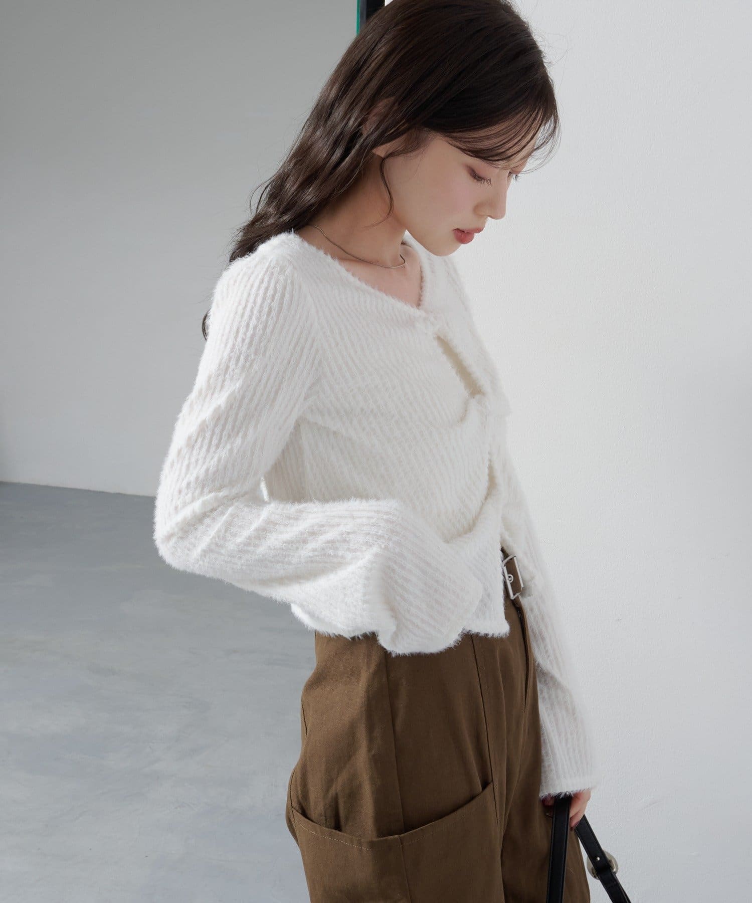 軽くて柔らかなシャギーニット素材。