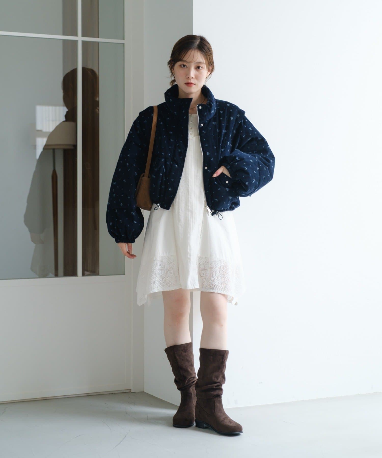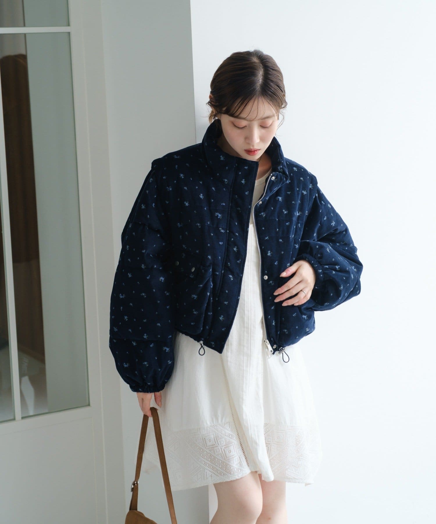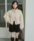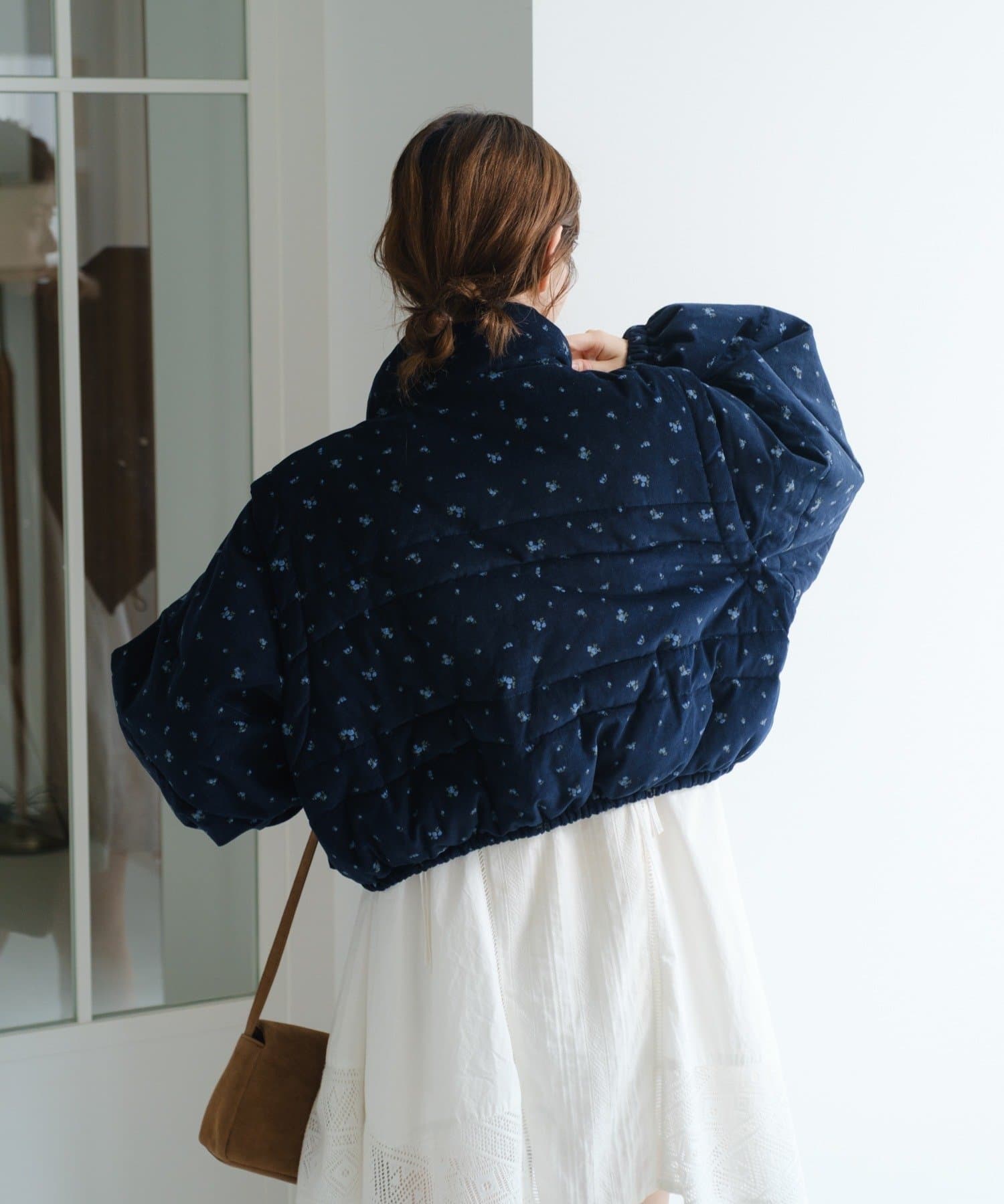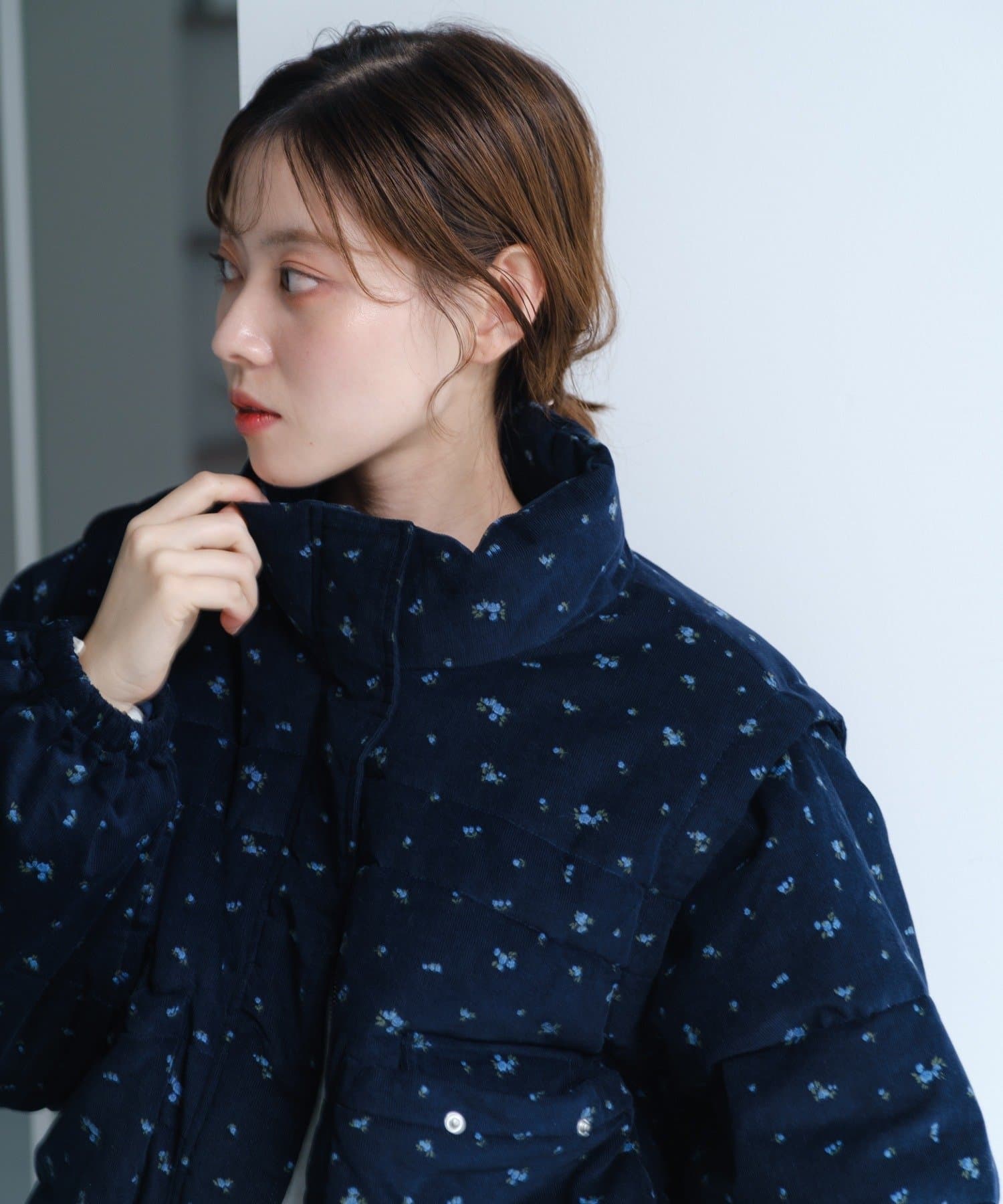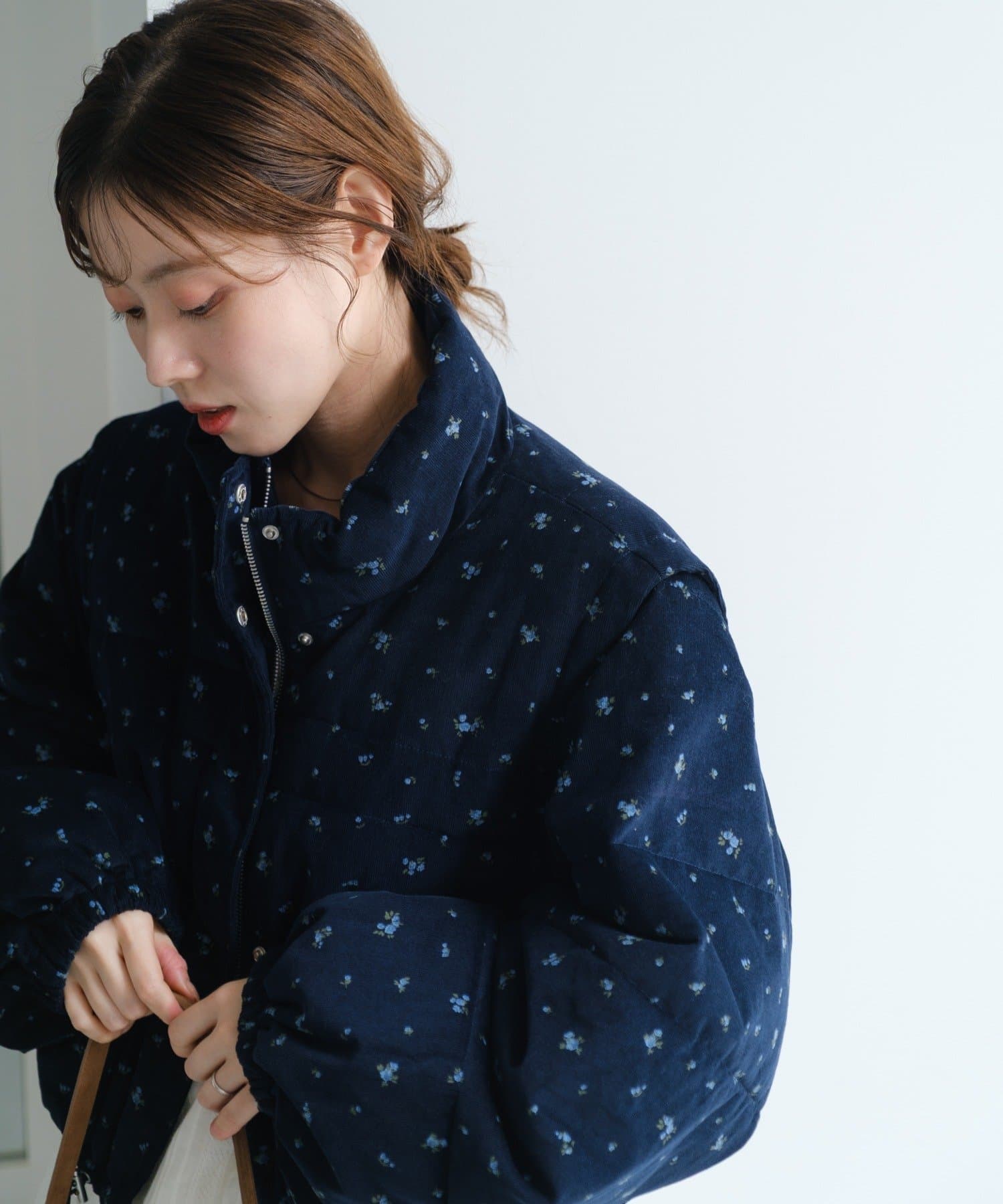 【WEB先行/袖取り外し可/無地&花柄】コーデュロイ中綿ショートジャケット