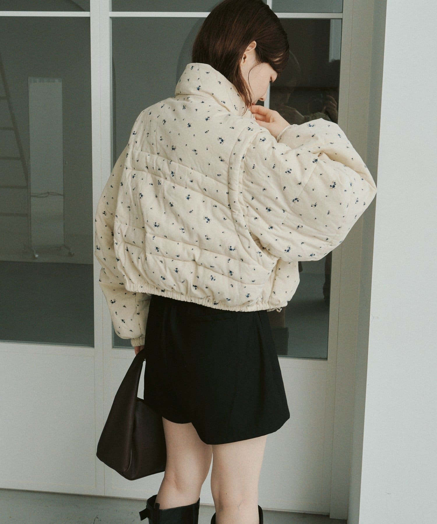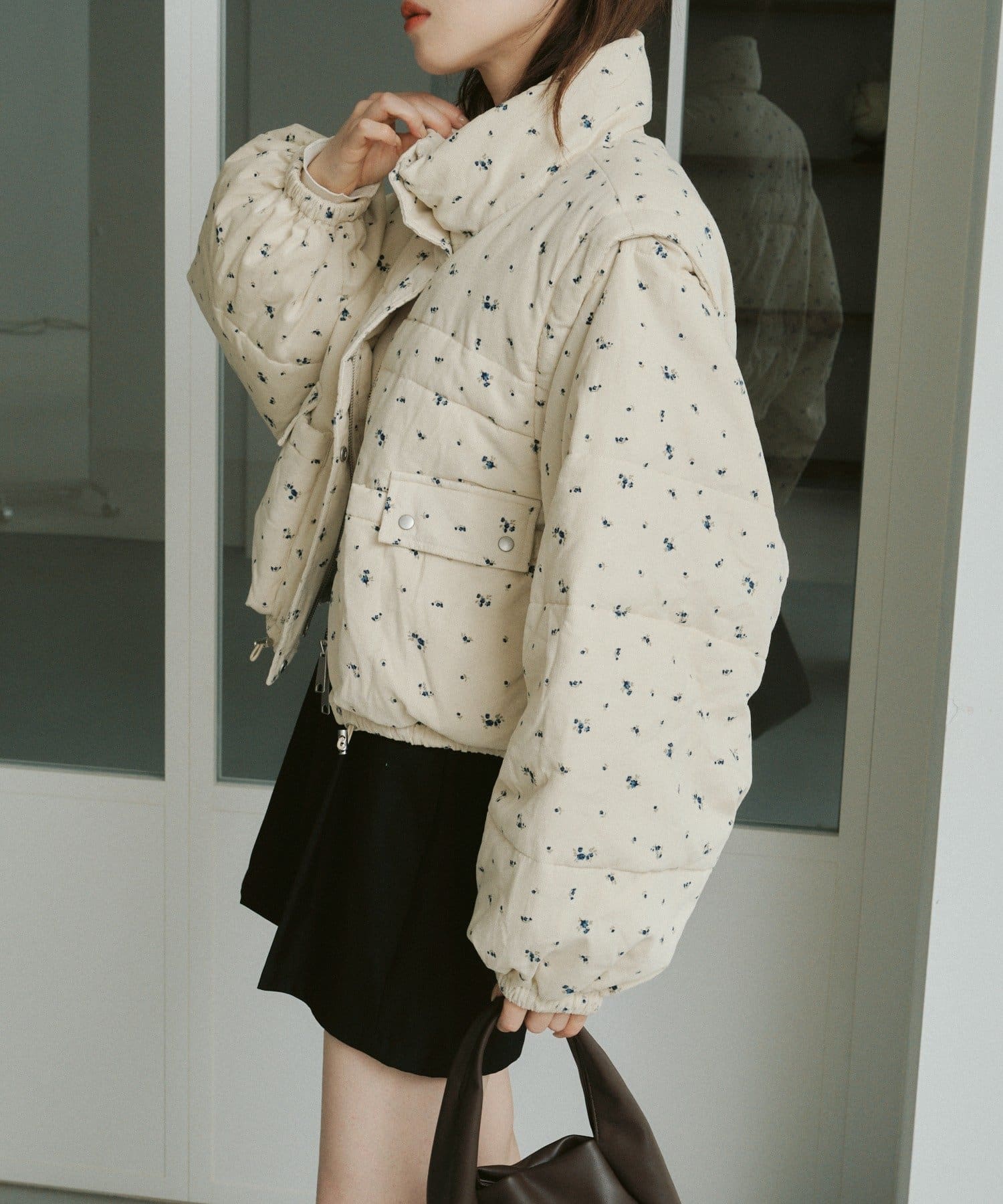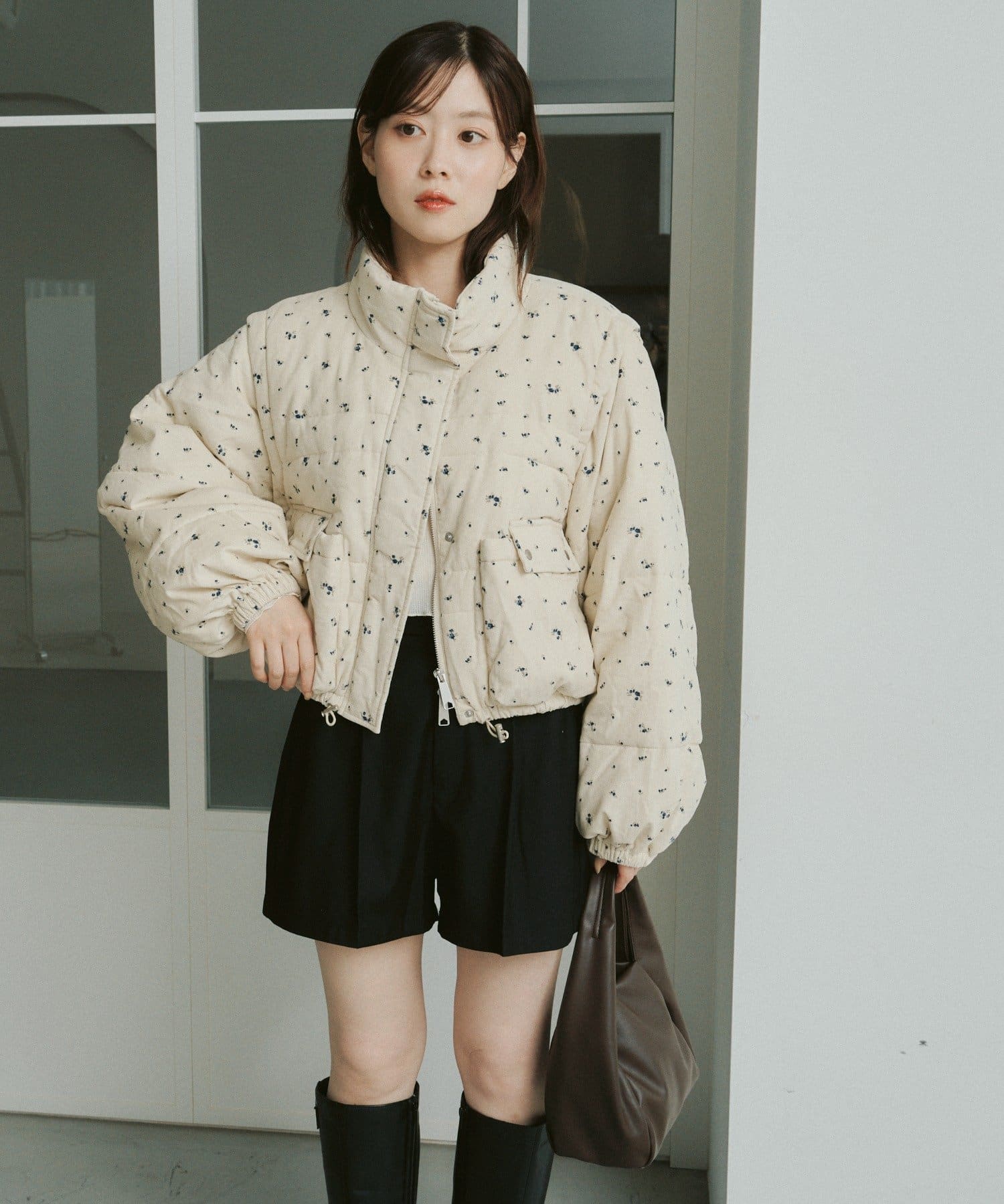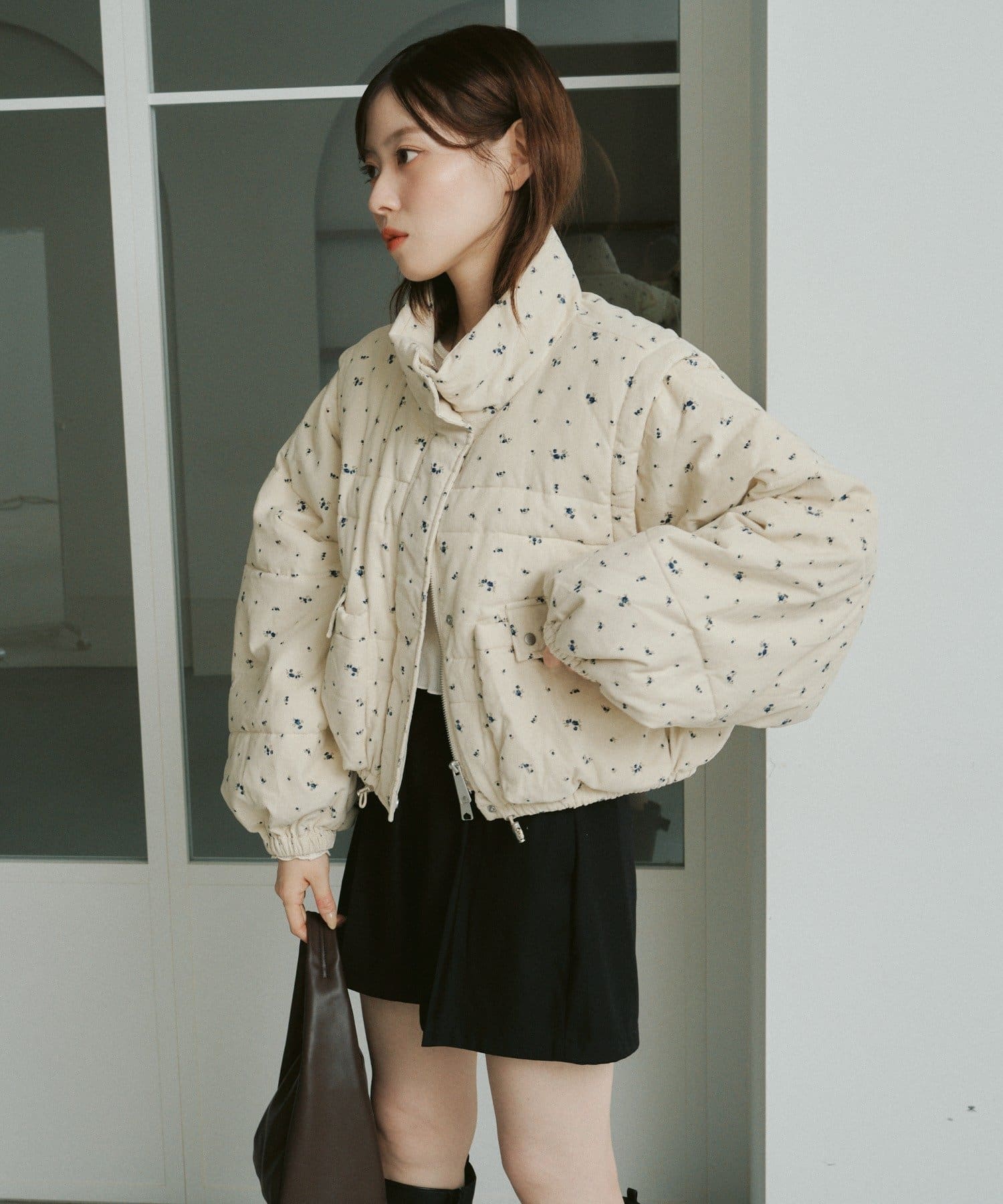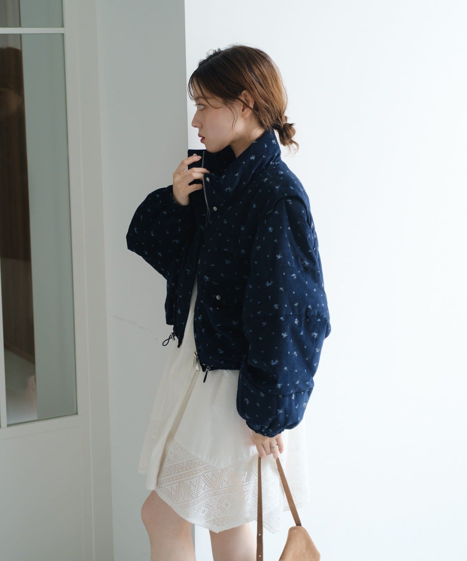 【WEB先行/袖取り外し可/無地&花柄】コーデュロイ中綿ショートジャケット