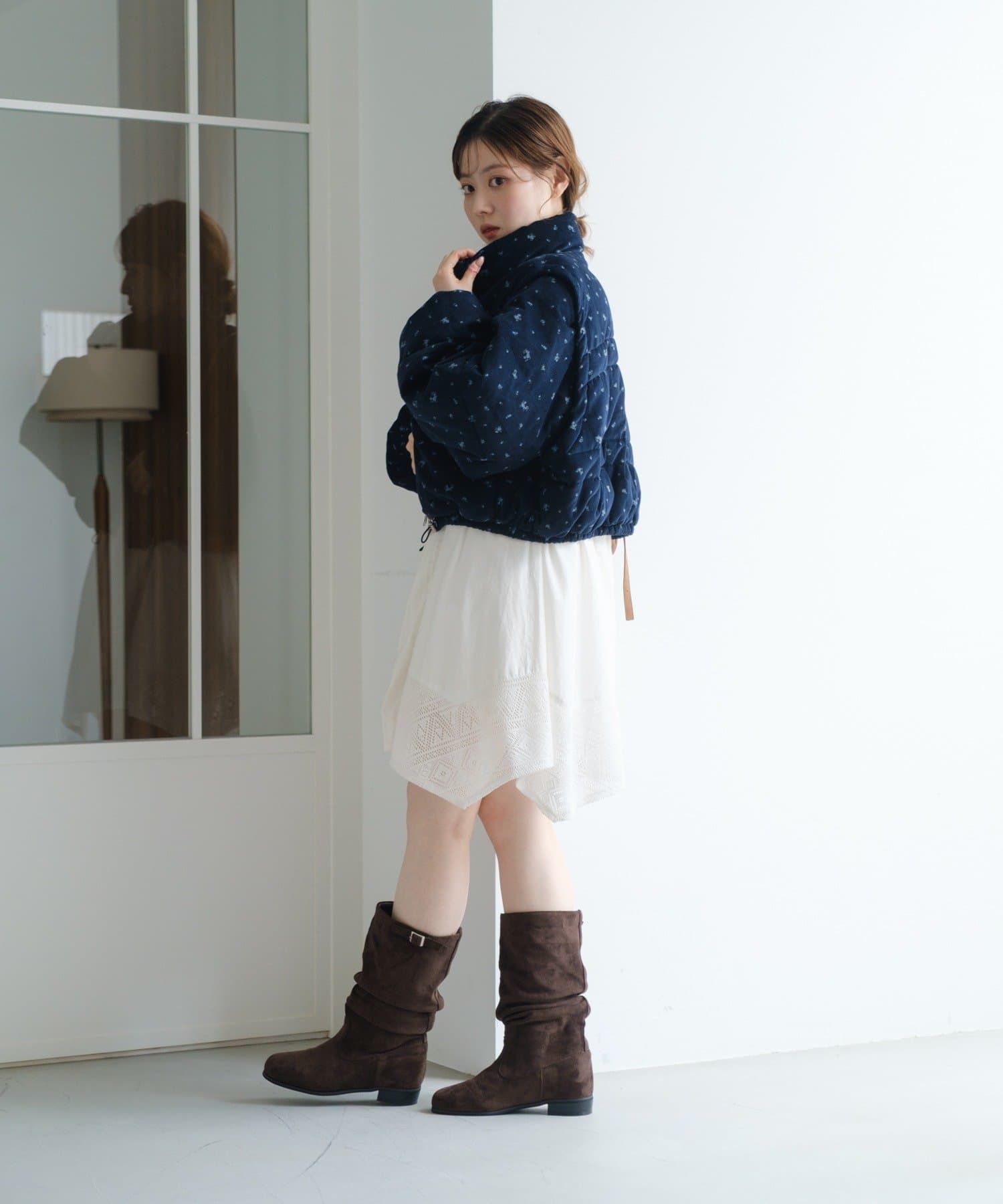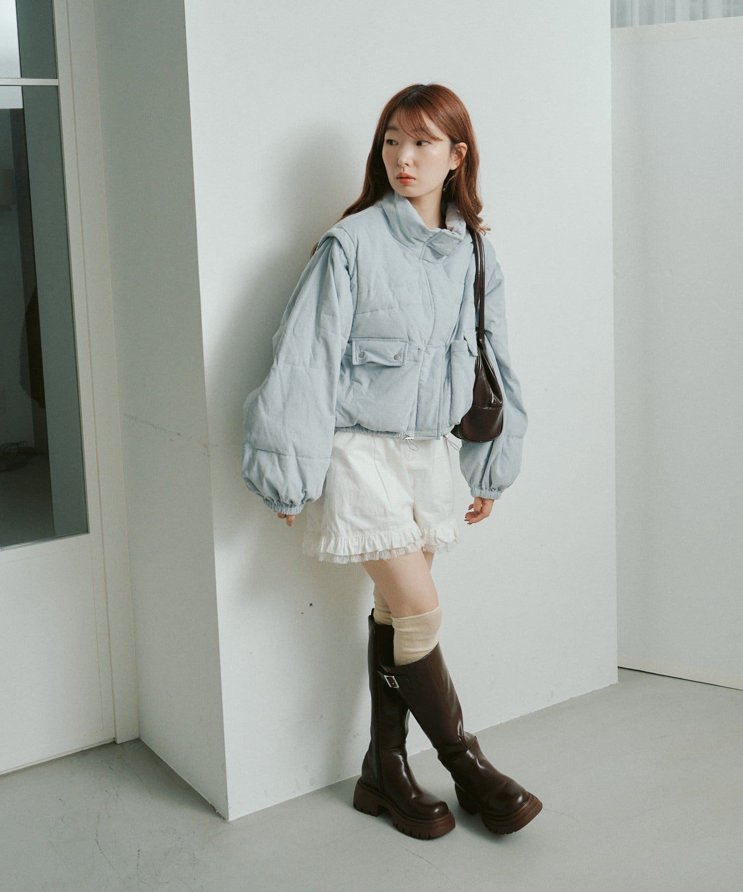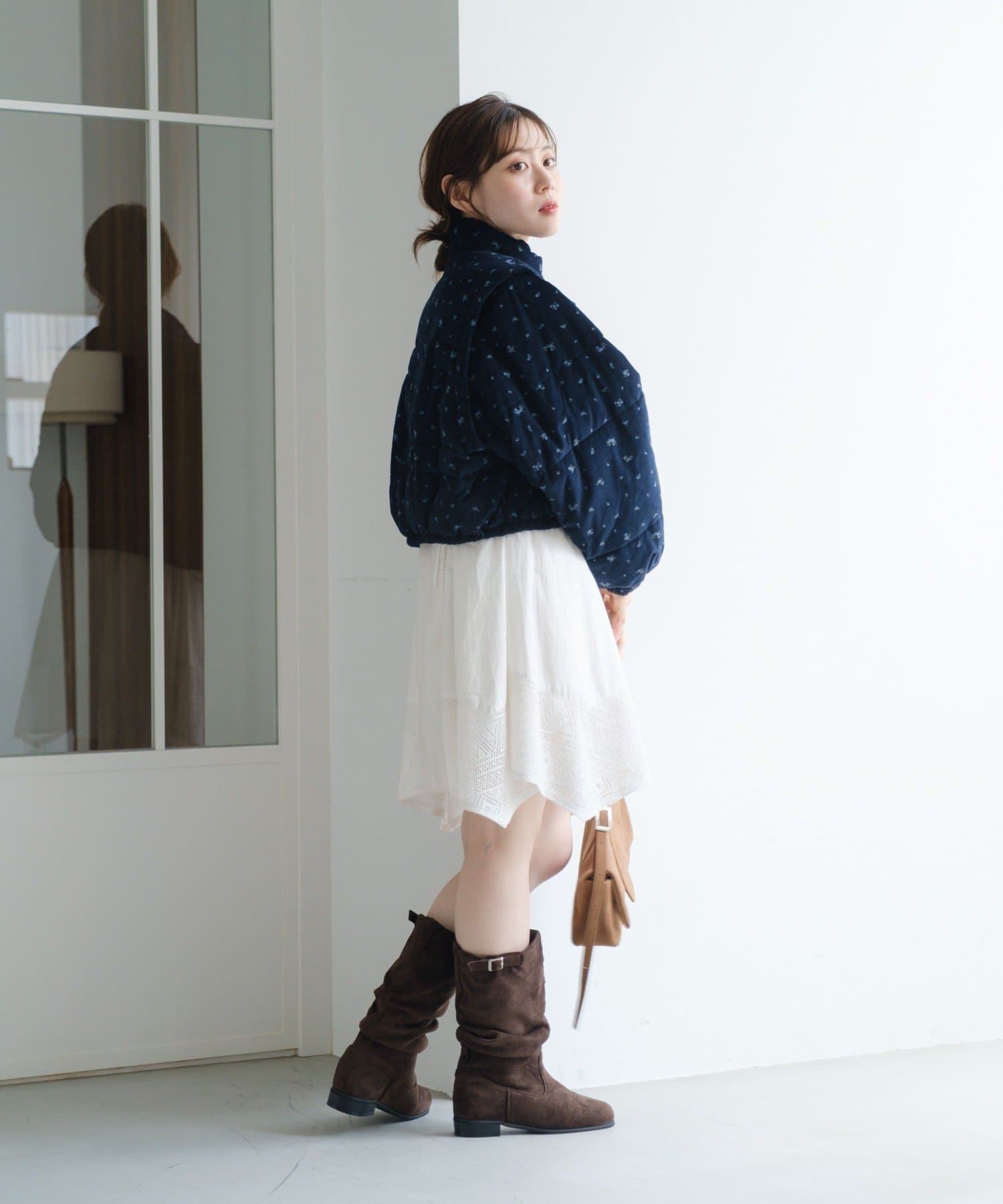 ショート丈のデザインがコーディネートに抜け感をプラスします。