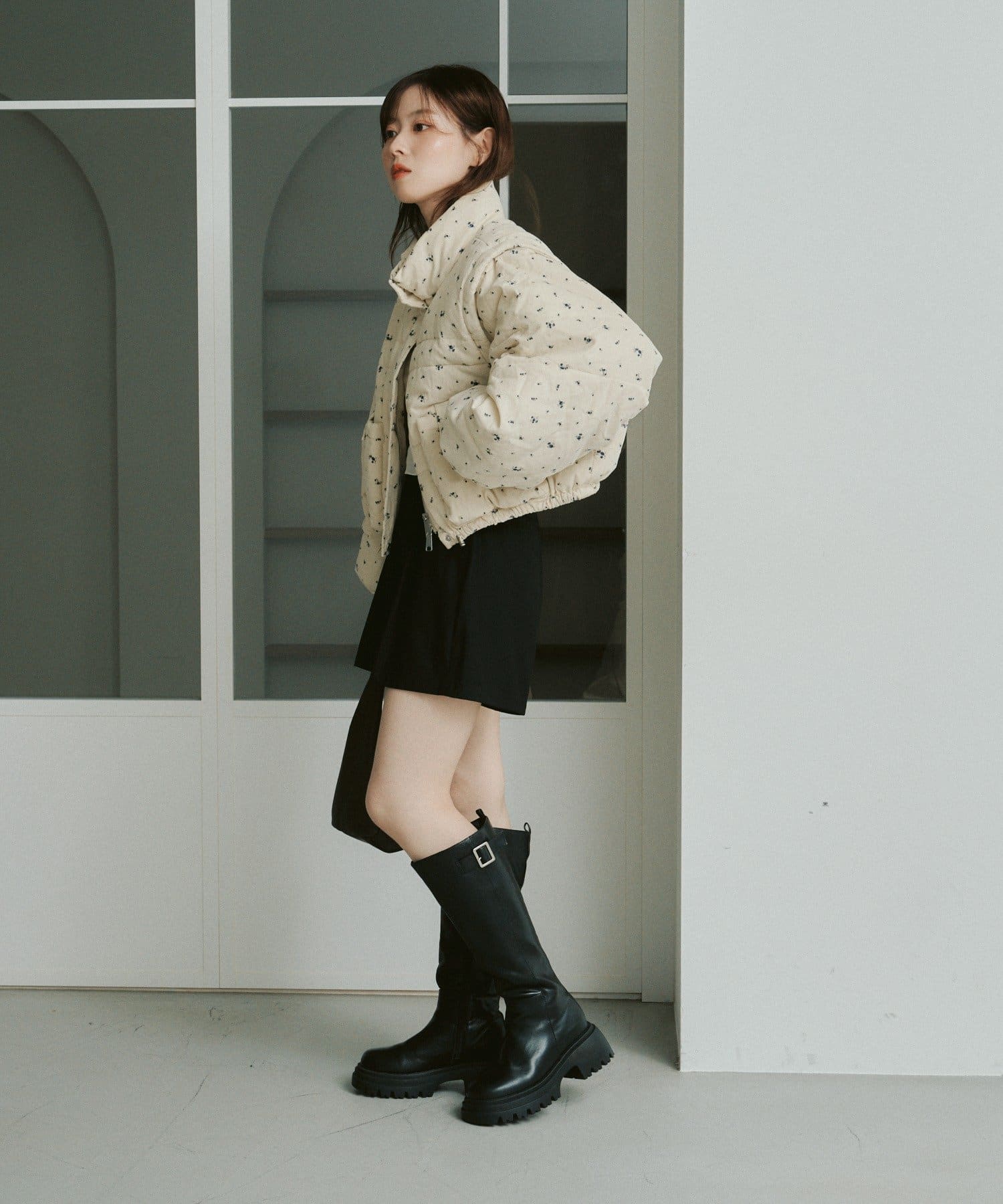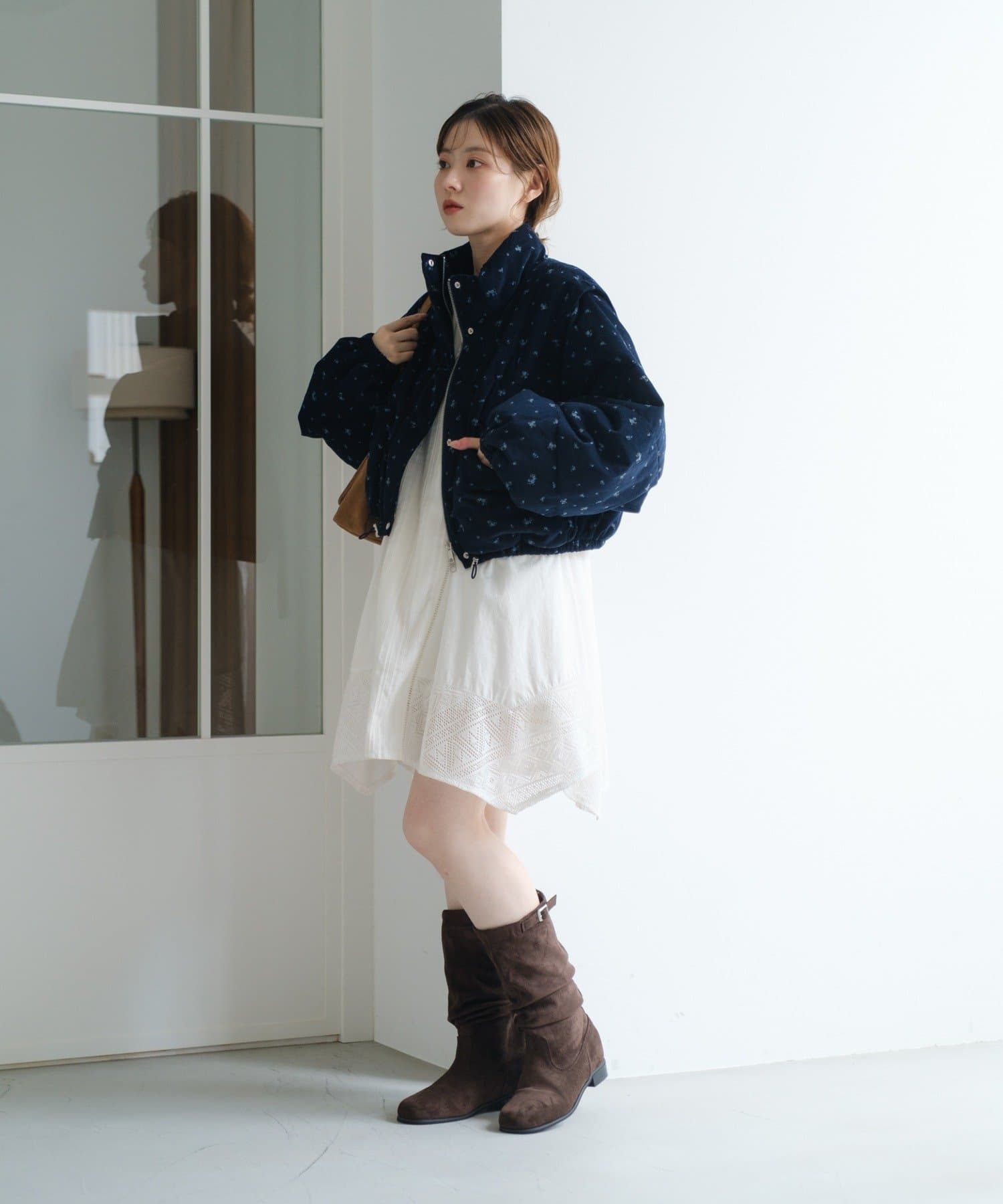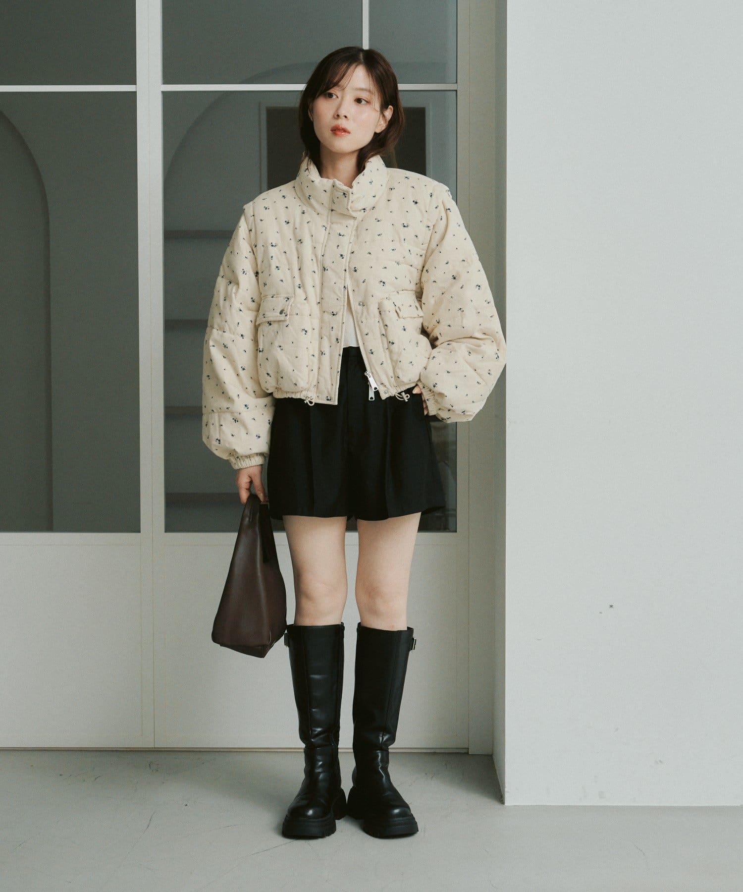 ショート丈のデザインがコーディネートに抜け感をプラスします。