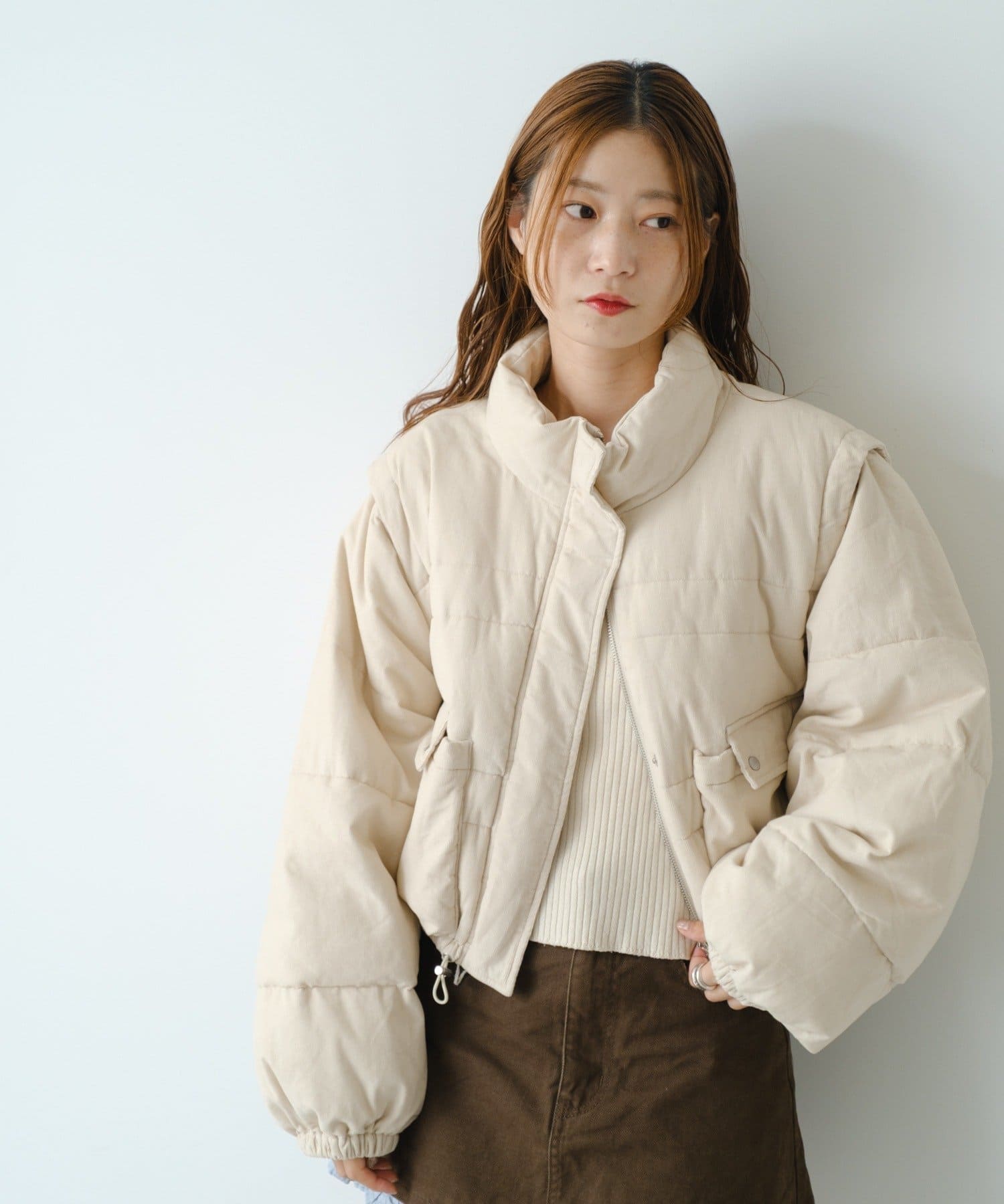 コーデュロイ仕様の優しい風合いと、軽くて暖かな着心地が魅力。