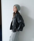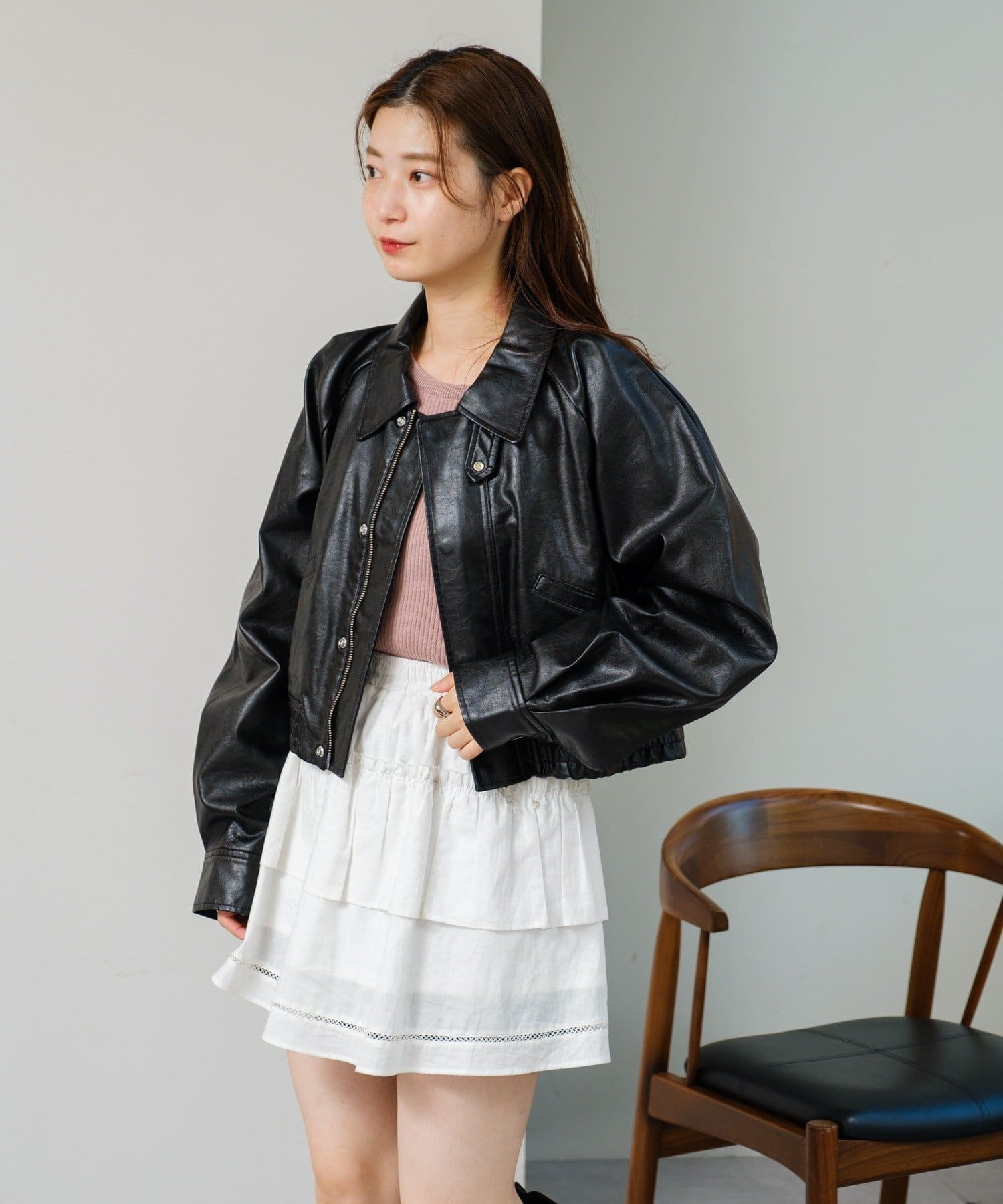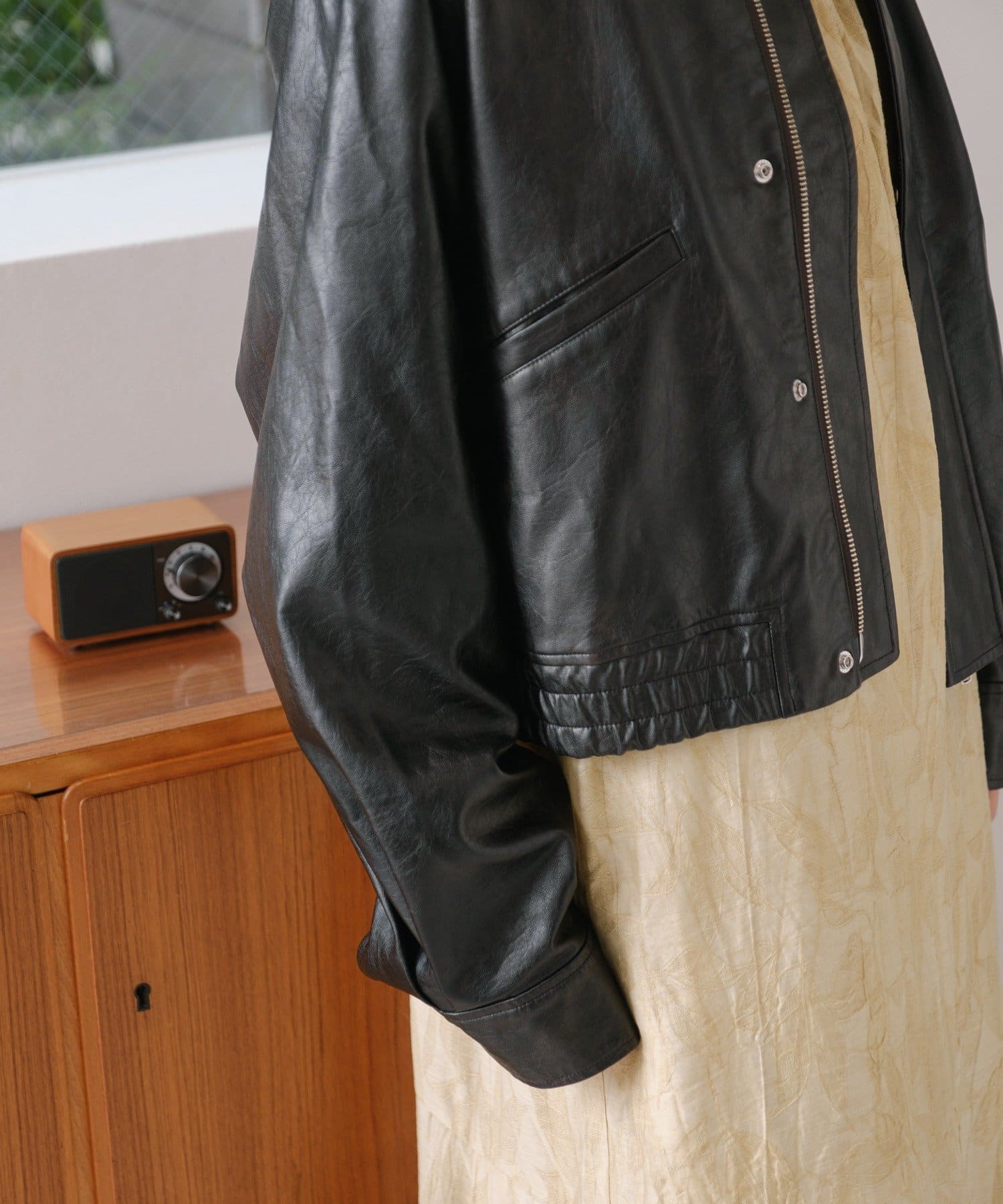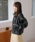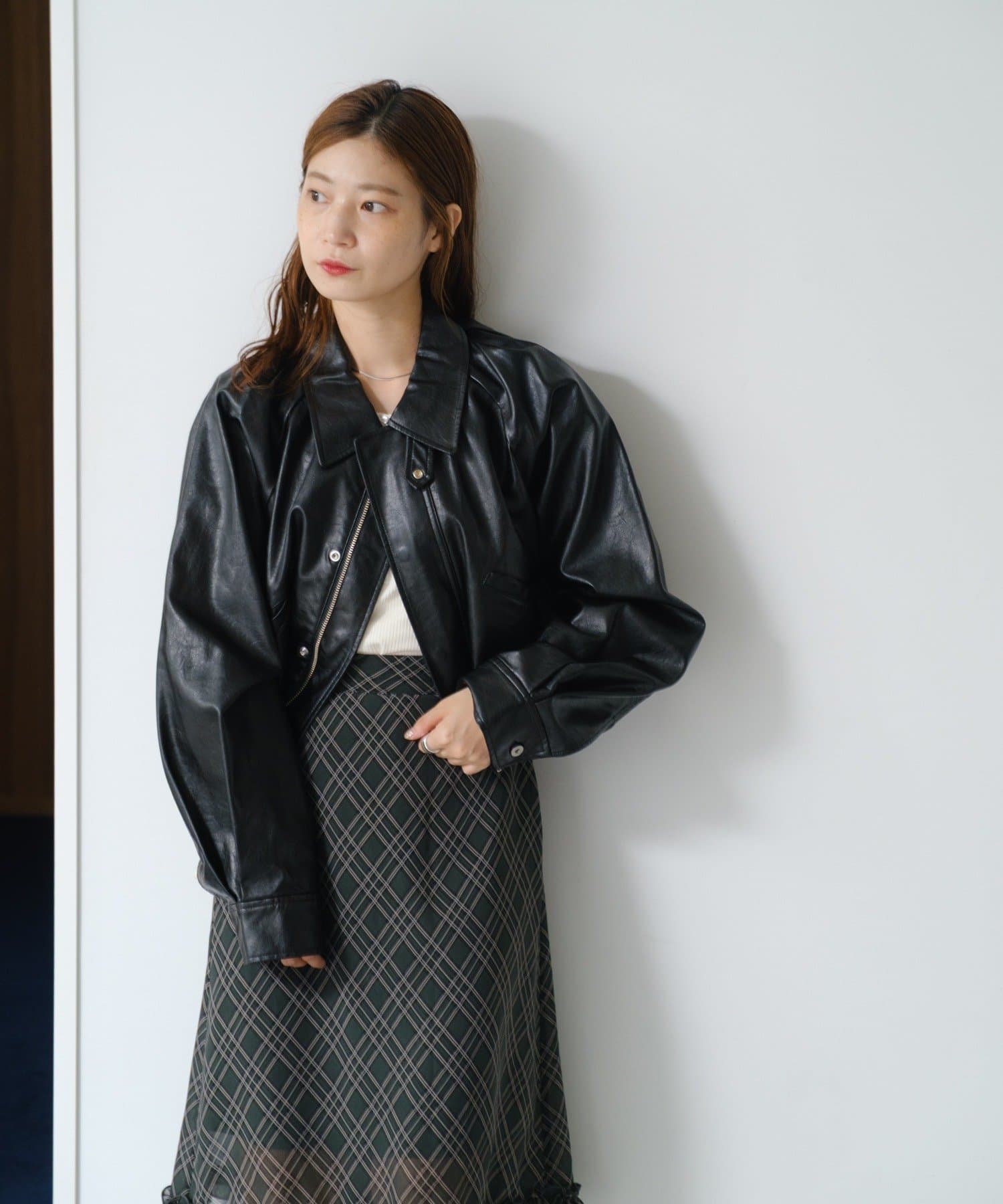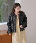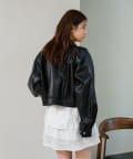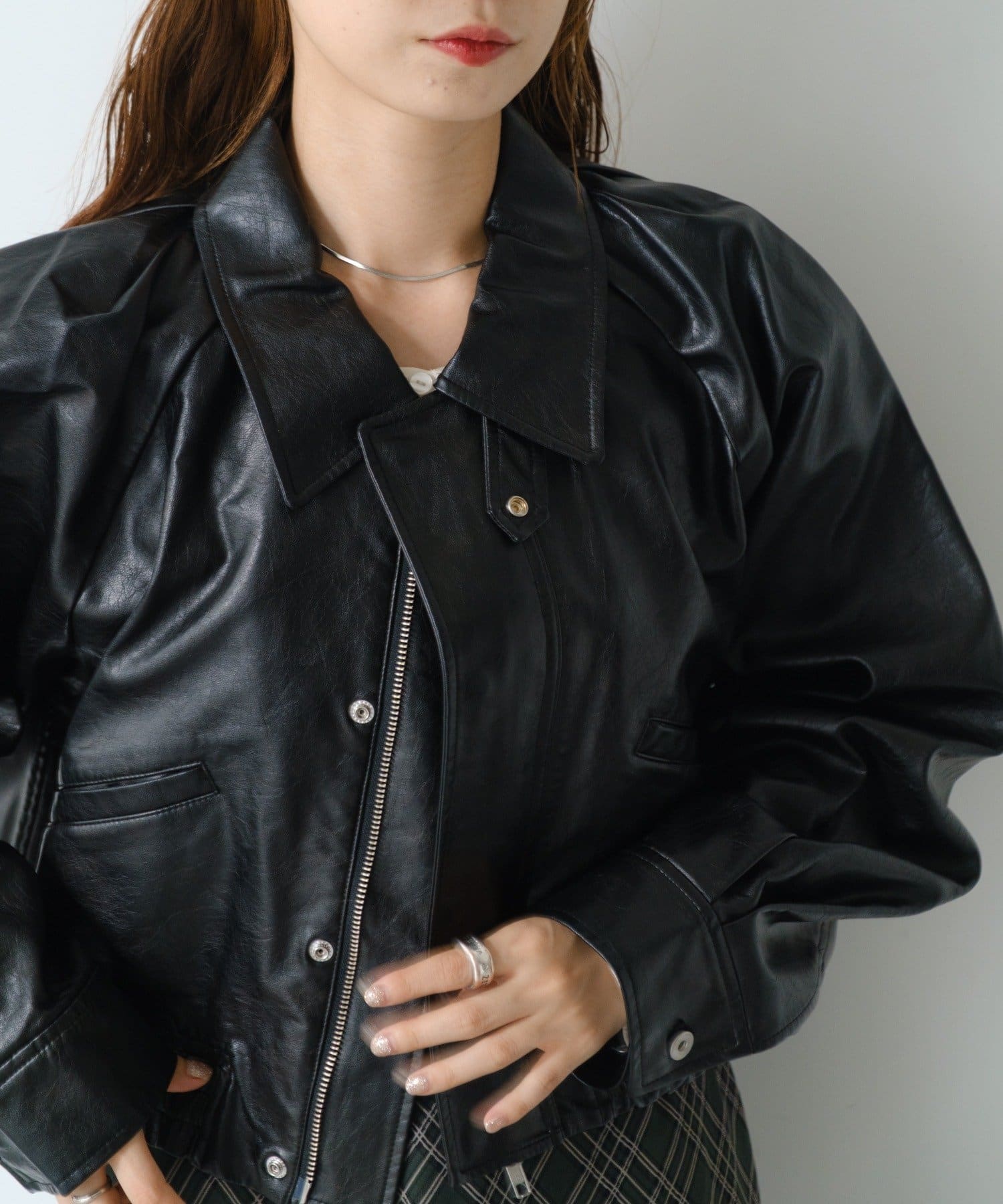 コンパクトなサイズ感ながら袖にはボリューム感のあるデザインが女性らしいレザージャケット。