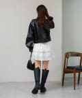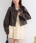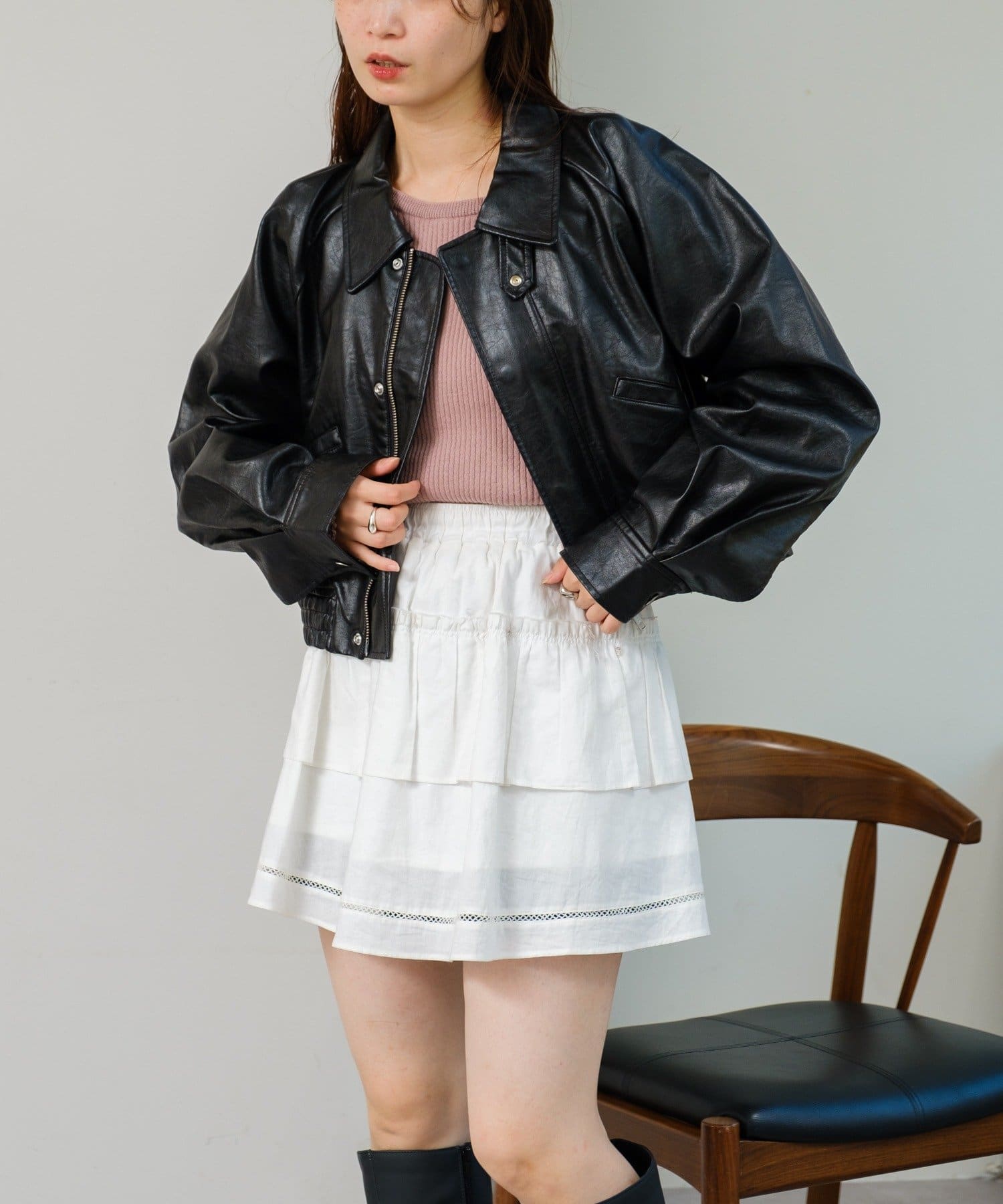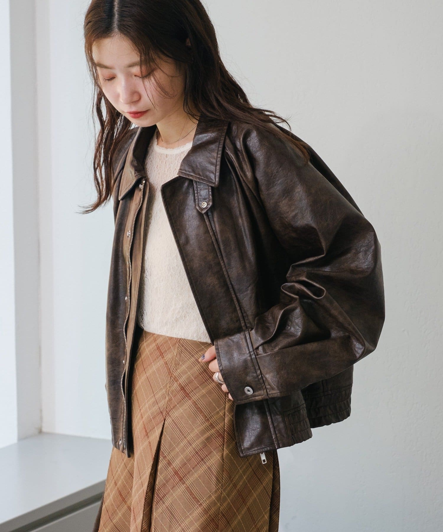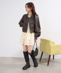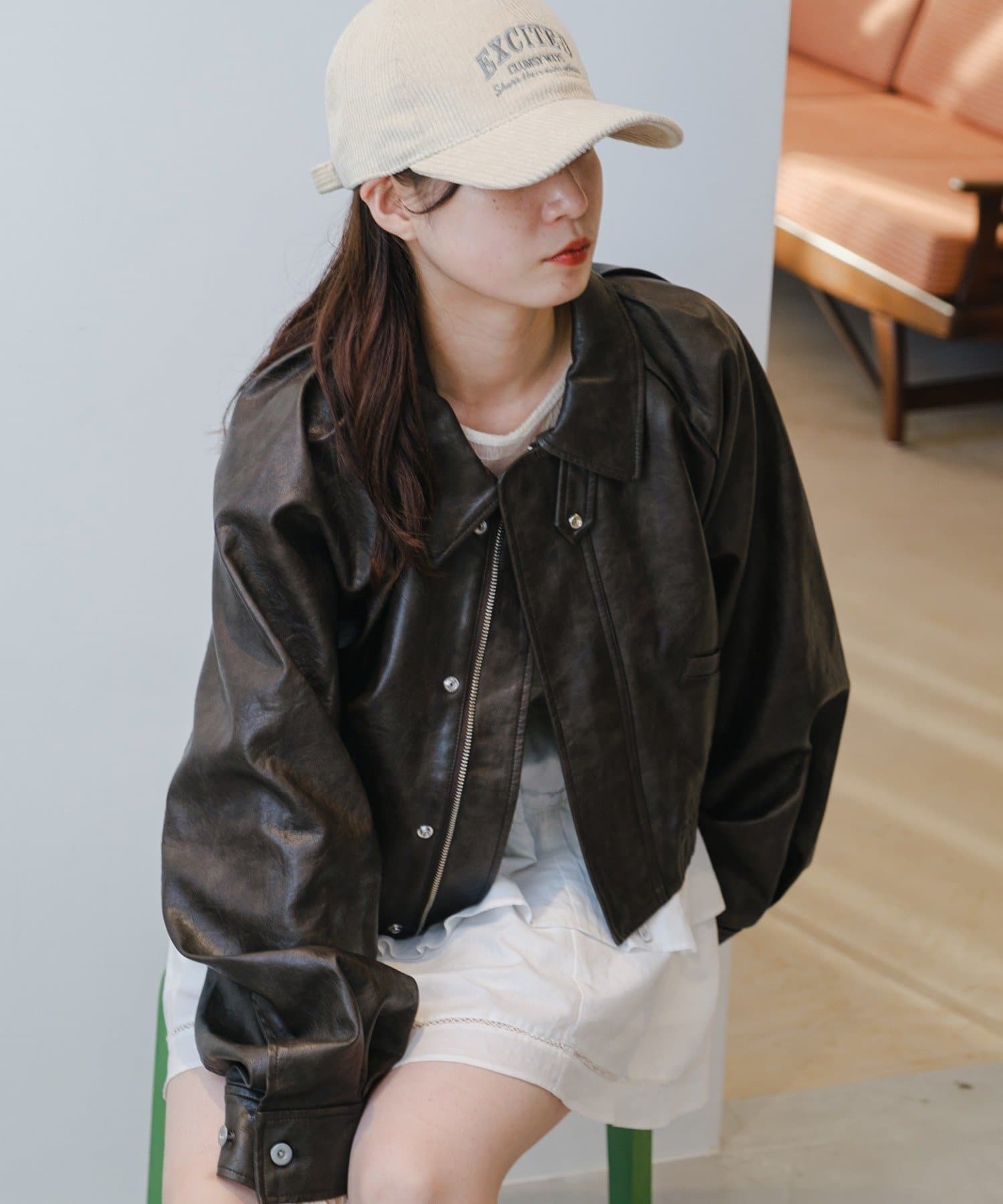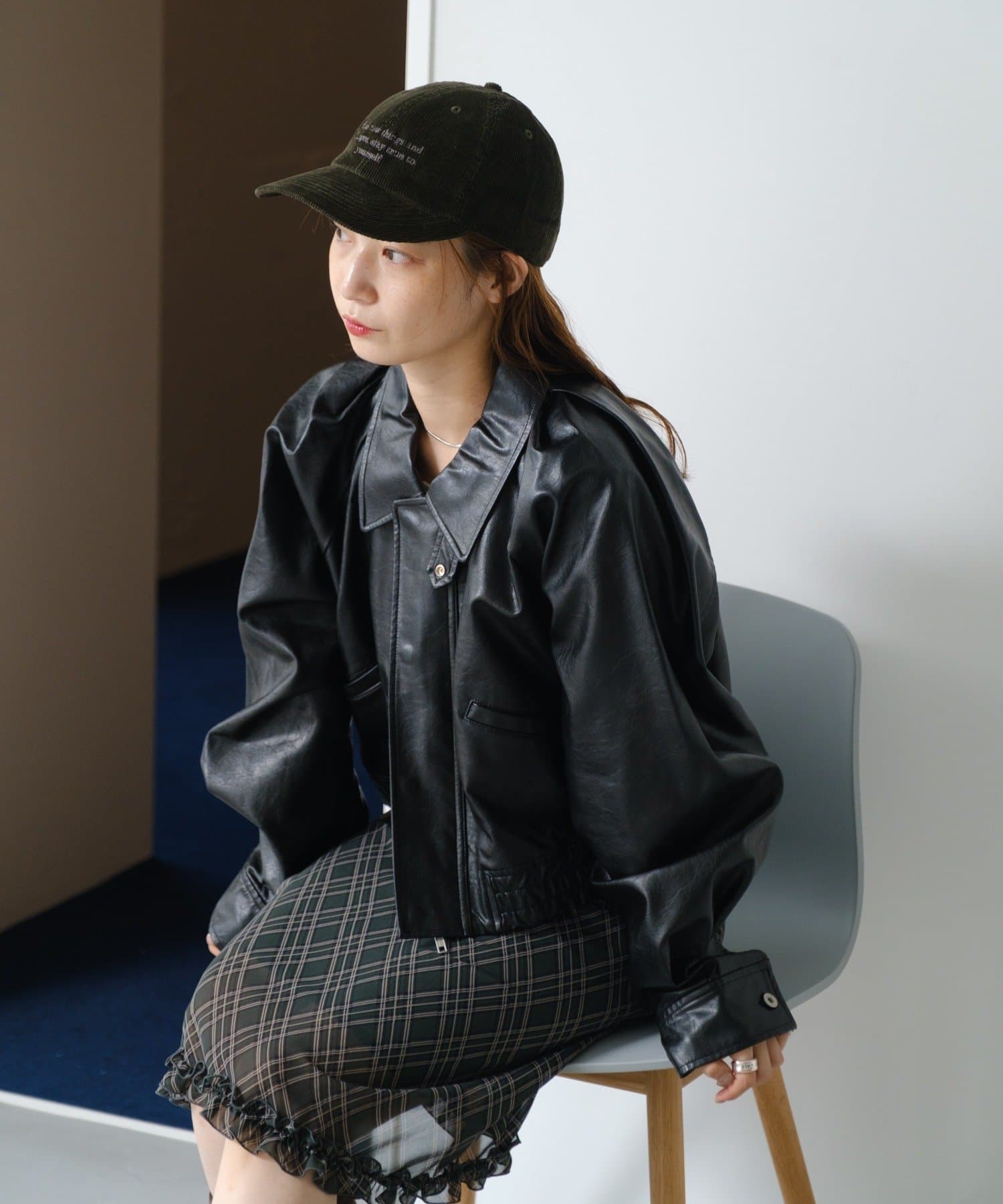 コンパクトなサイズ感ながら袖にはボリューム感のあるデザインが女性らしいレザージャケット。