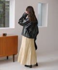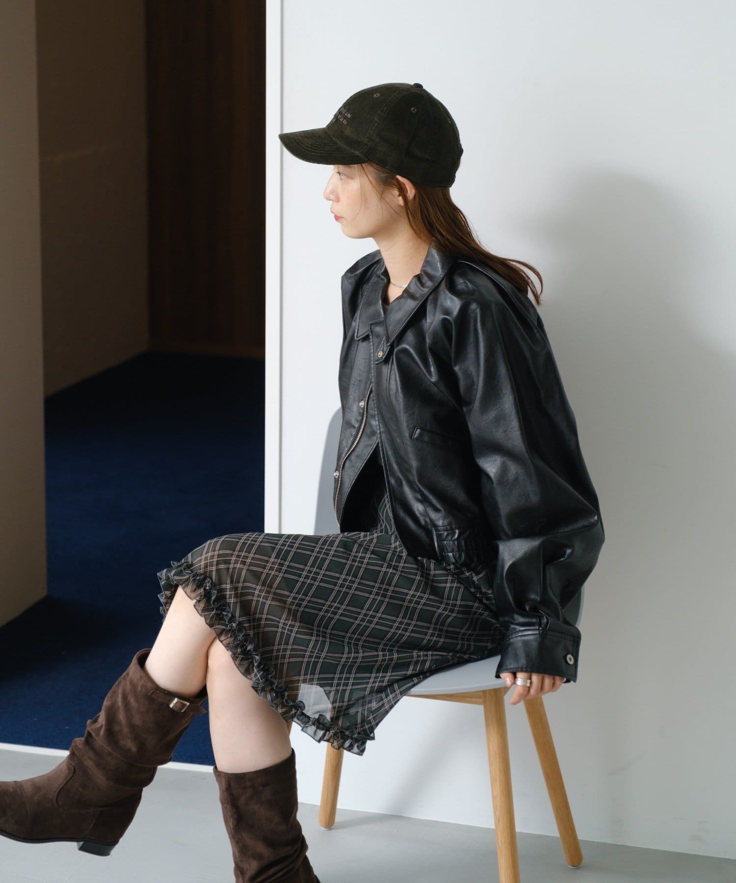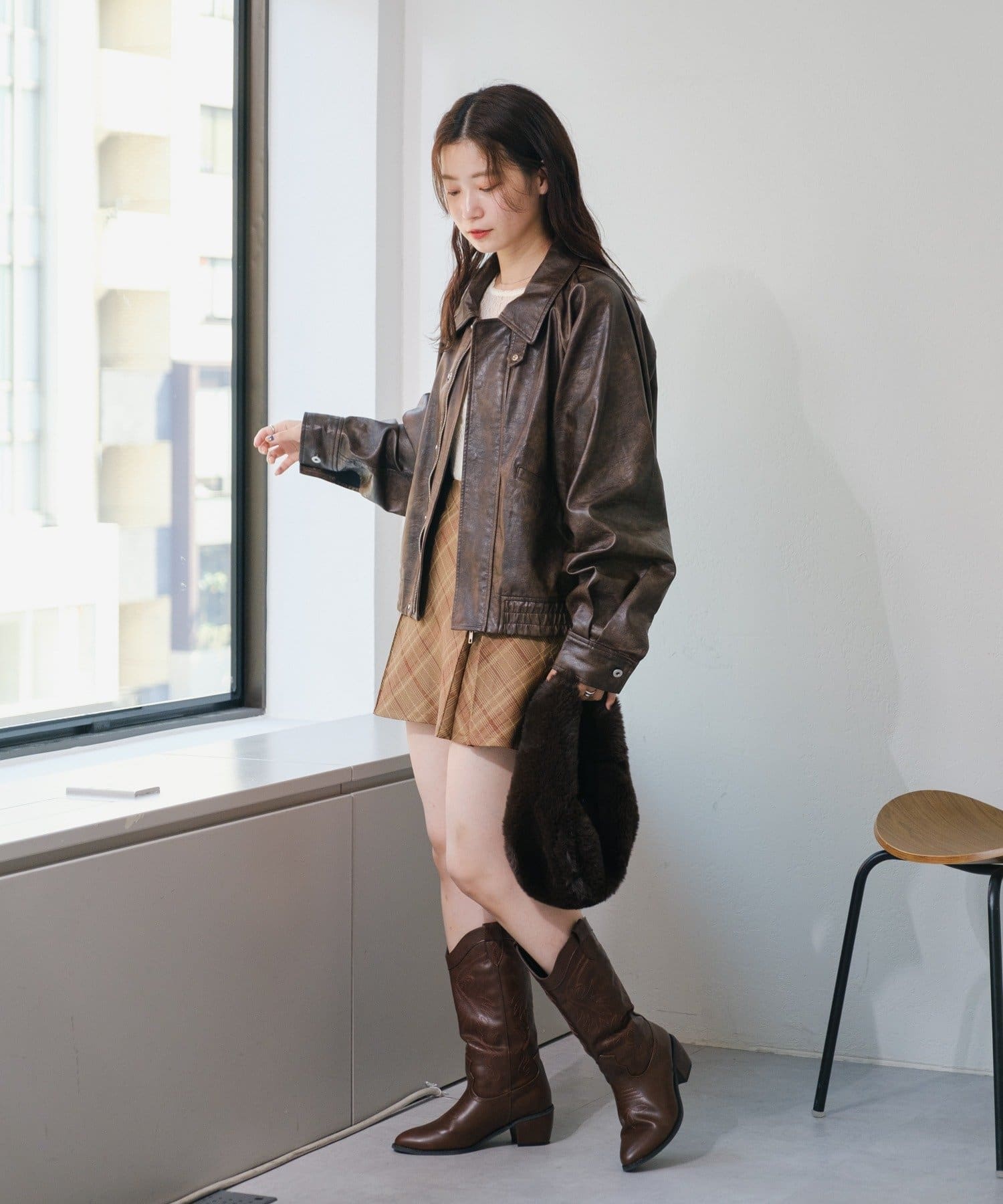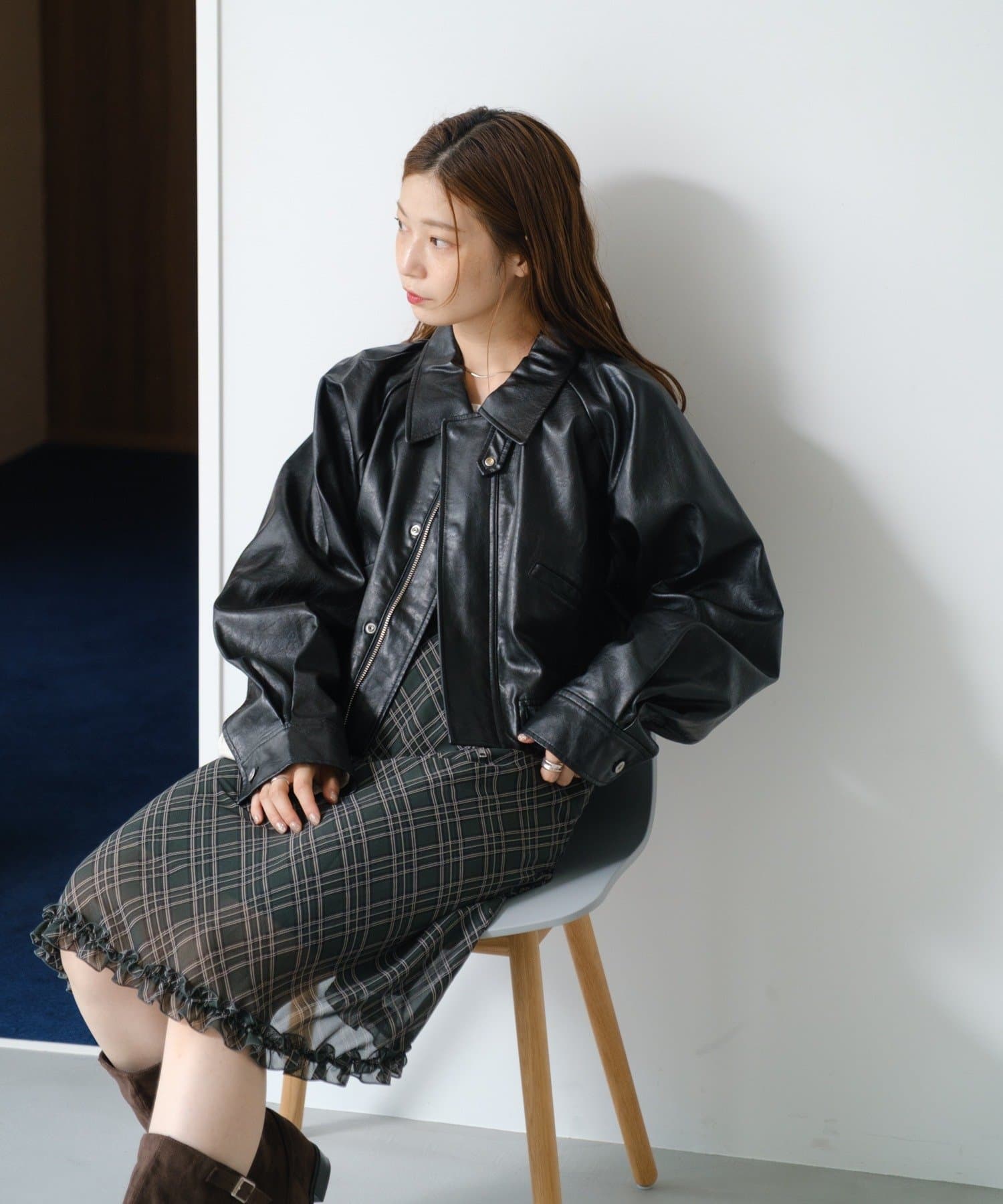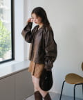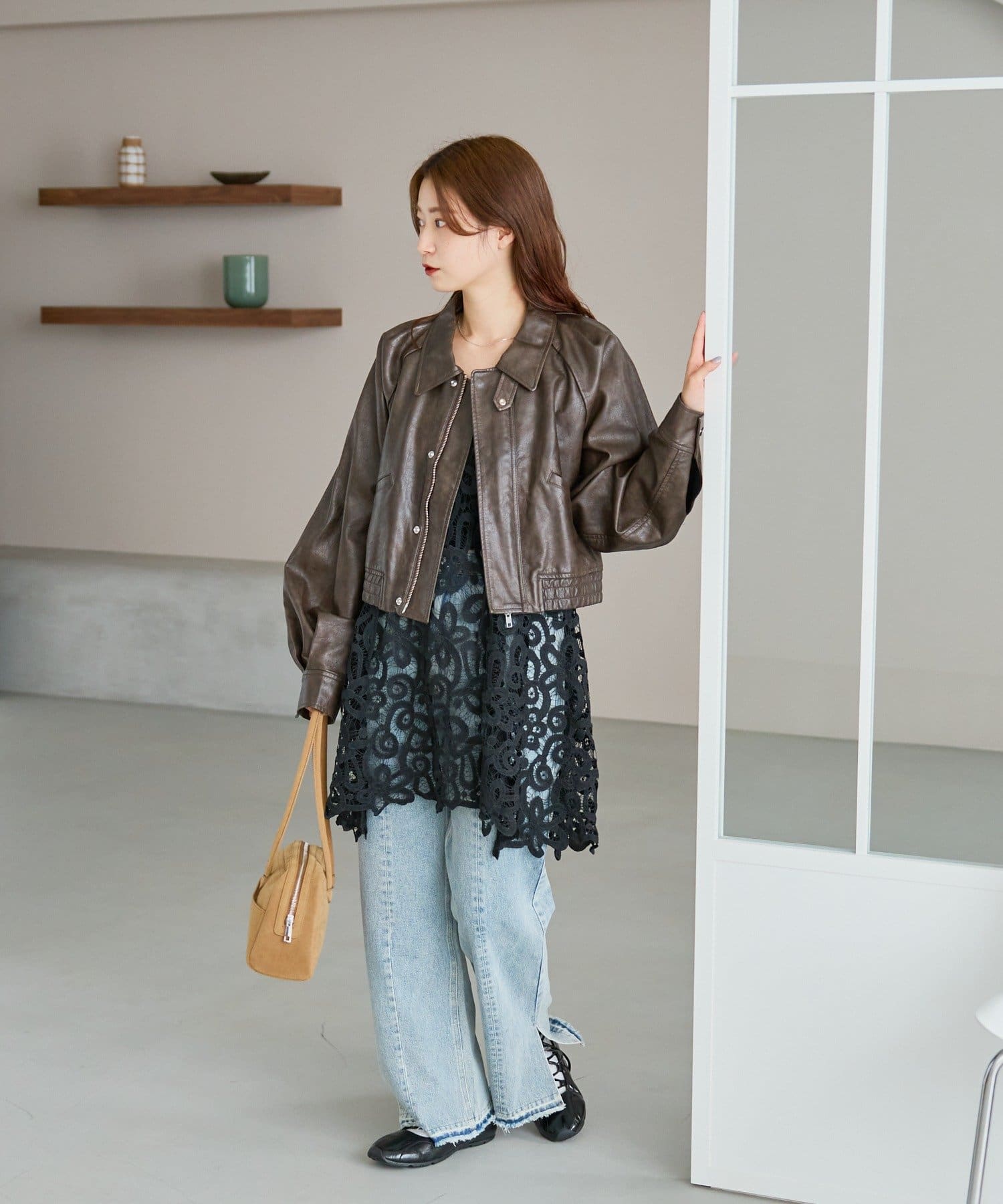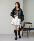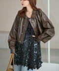 コンパクトなサイズ感ながら袖にはボリューム感のあるデザインが女性らしいレザージャケット。