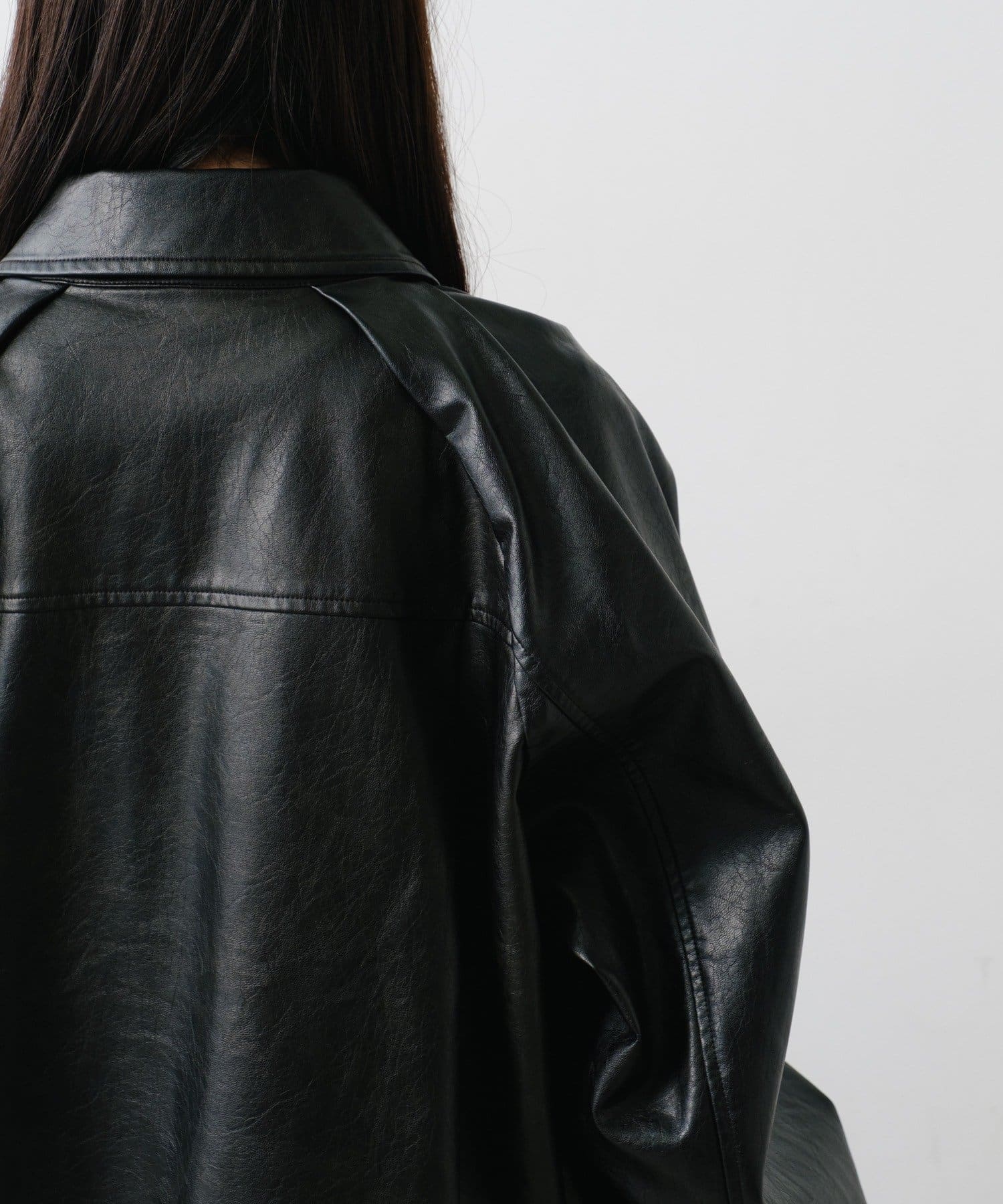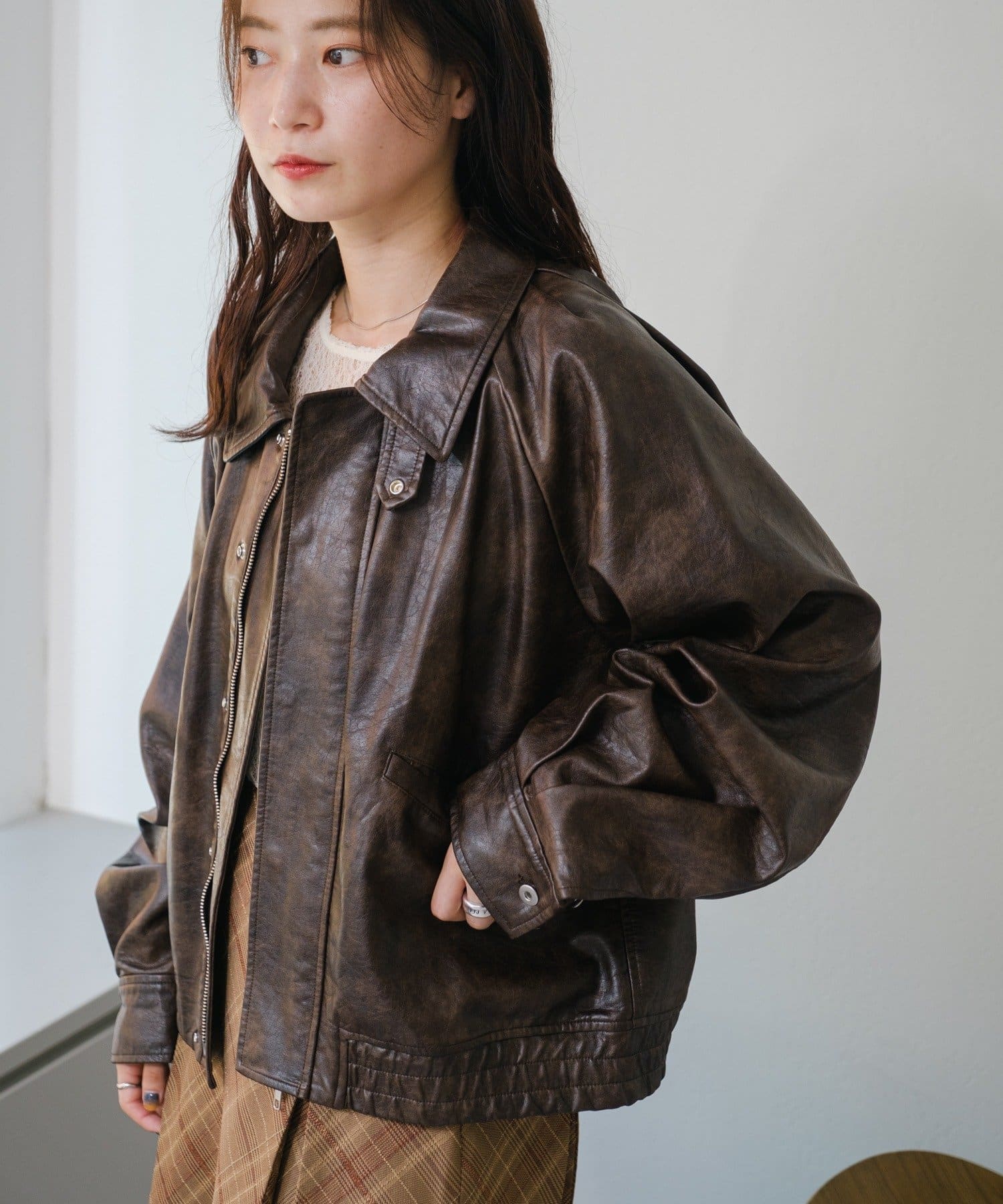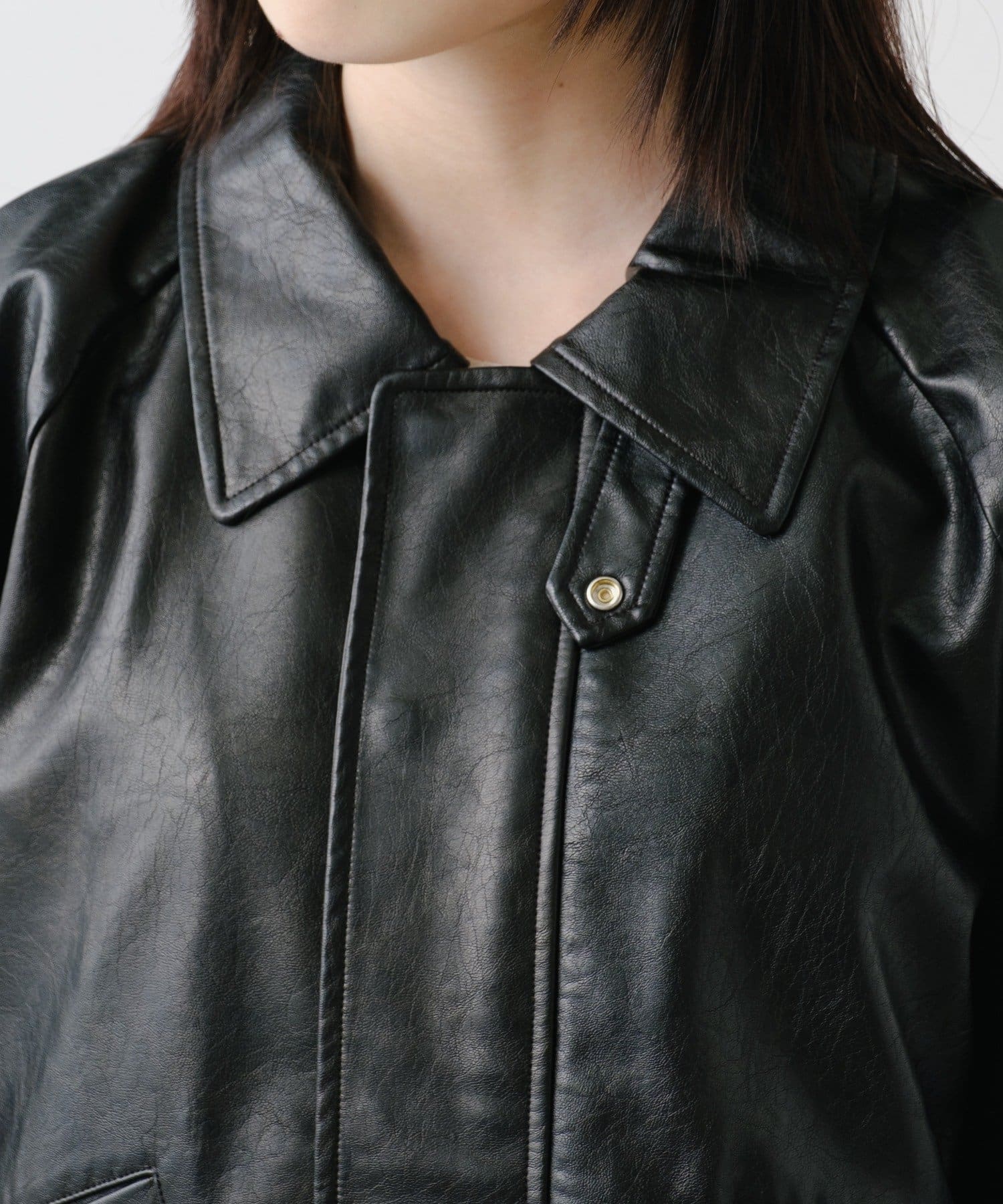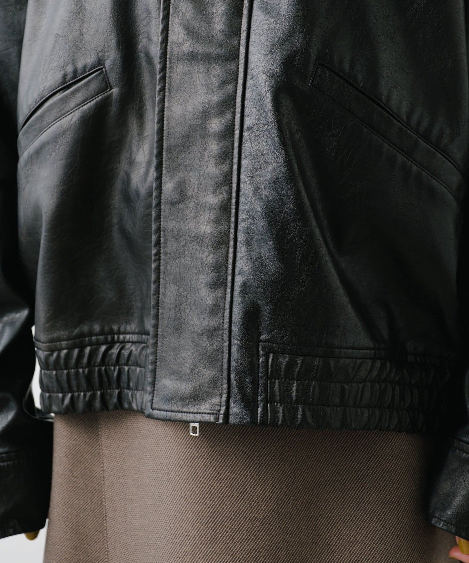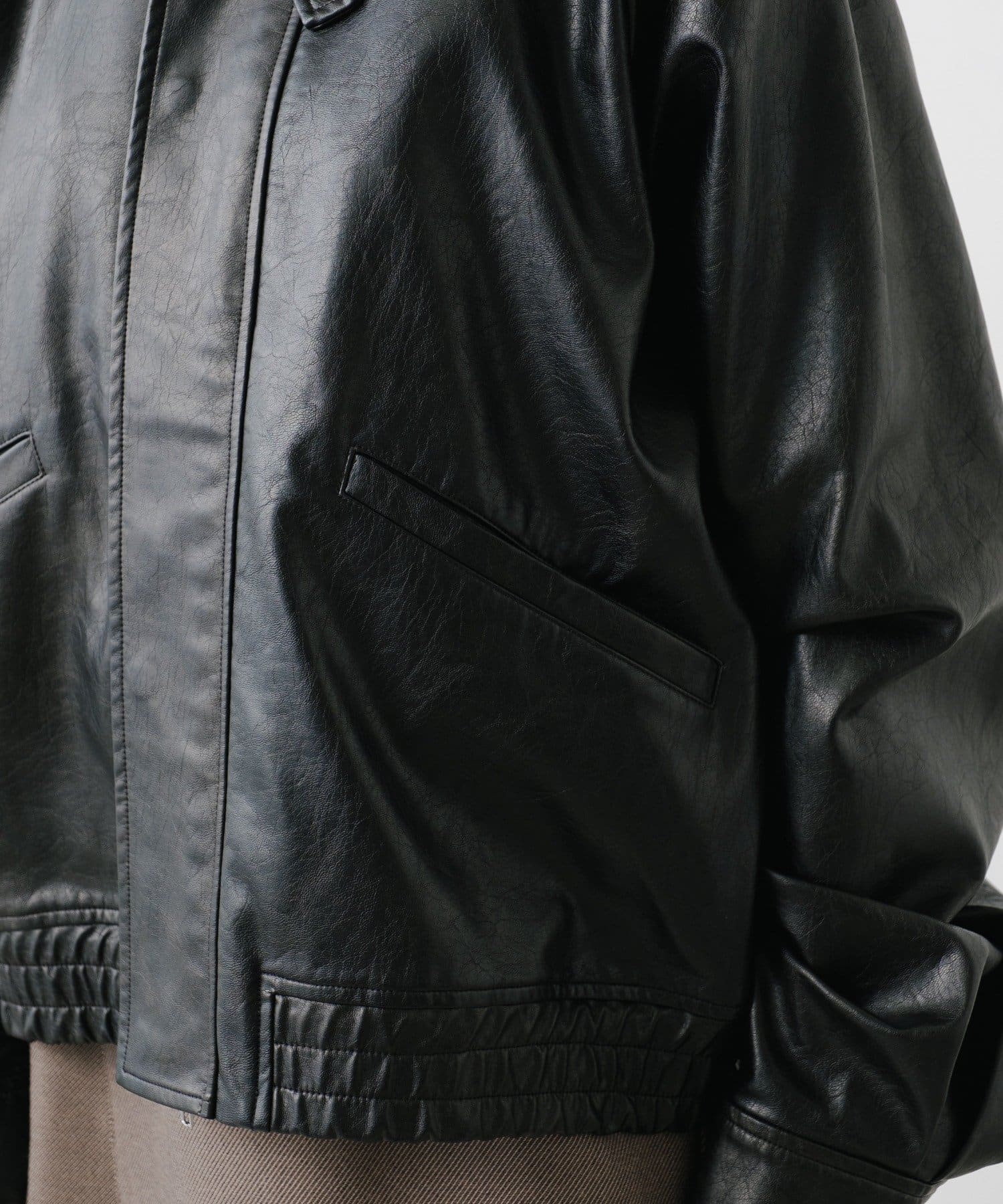 【2サイズ展開/襟2WAY】フェイクレザーショートブルゾン