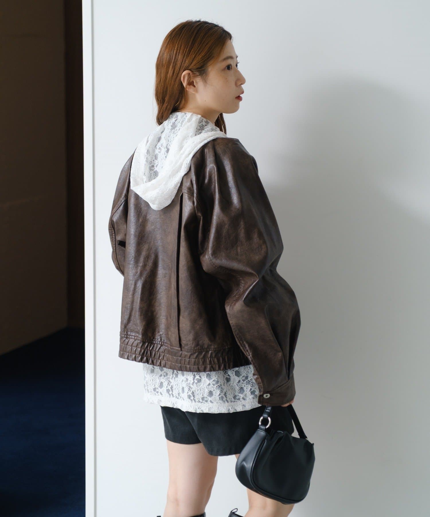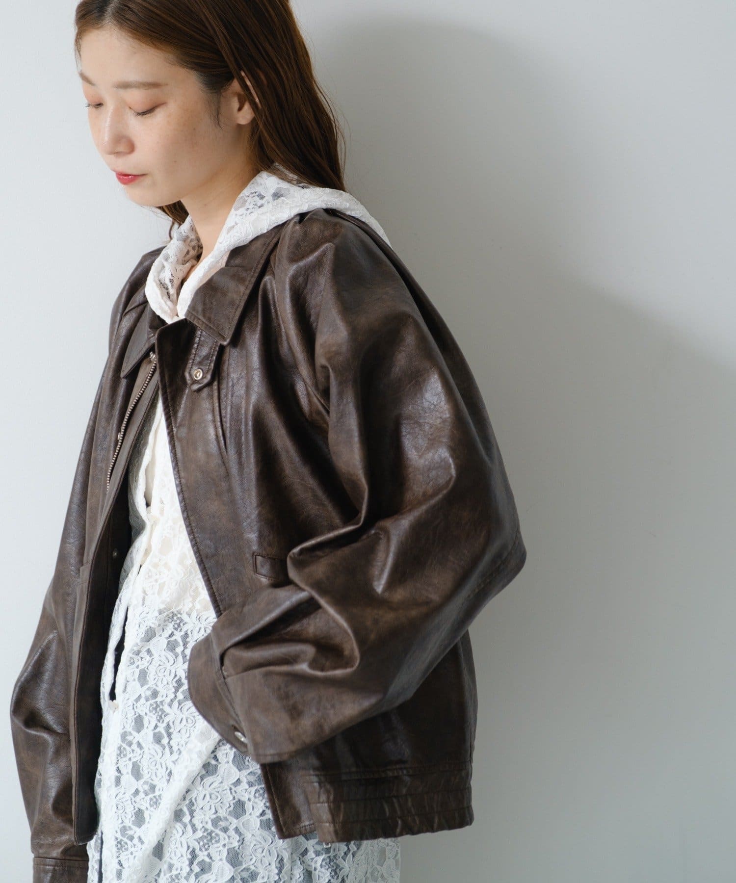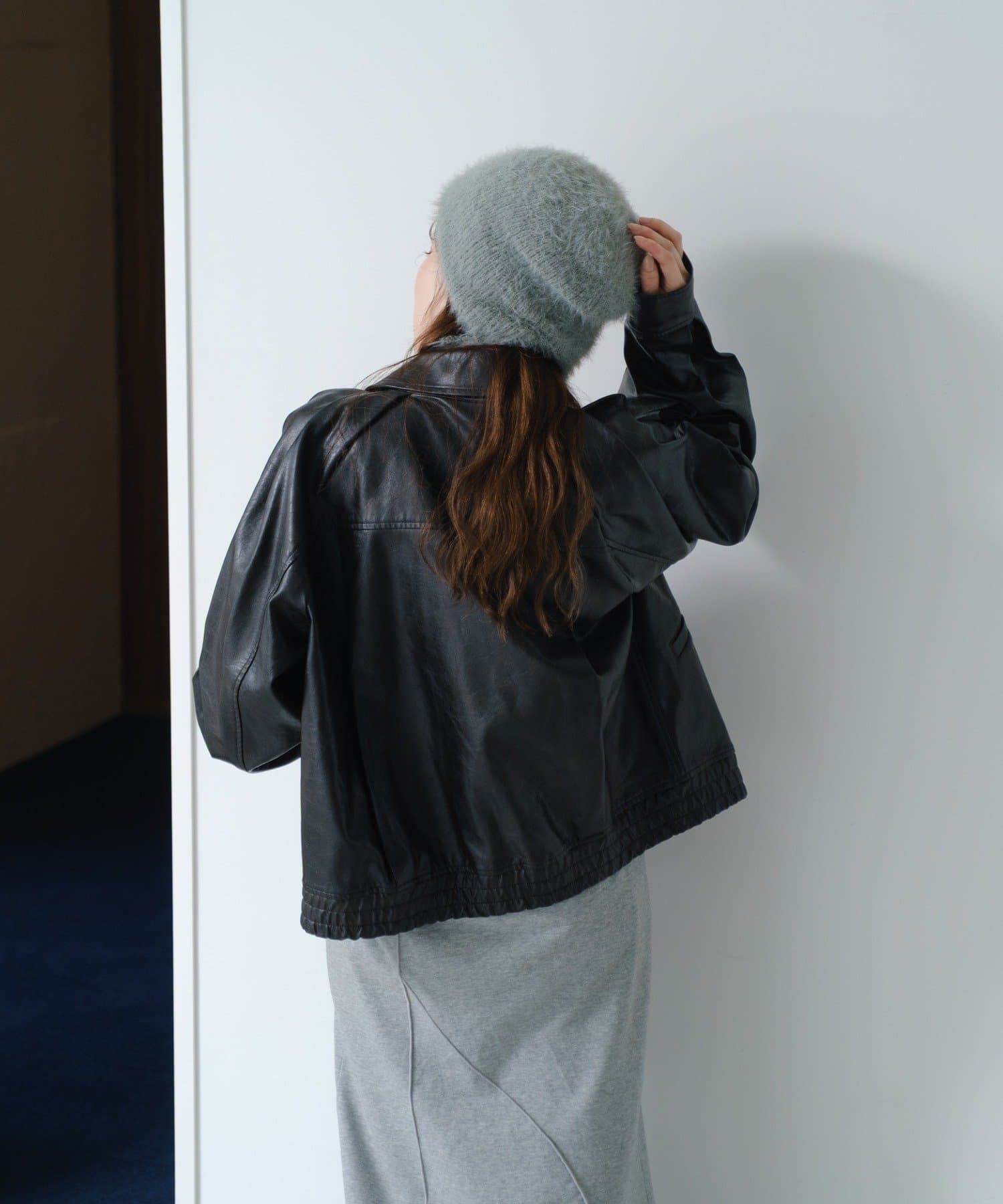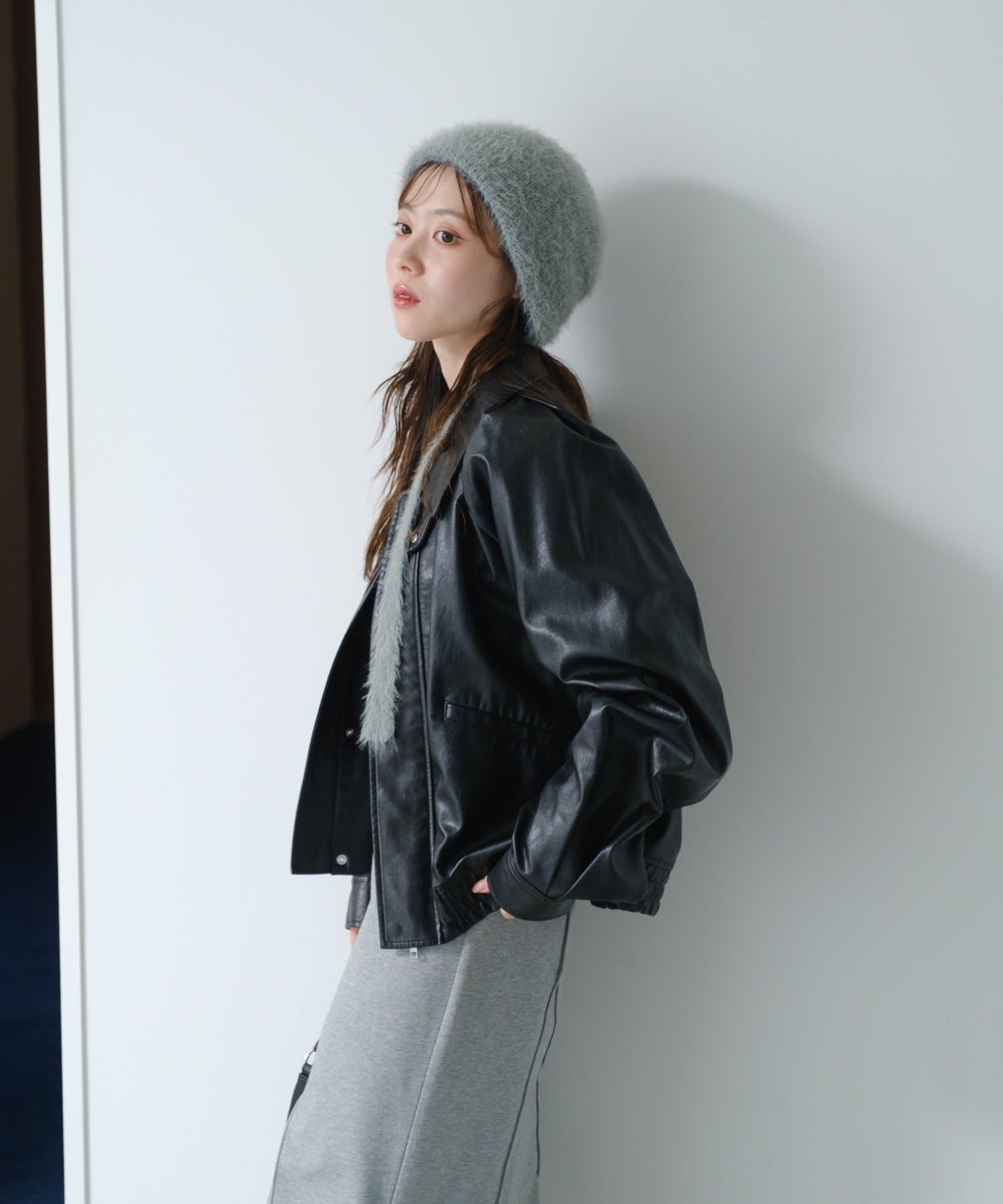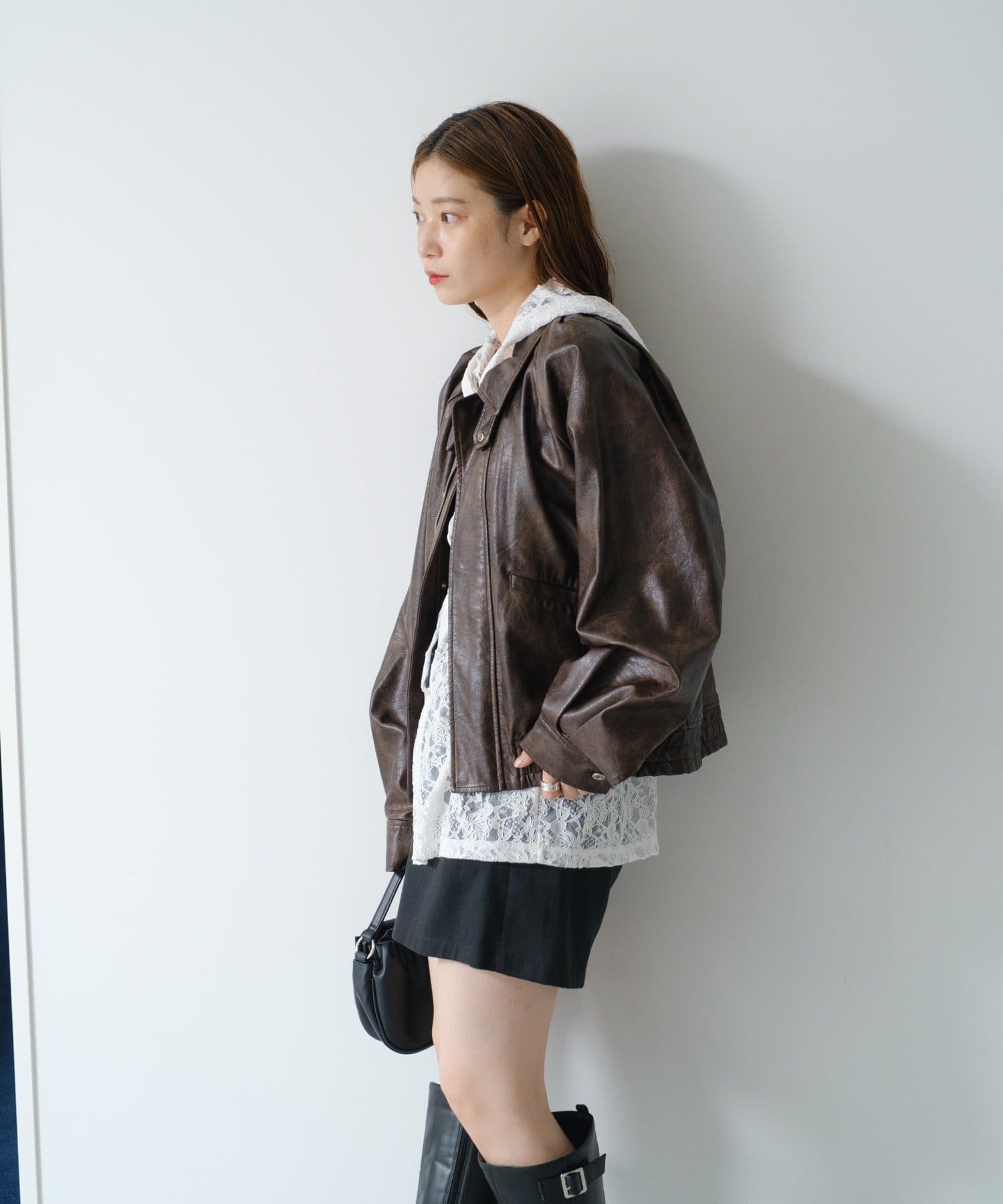 【2サイズ展開/襟2WAY】フェイクレザーショートブルゾン