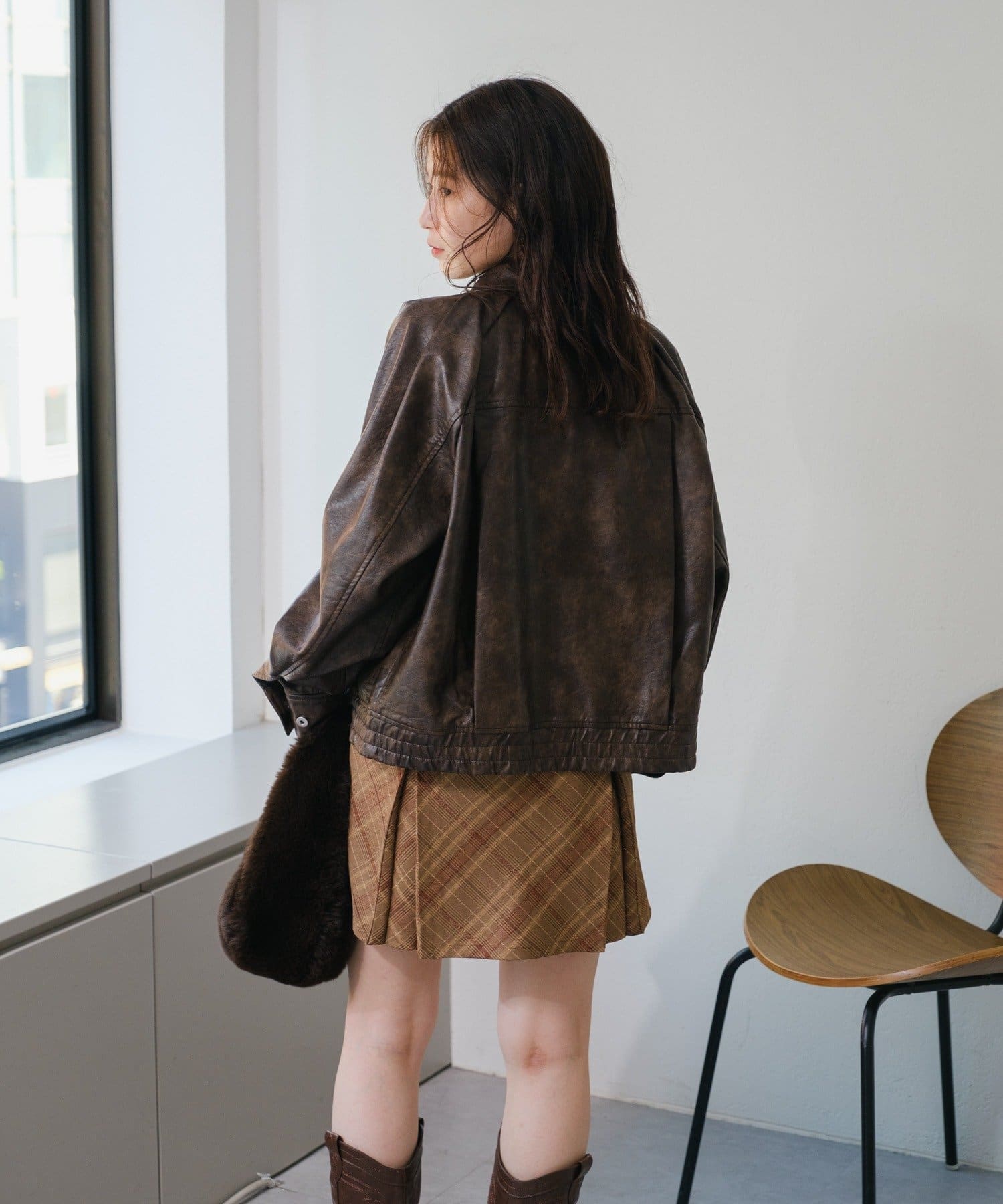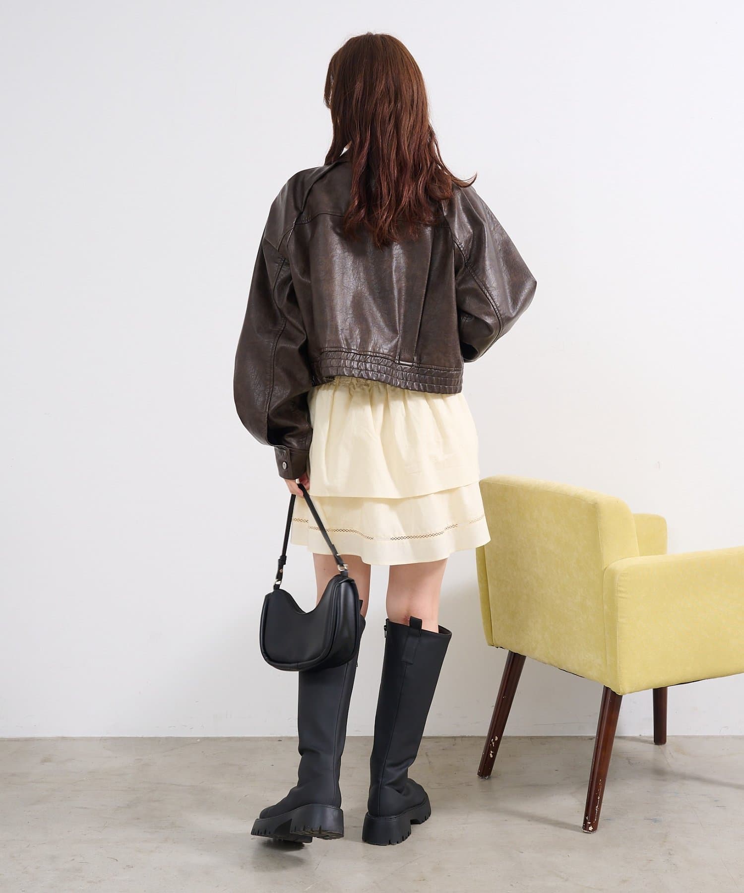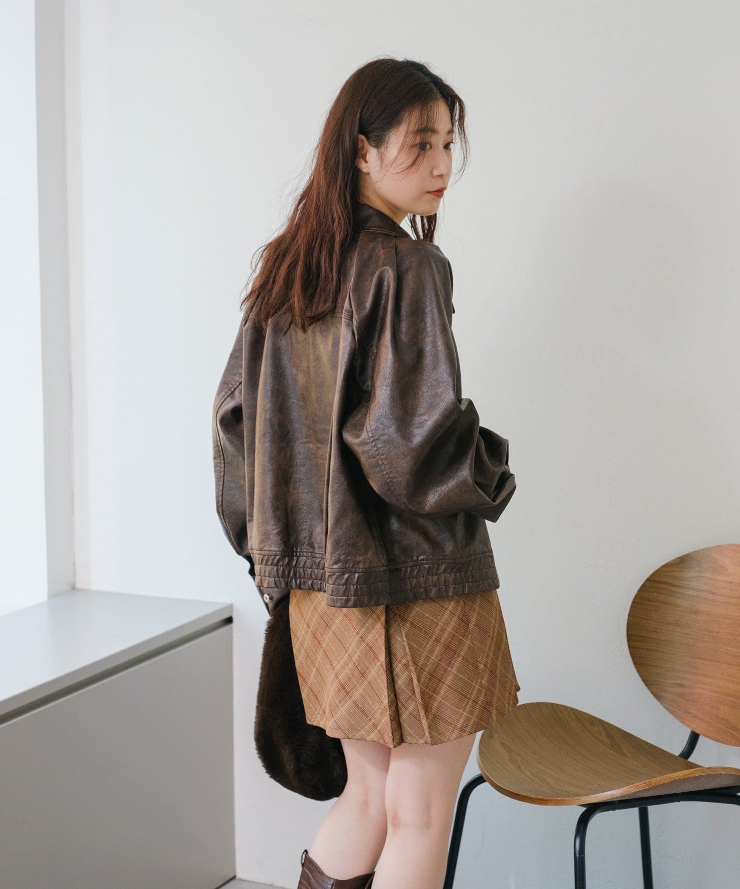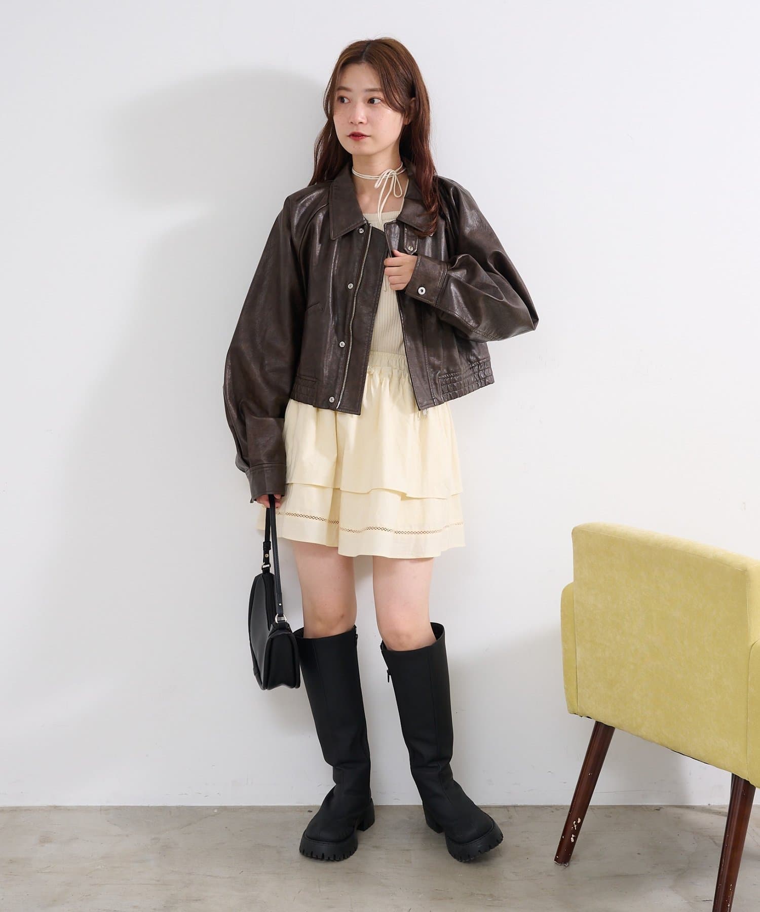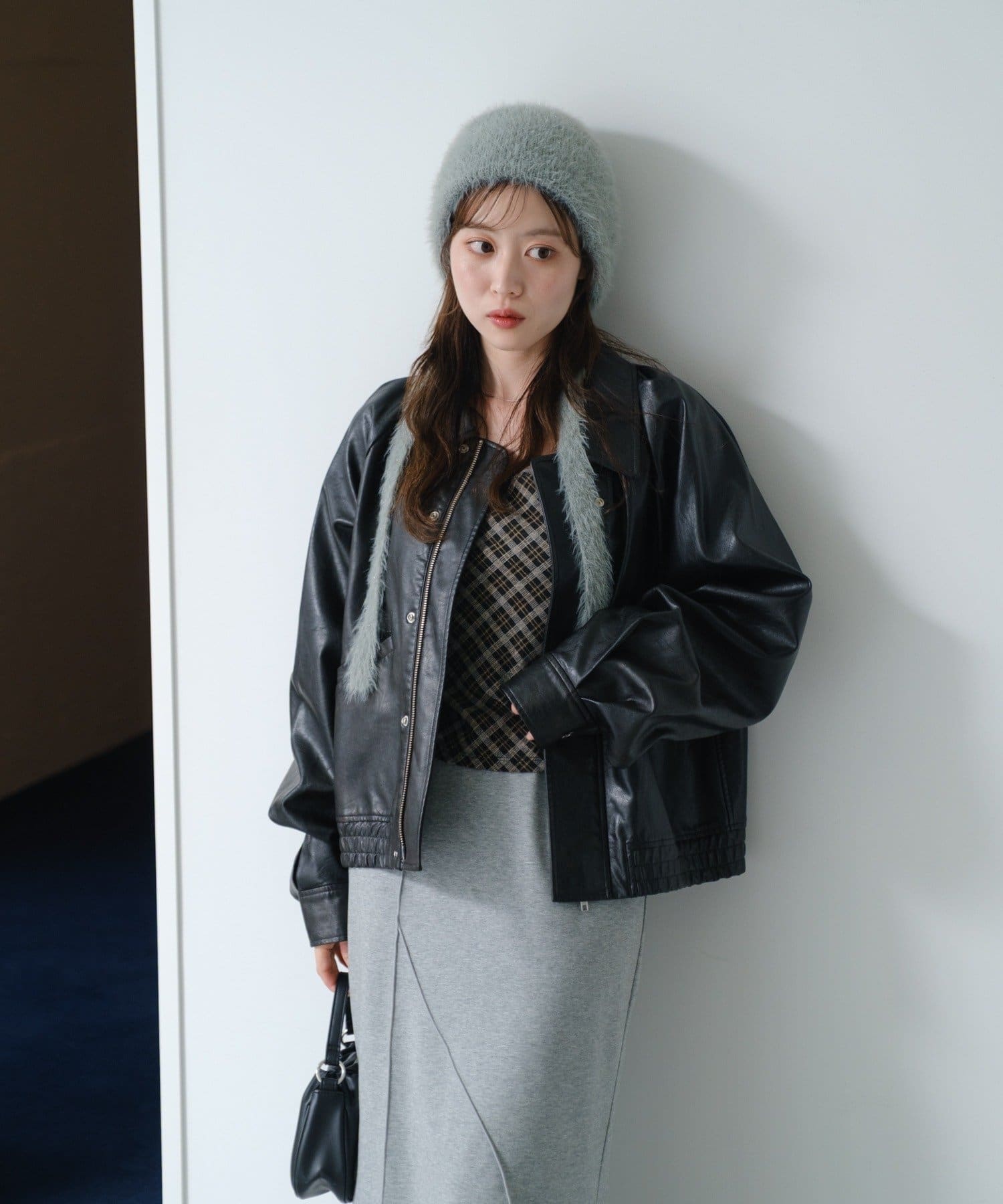 【2サイズ展開/襟2WAY】フェイクレザーショートブルゾン