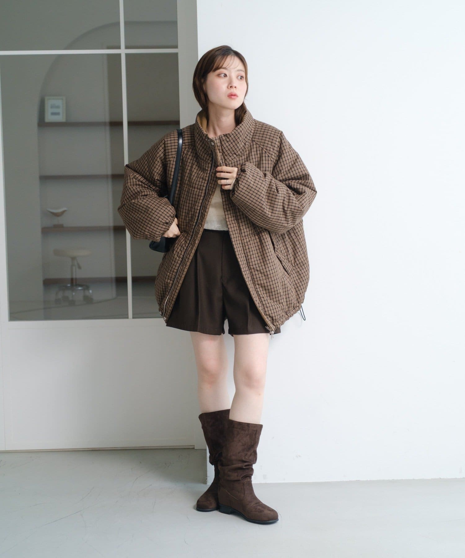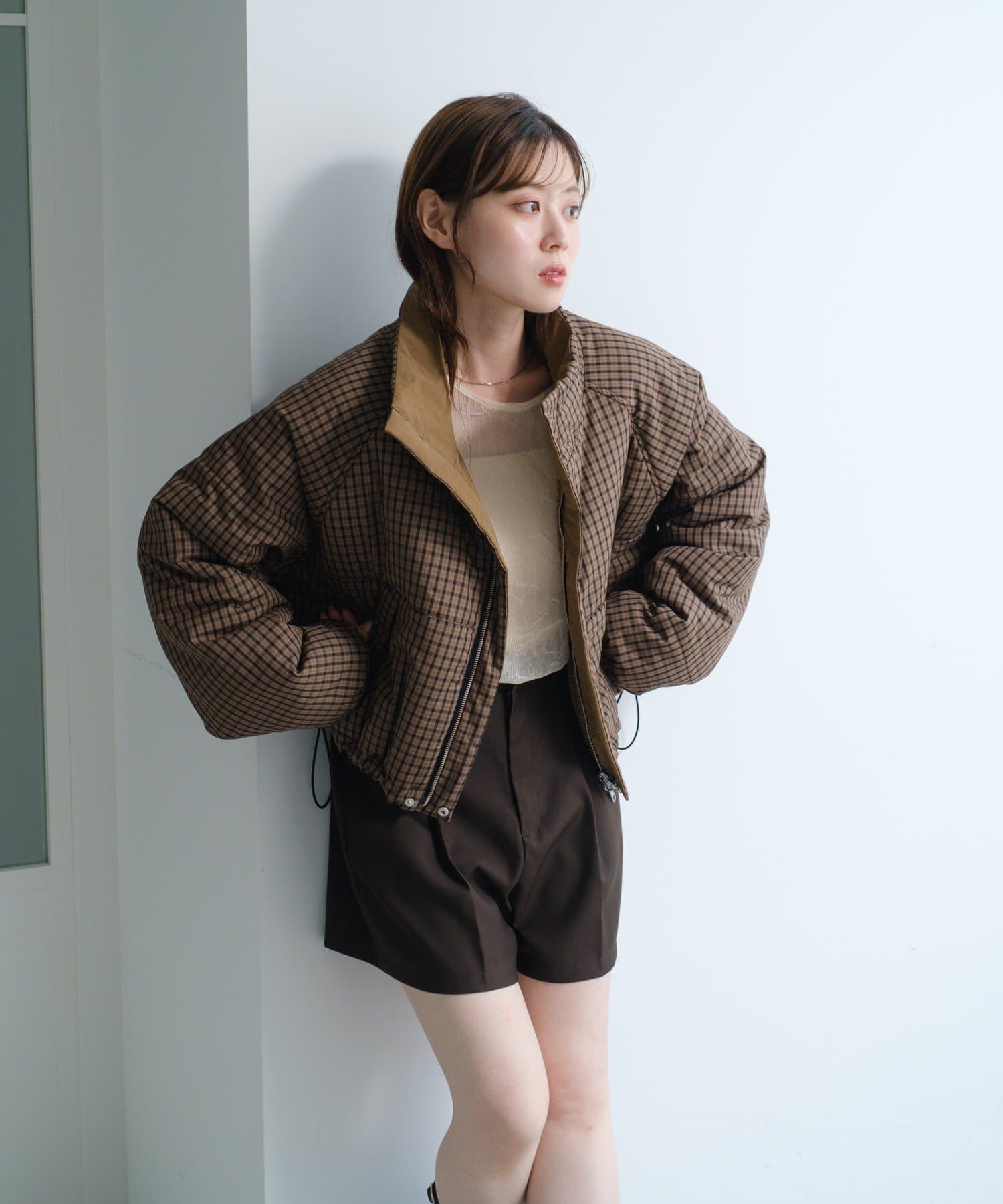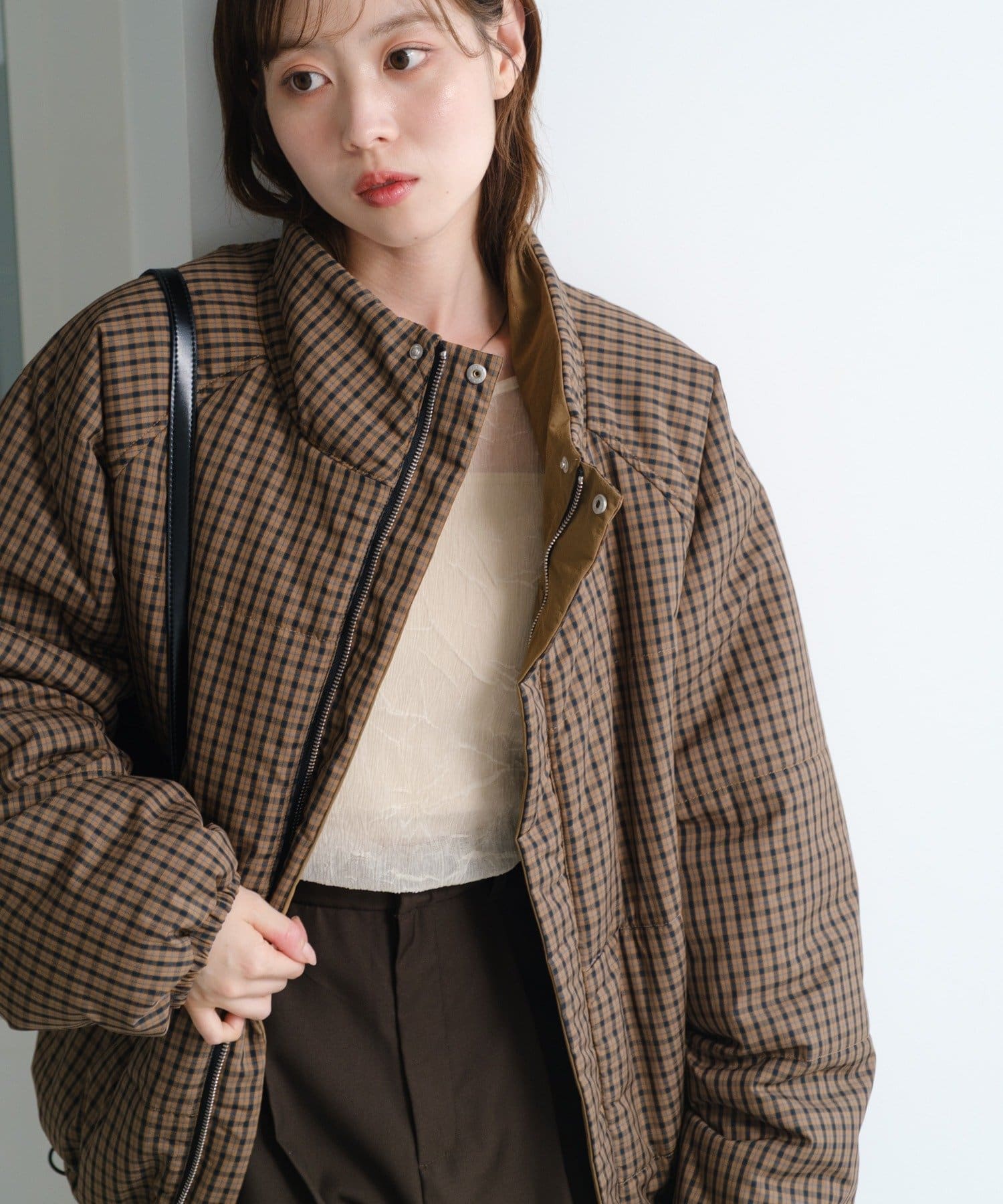 【S.Mサイズ展開】チェック中綿リバーシブルアウター