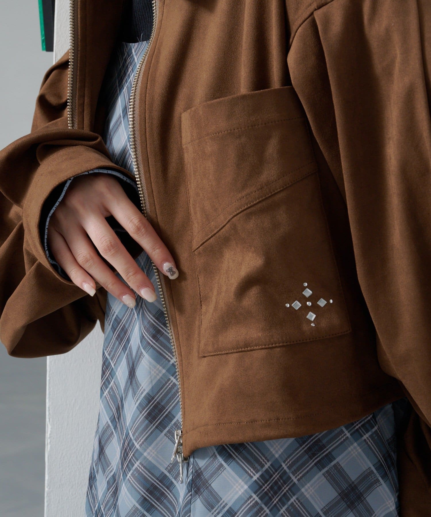 スタッズデザインがワンポイントになるショートジャケット
